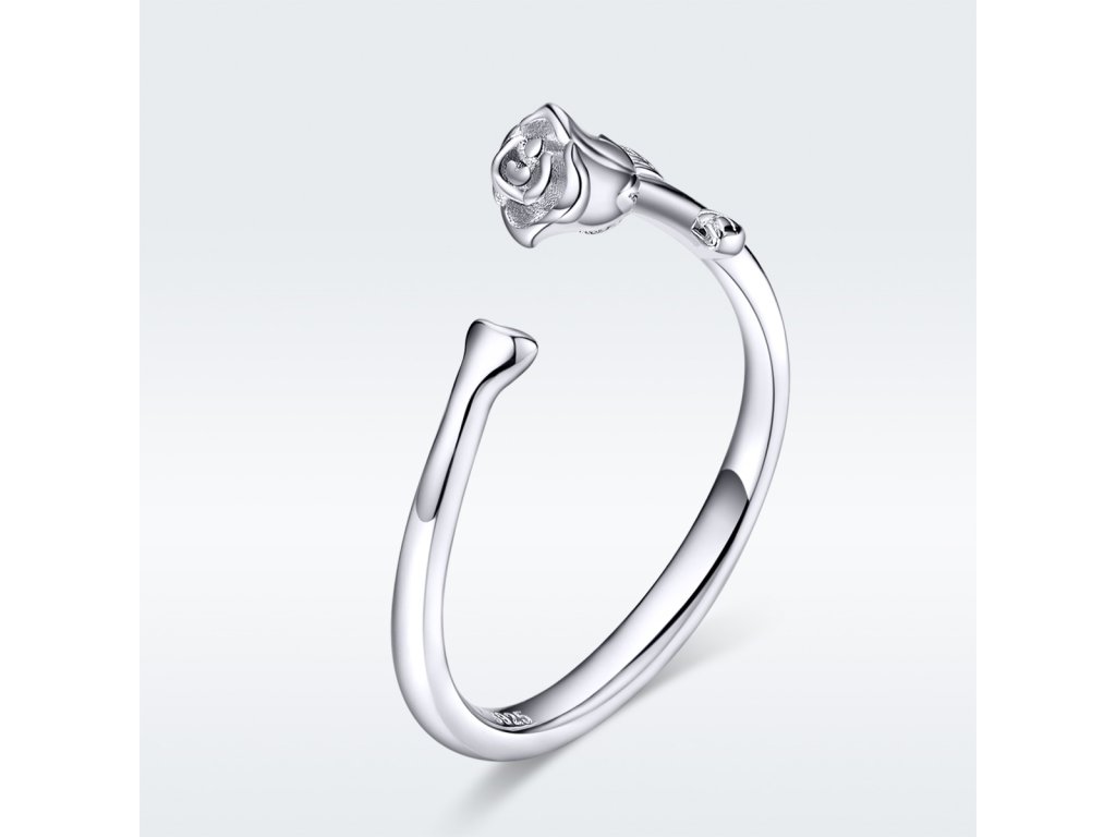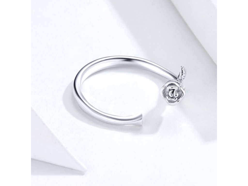 Emporial strieborný nastaviteľný prsteň Rozkvitnutá ruža