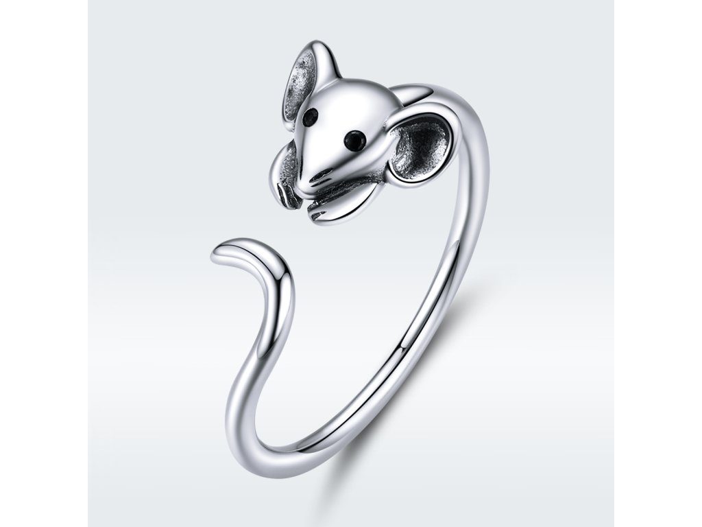 Emporial strieborný nastaviteľný prsteň Roztomilá myška