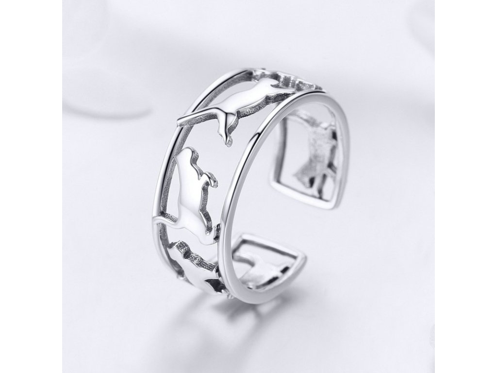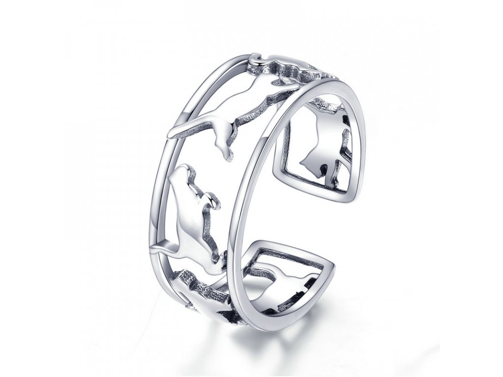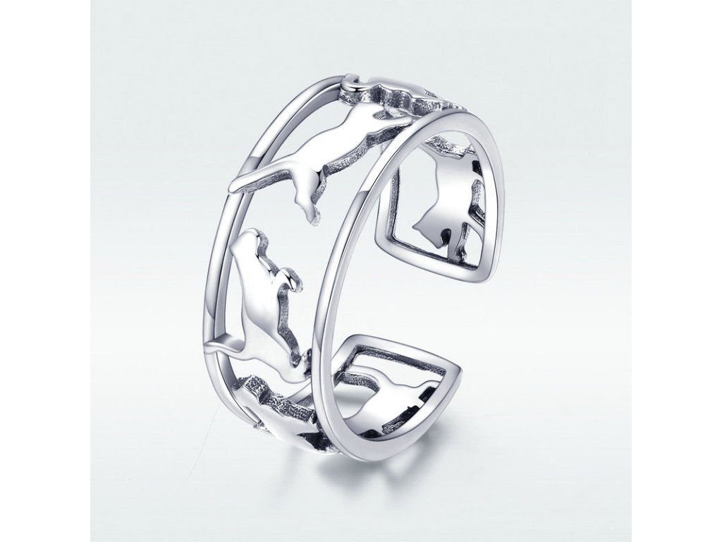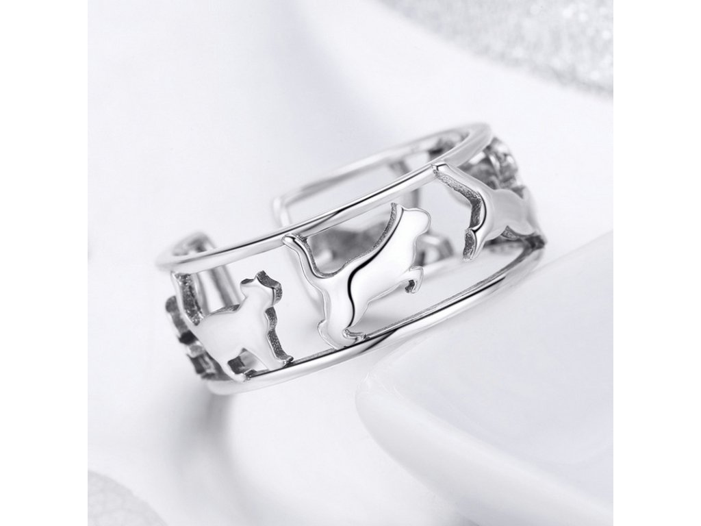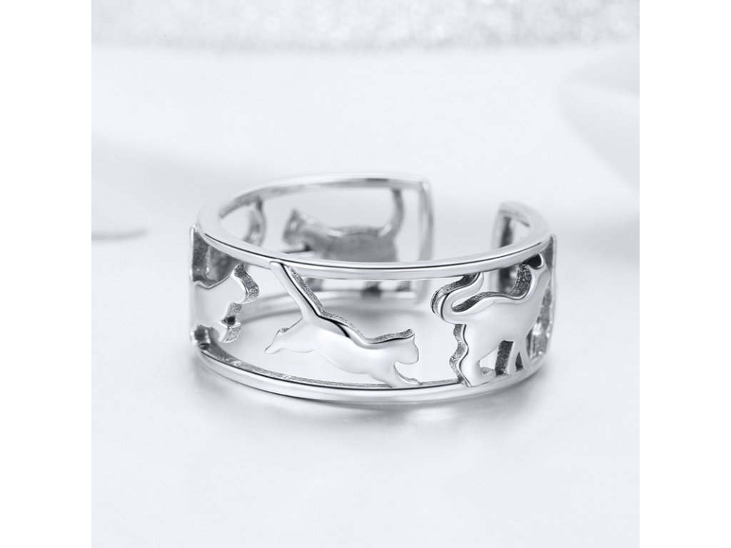 - Jemný strieborný prsteň obohatený po svojom obvode šťastnou mačkou.