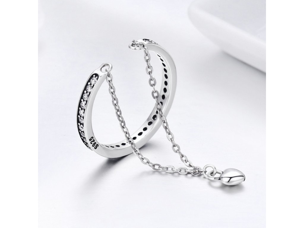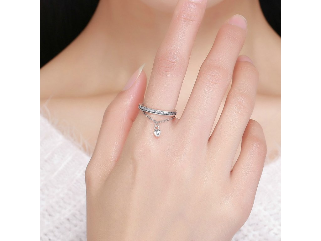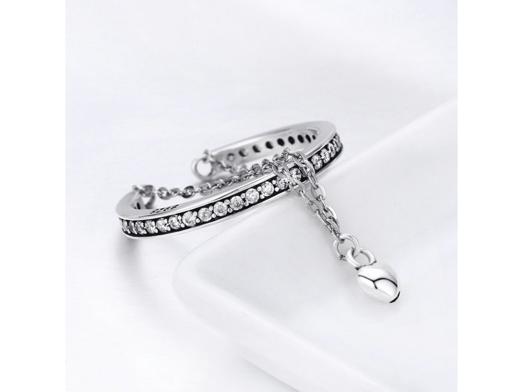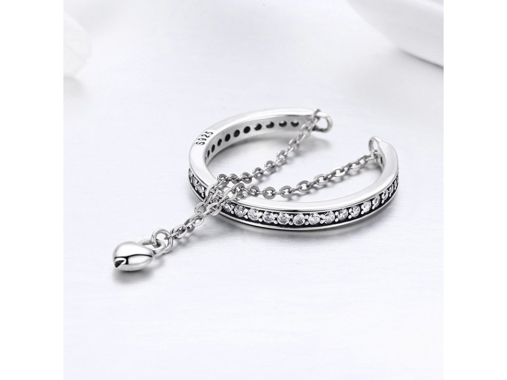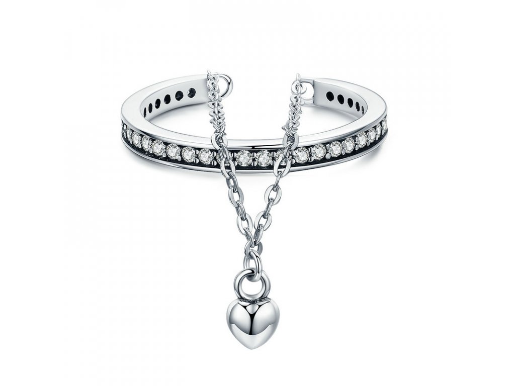 - Luxusný a prepracovaný strieborný prsteň v dizajne zviazaného srdca zdobený zirkónmi.