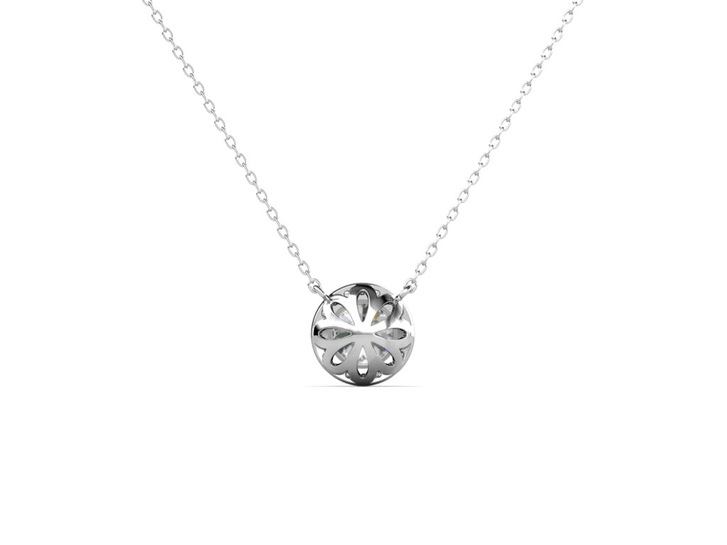 - Strieborný náhrdelník pozlátený 18k bielym zlatom s príveskom, ktorý je zdobený drahokamom moissanitom a zirkónmi. Originálny dizajn náhrdelníka, kvalitné spracovanie a materiál, ručne dohotovené.