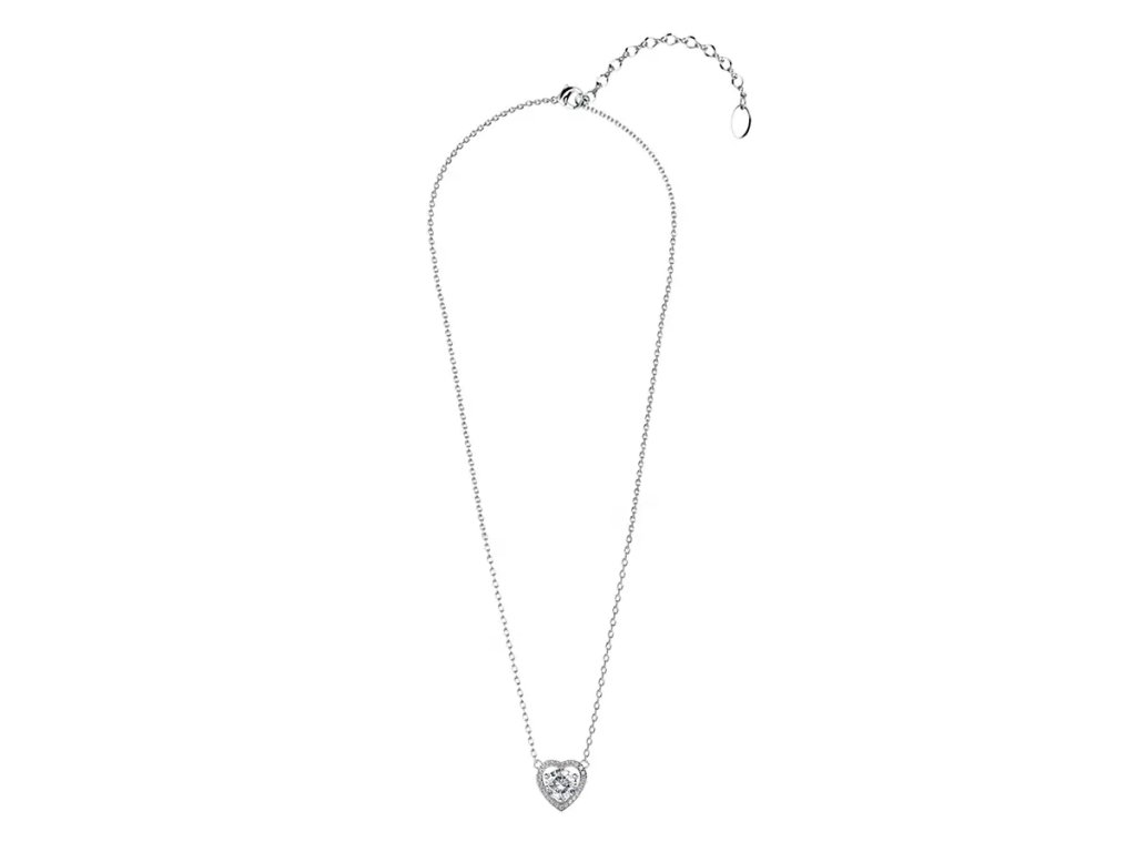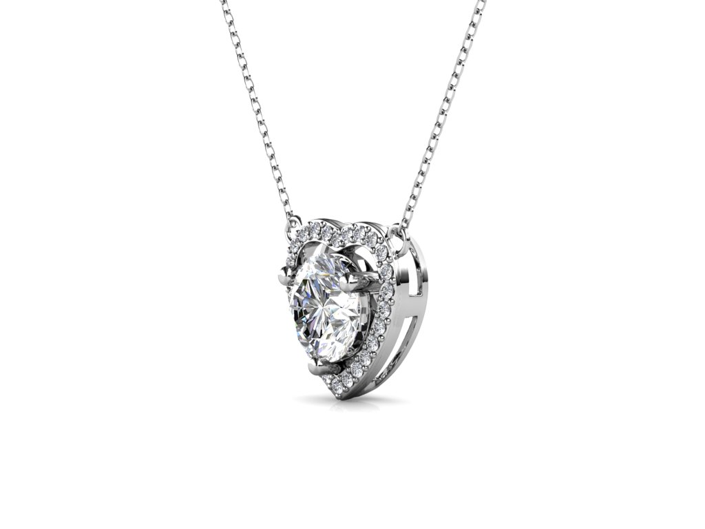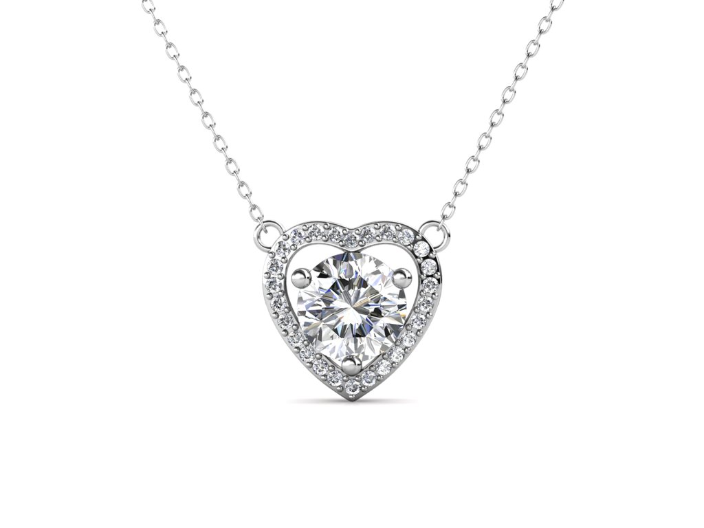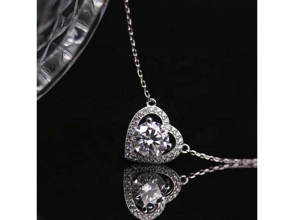 - Strieborný náhrdelník pozlátený 18k bielym zlatom s príveskom v tvare srdca, ktorý je zdobený drahokamom moissanitom. Originálny dizajn náhrdelníka, kvalitné spracovanie a materiál, ručne dohotovené.