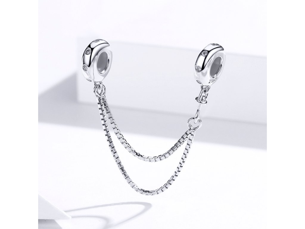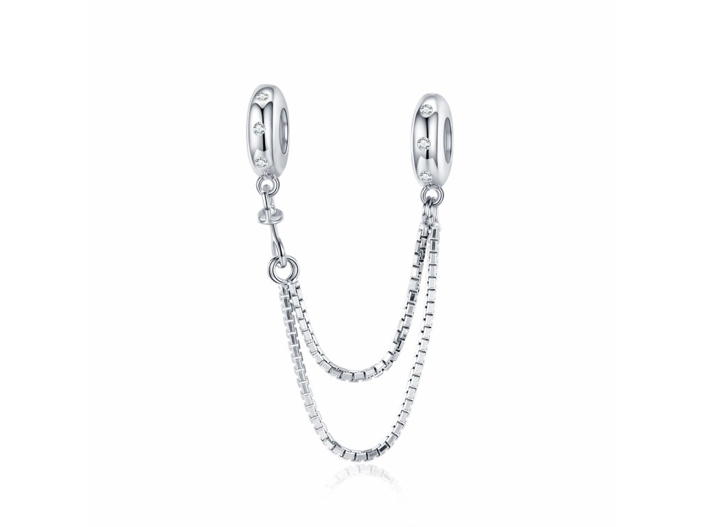 - Strieborný prívesok Bezpečnostné retiazka Elegance na náramok zdobený čírymi trblietavými zirkónmi.