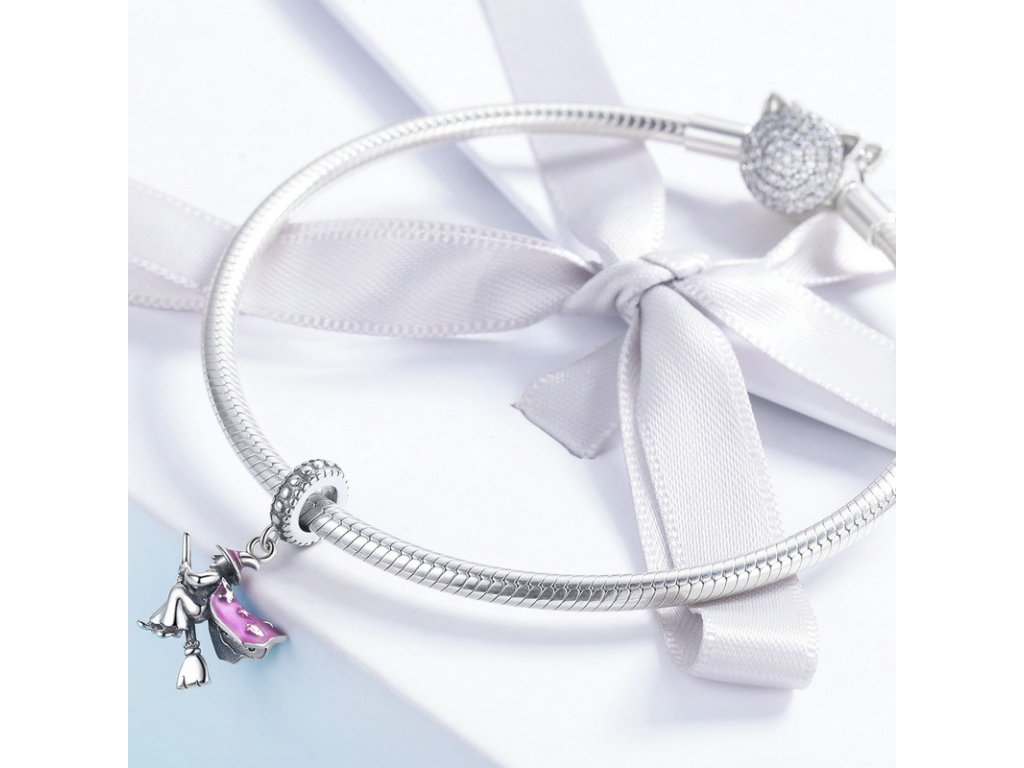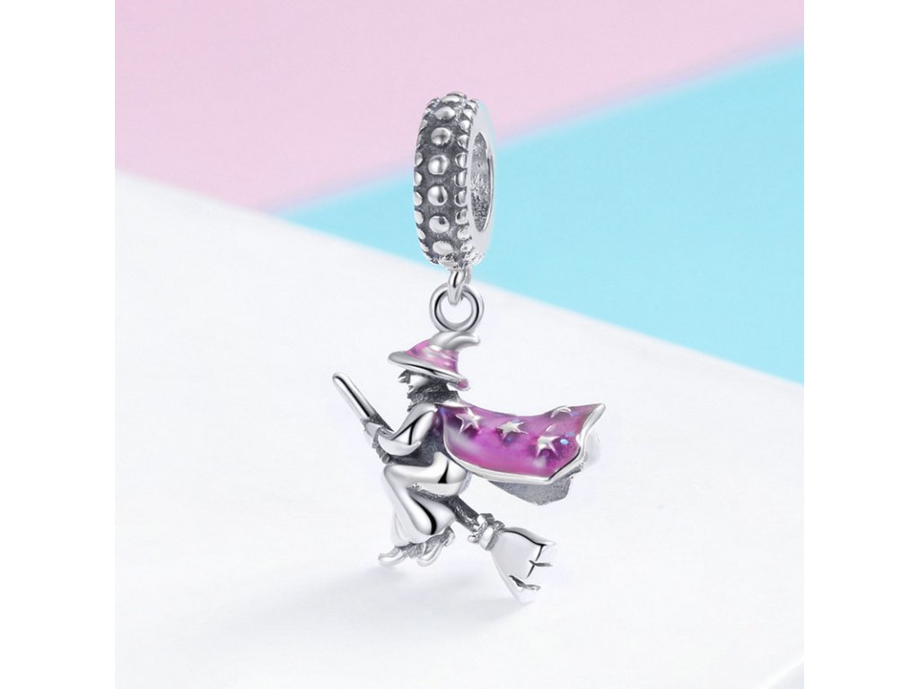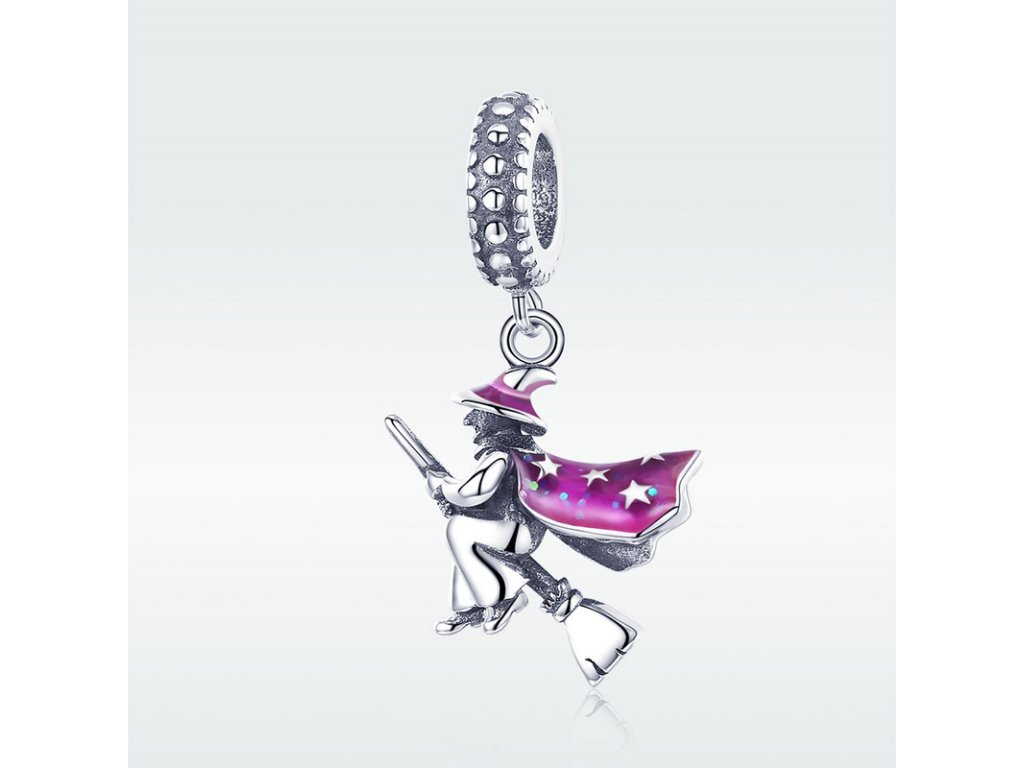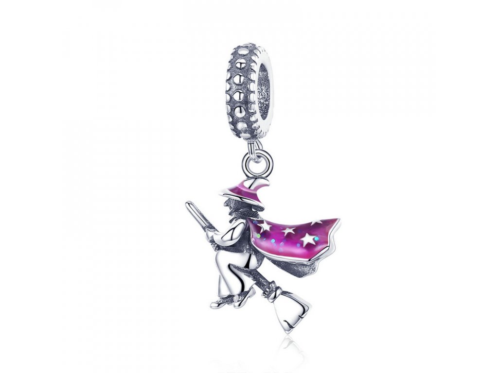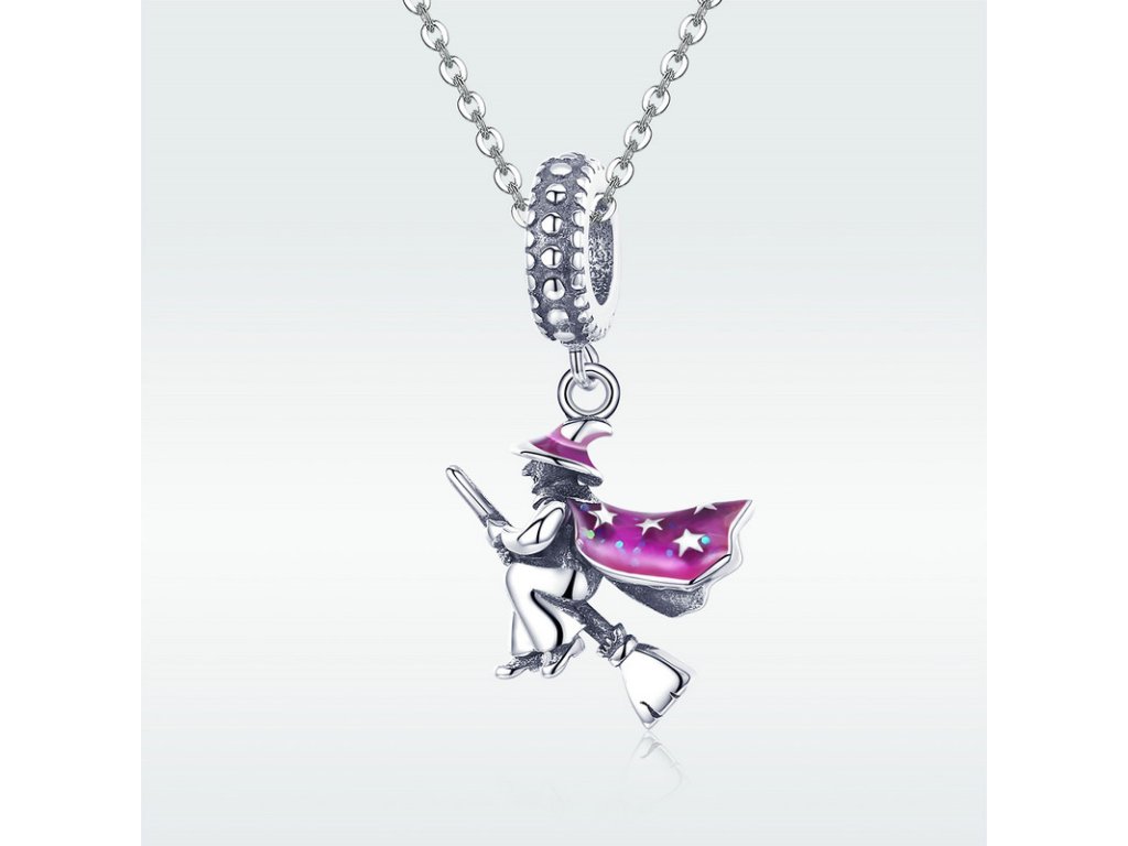 - Luxusný a prepracovaný strieborný prívesok v dizajne bosorky zdobené glazúrou.