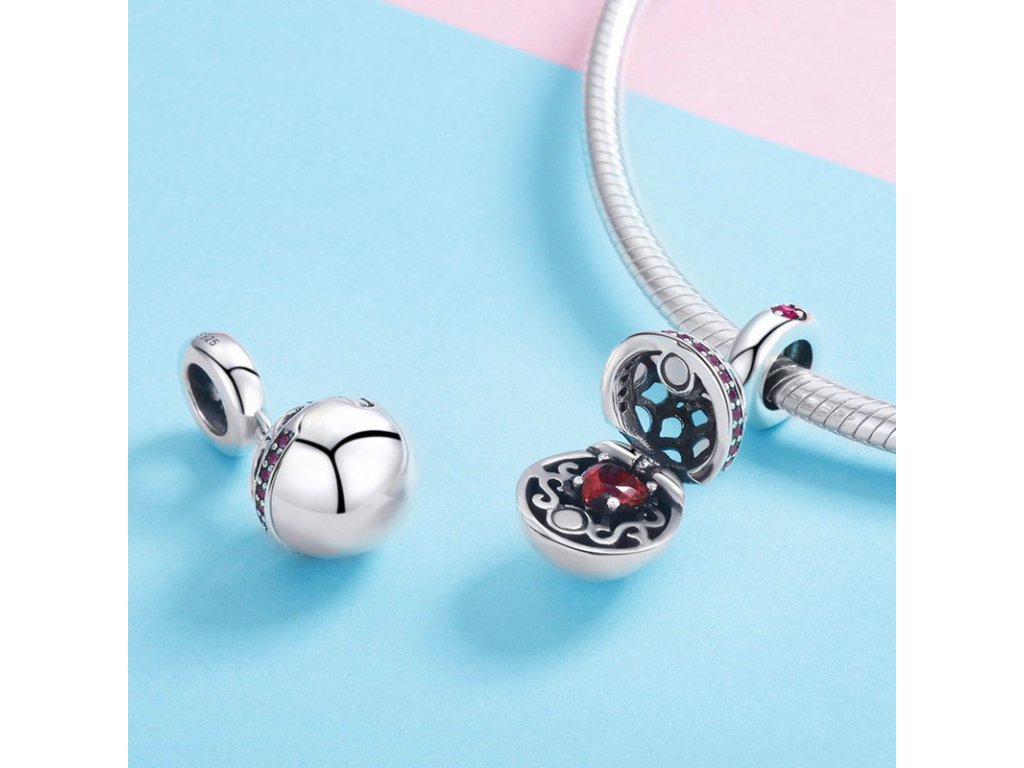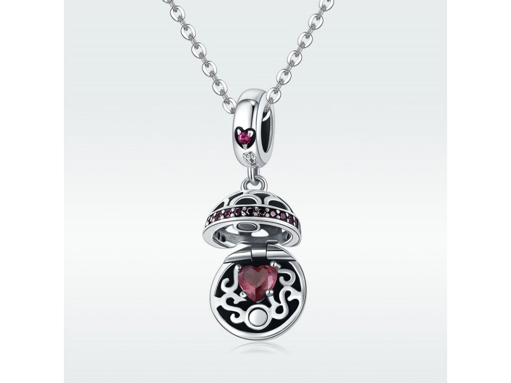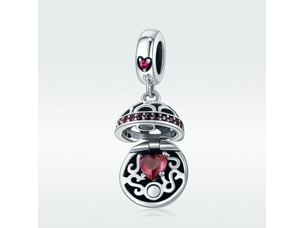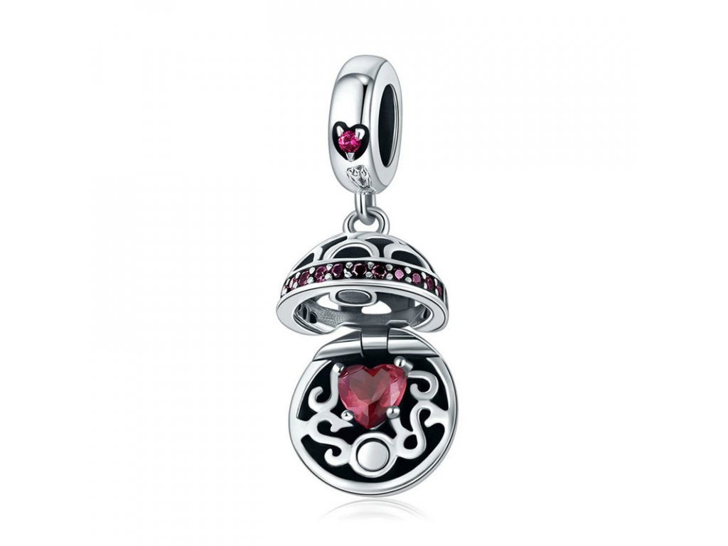 - Luxusný a prepracovaný strieborný visiaci prívesok v dizajne červeného prekvapenie zdobený zirkónmi.