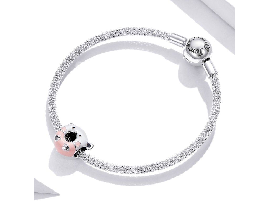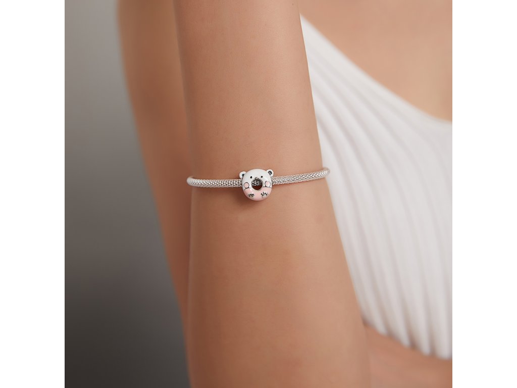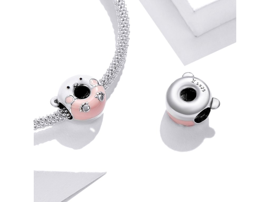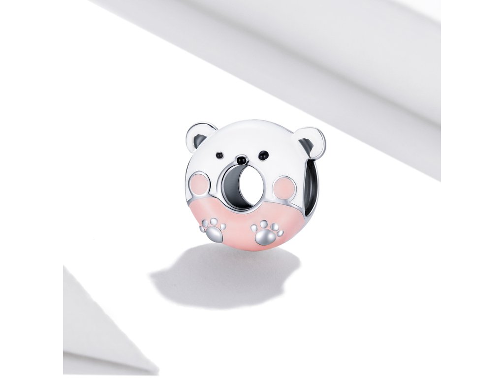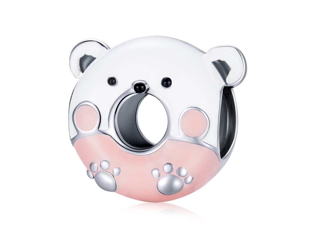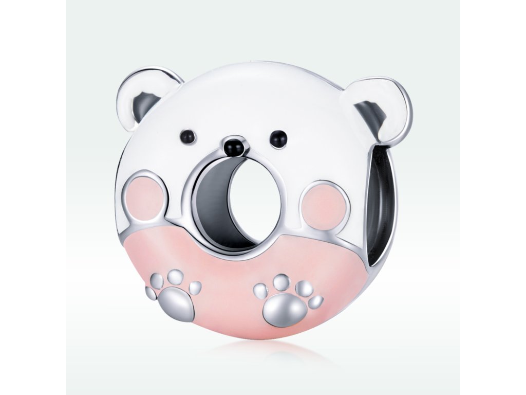 - Strieborný prívesok v dizajne roztomilého medvedieho donutku s uškami zdobeného ručne nanášanou svetlo ružovou glazúrou.Originálny dizajn prívesku, kvalitné spracovanie a materiál, ručne dohotovené.
