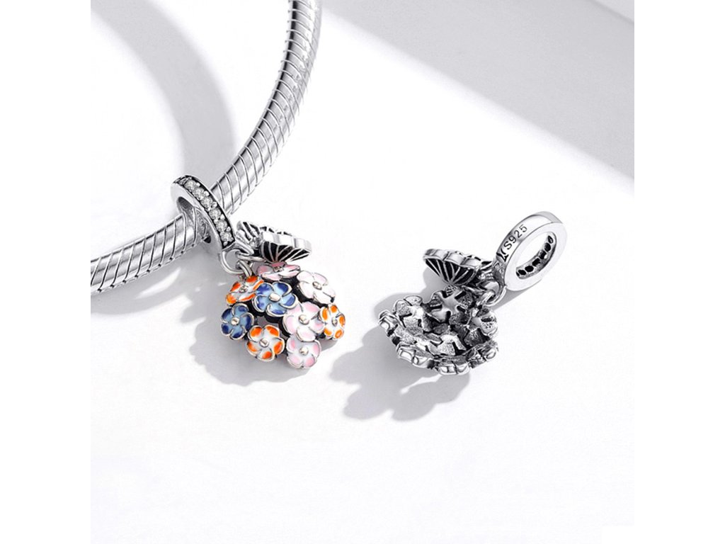 - Dokonalý prívesok Farebná záhrada. Pestré sfarbenie tohto prívesku sa hodí na prvé jarné outfity, ale aj v zime má svoje čaro a urobí parádu. Krásne kvietky vyplnené farebnou glazúrou a trblietavými zirkónmi rozjasnia Váš náramok a určia nový štýl. Začnite začiatok roka pozitívne, farebne, dokonale.