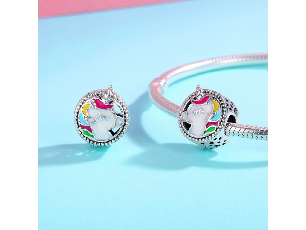 - Luxusné a prepracovaný prívesok v podobe krásneho rozprávkového jednorožca anglicky známeho ako "Unicorn". Je zdobený ručne nanášanou trblietavou bielou a farebnou glazúrou. Prívesok ďalej disponuje ručne vyrezávanými hviezdičky po stranách.
