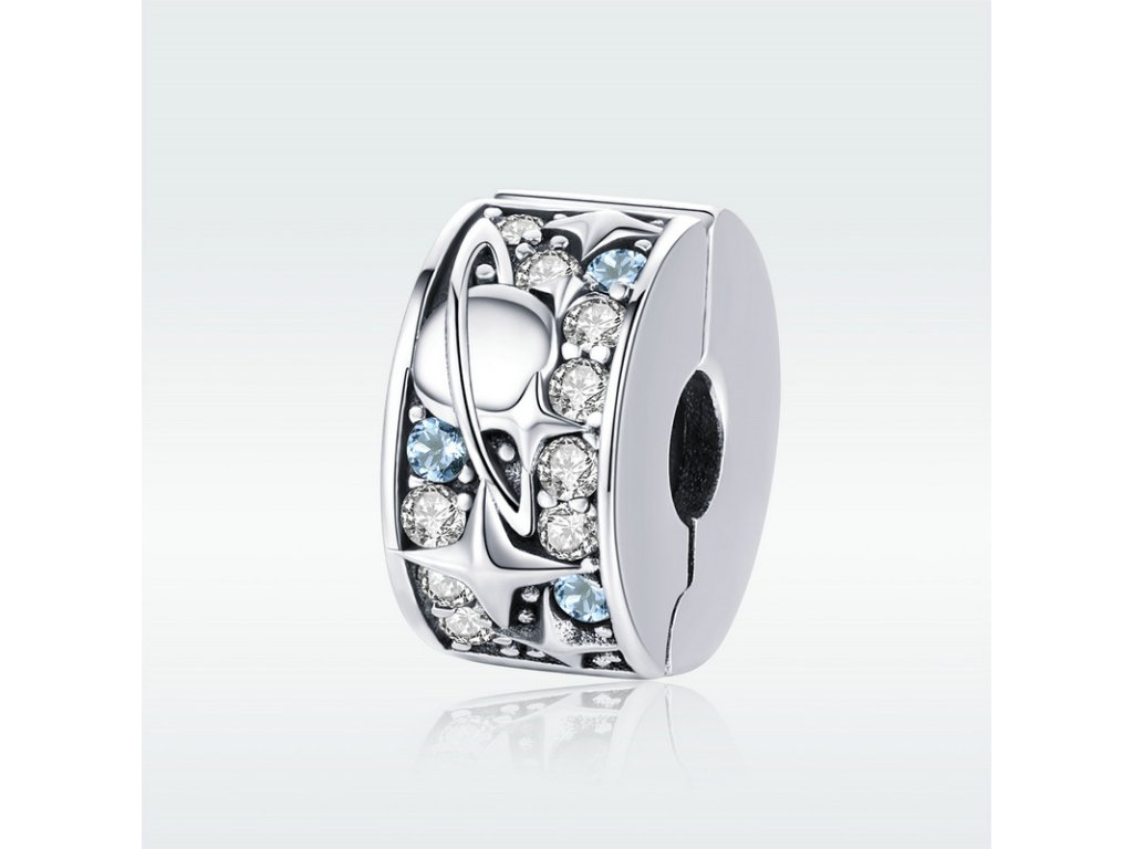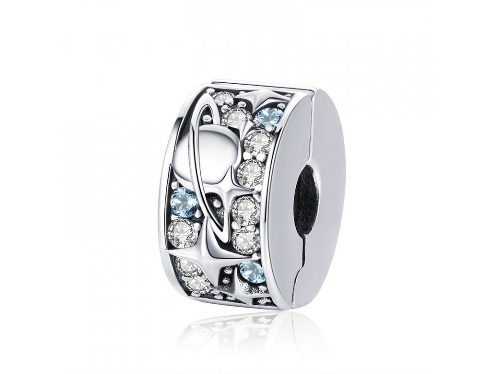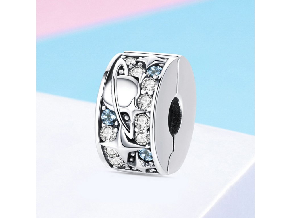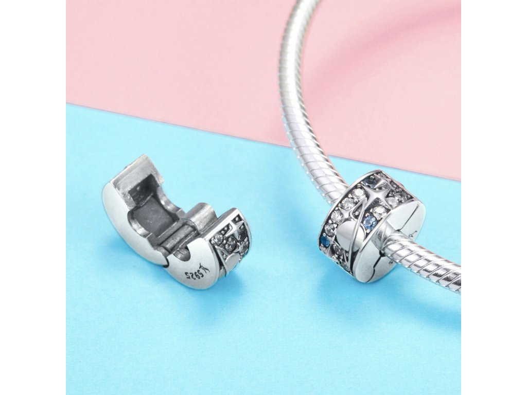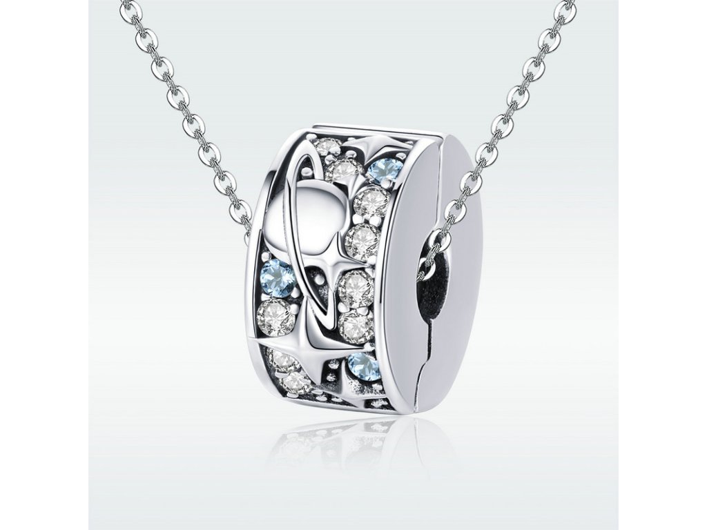 - Luxusný a prepracovaný strieborný klip / prívesok v dizajne hviezdneho neba zdobený modrými a čírymi zirkónmi.