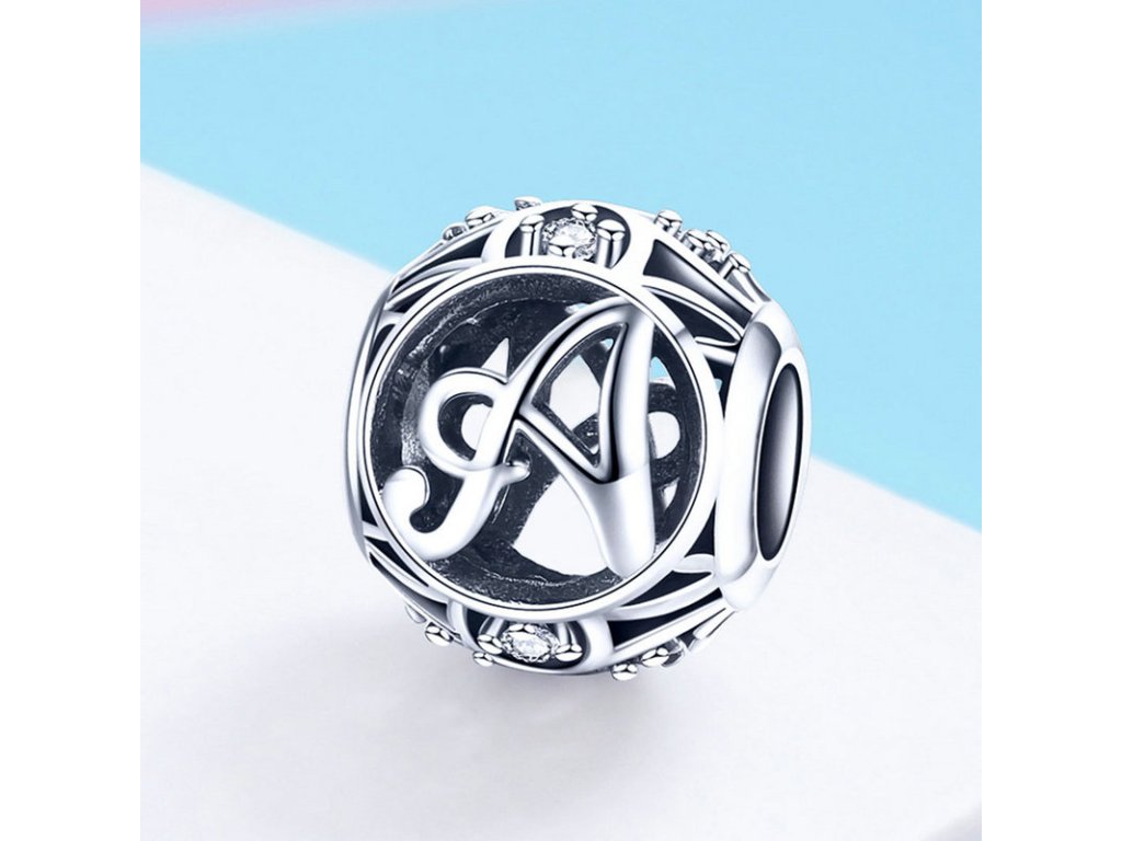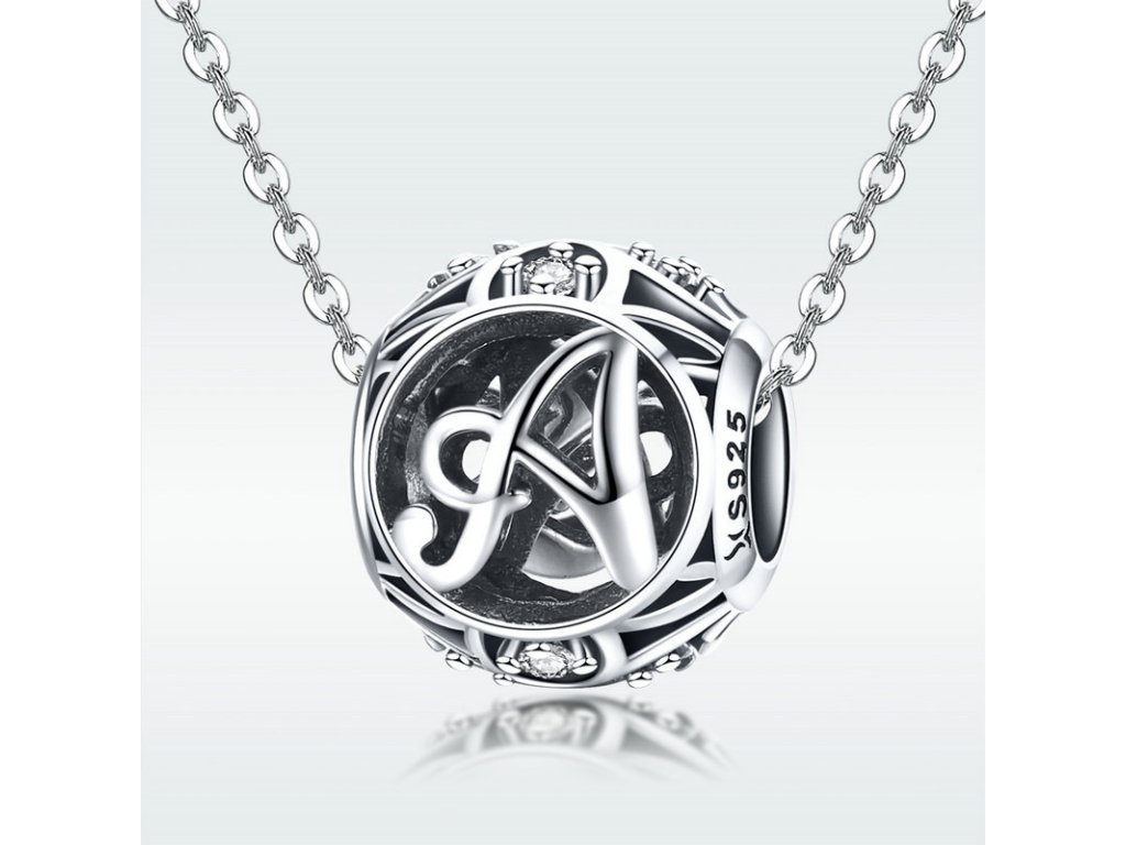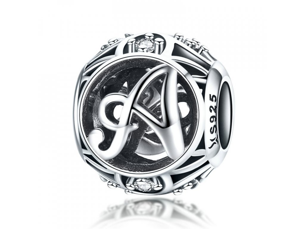 - Luxusný a prepracovaný strieborný prívesok v dizajne písmenká "A" zdobený zirkónmi.