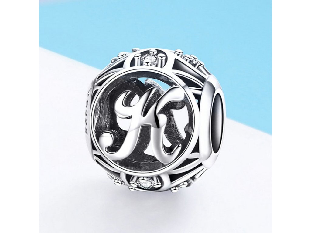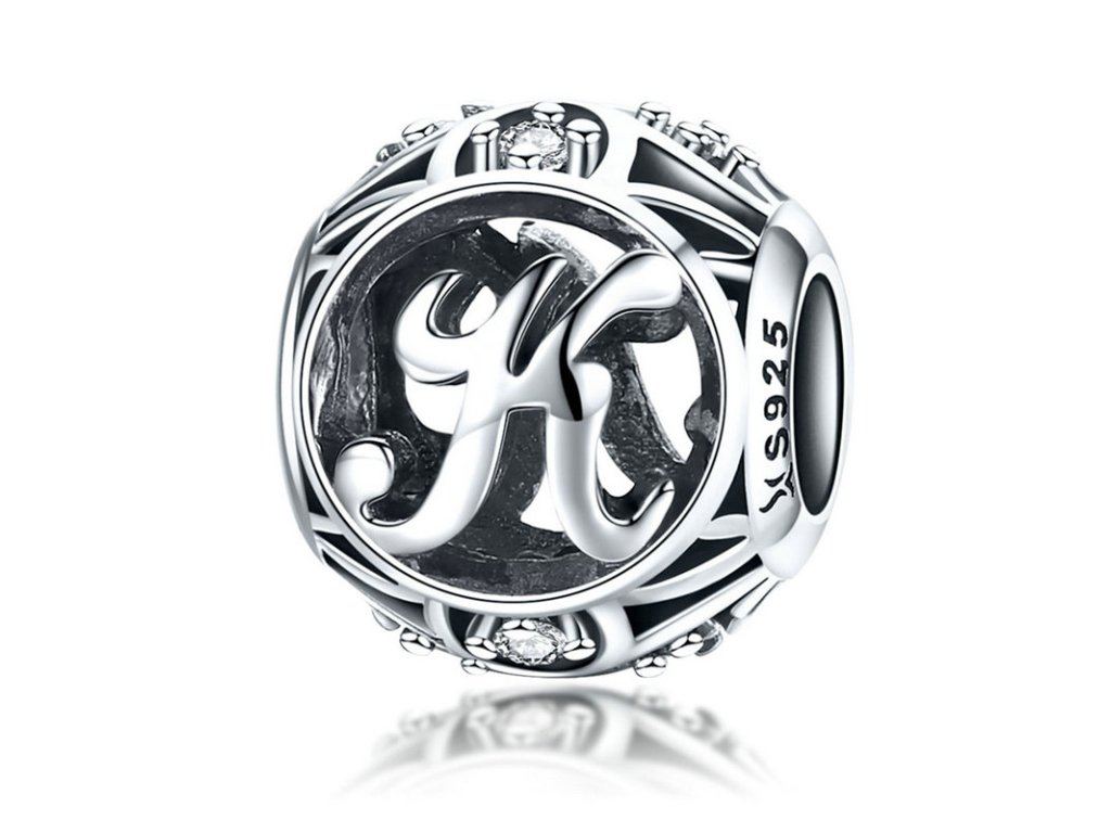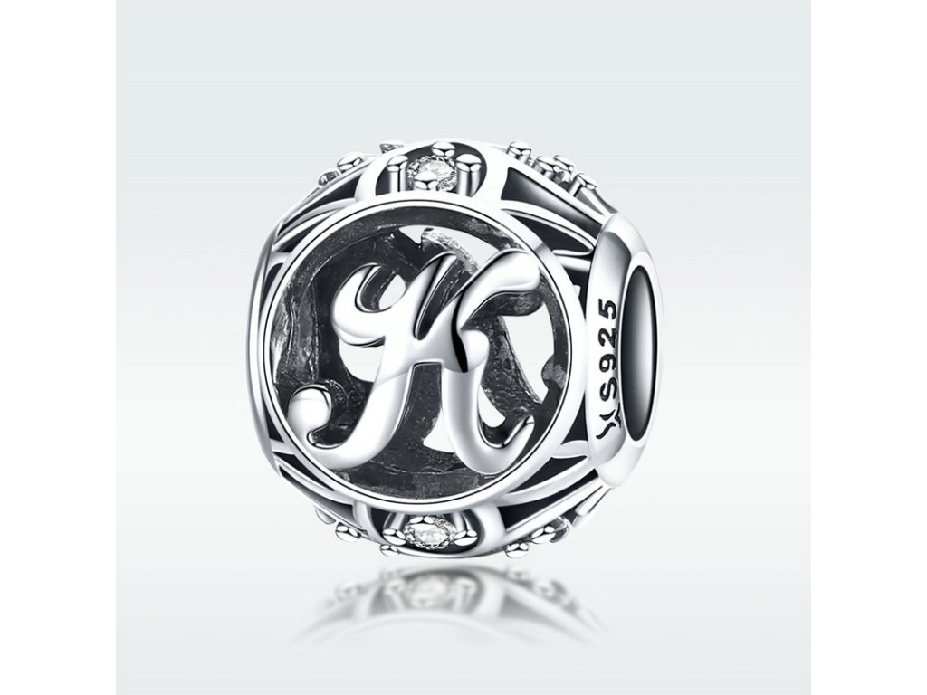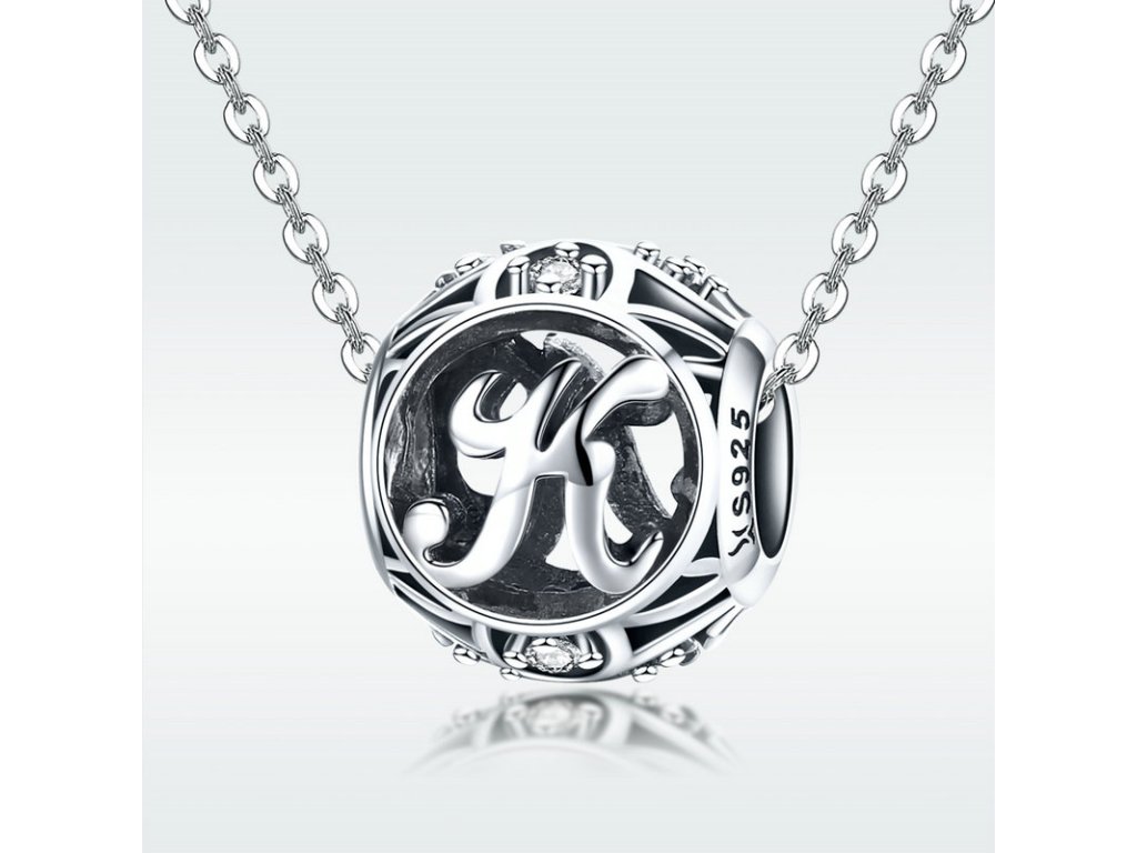 - Luxusný a prepracovaný strieborný prívesok v dizajne písmenká "K" zdobený zirkónmi.