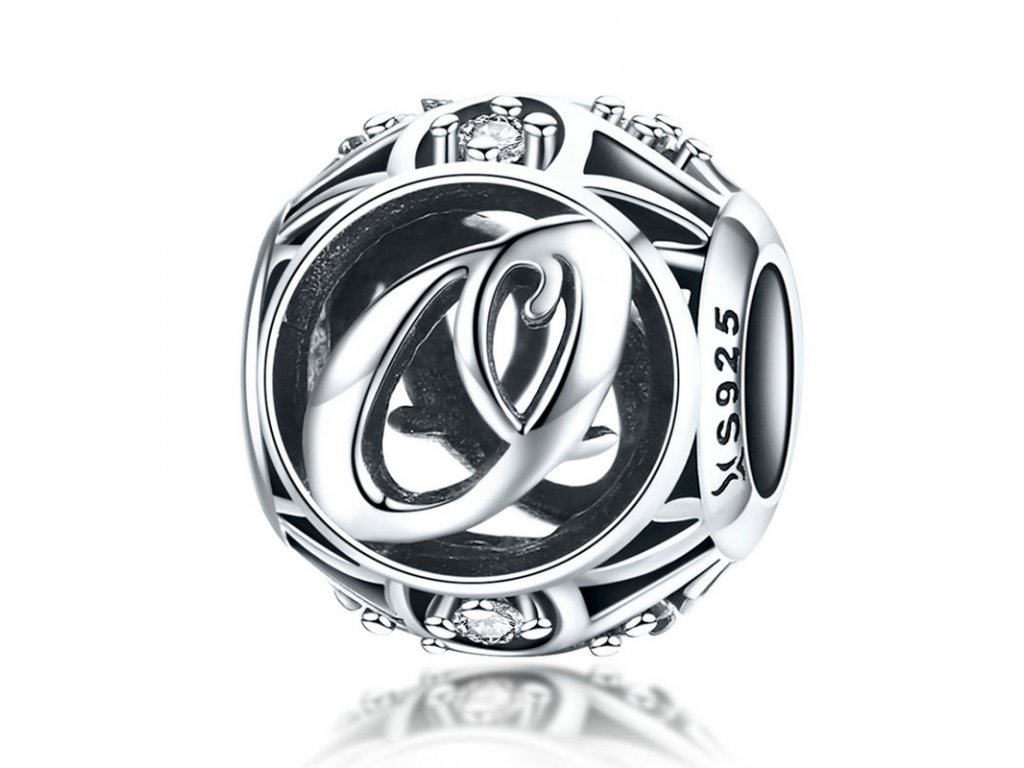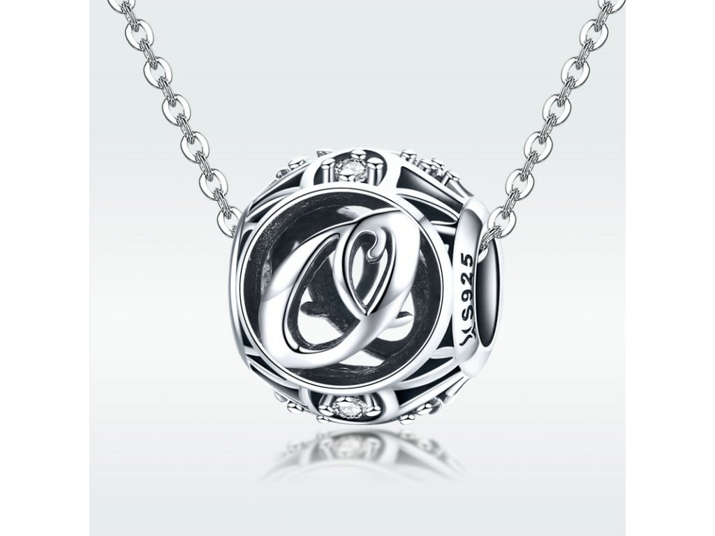- Luxusný a propracovaný strieborný prívesok v dizajne písmenka "O" zdobený zirkónmi.