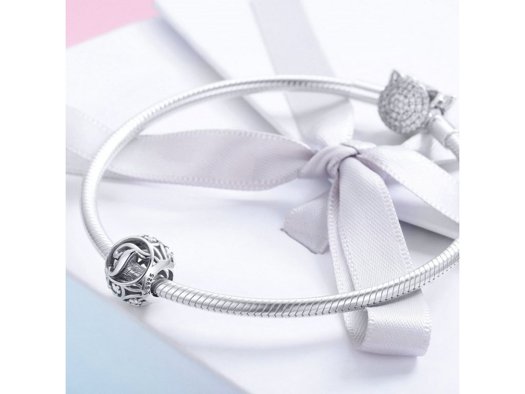 Emporial strieborný prívesok korálka Písmeno T