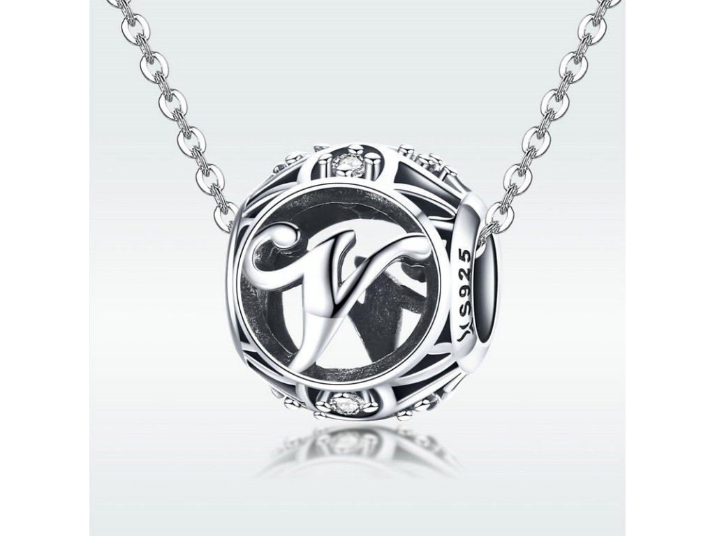 - Luxusný a prepracovaný strieborný prívesok v dizajne písmenká "R" zdobený zirkónmi.