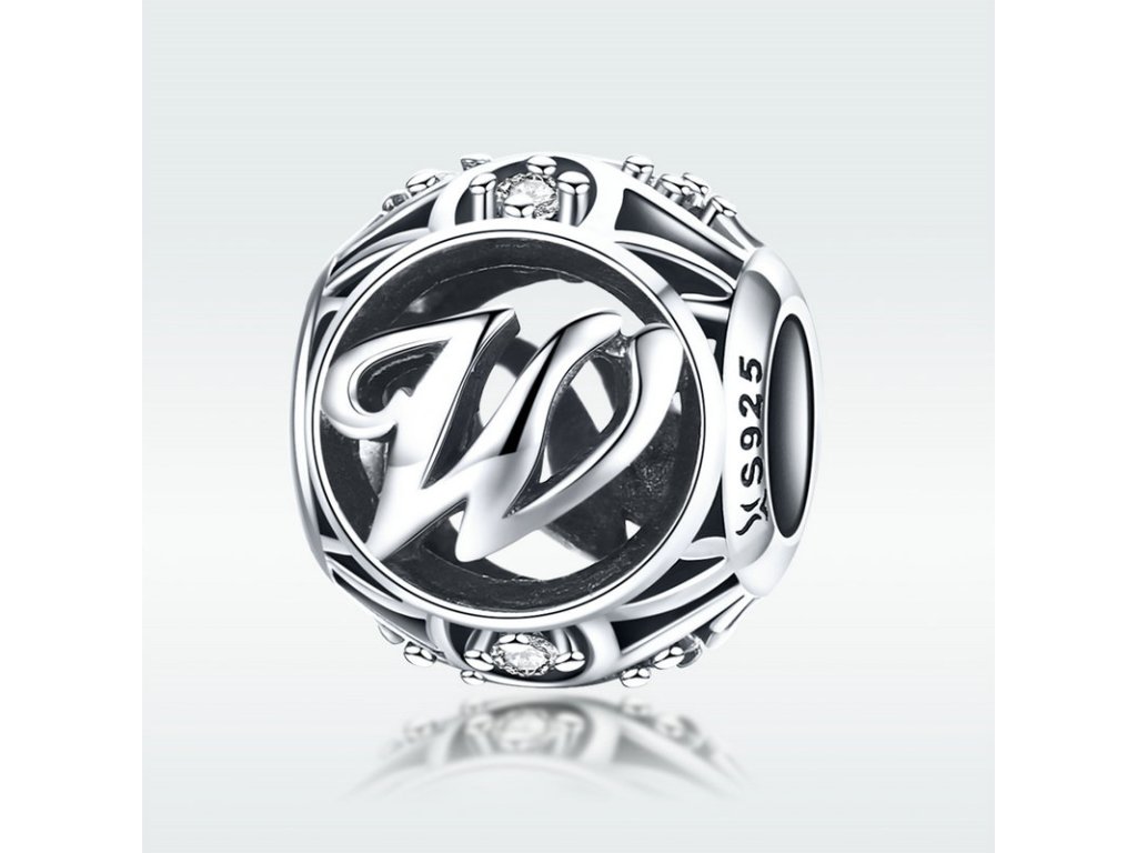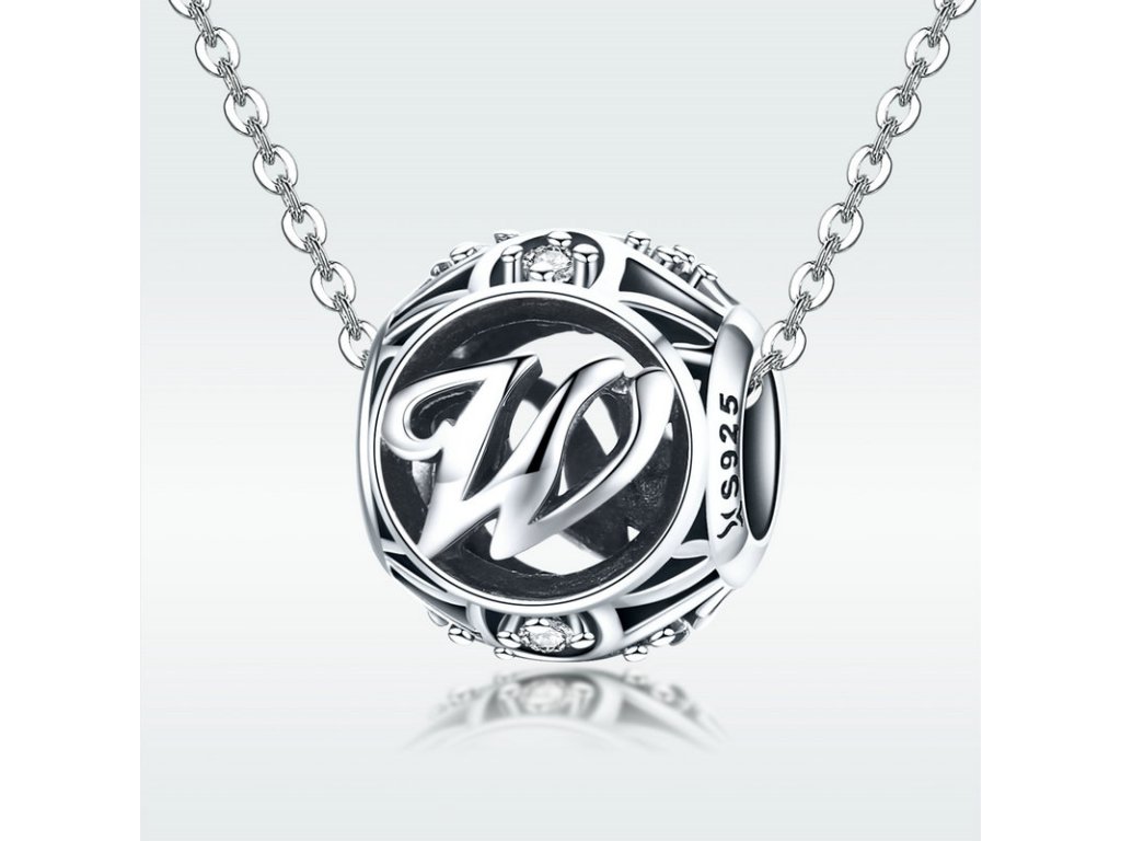 - Luxusný a propracovaný strieborný prívesok v dizajne písmenka "W" zdobený zirkónmi.