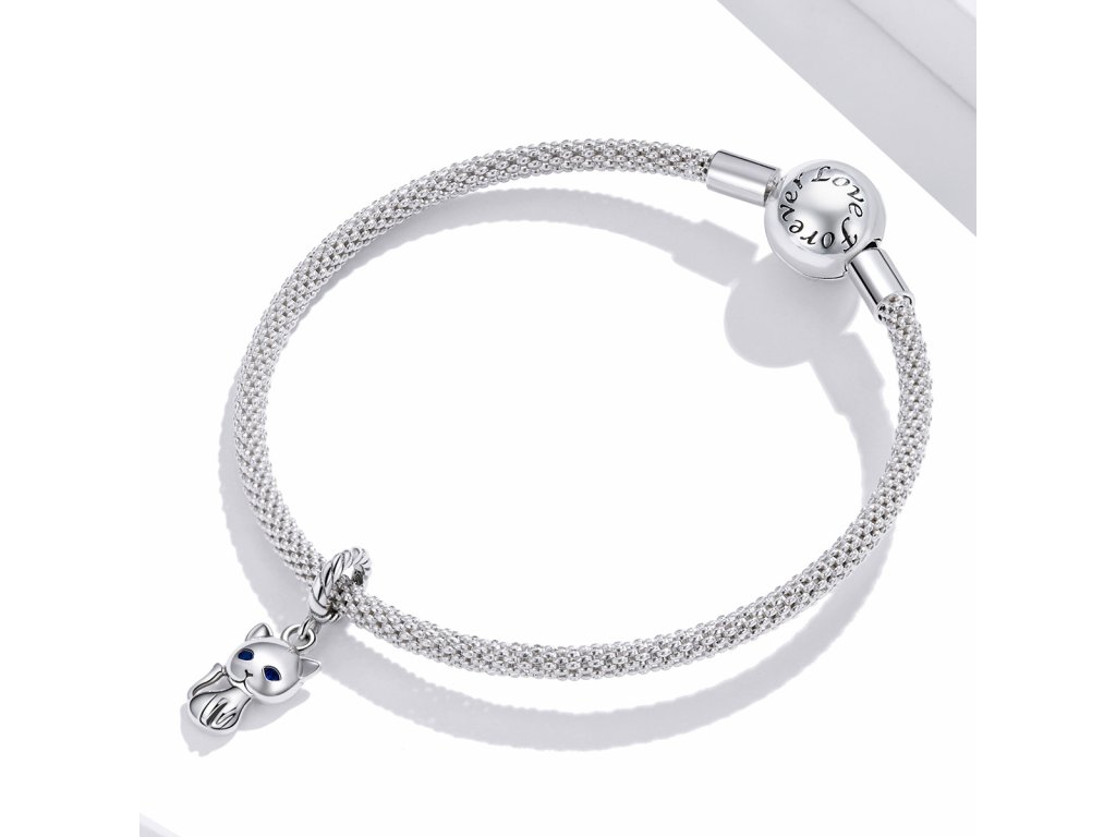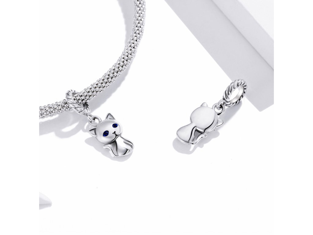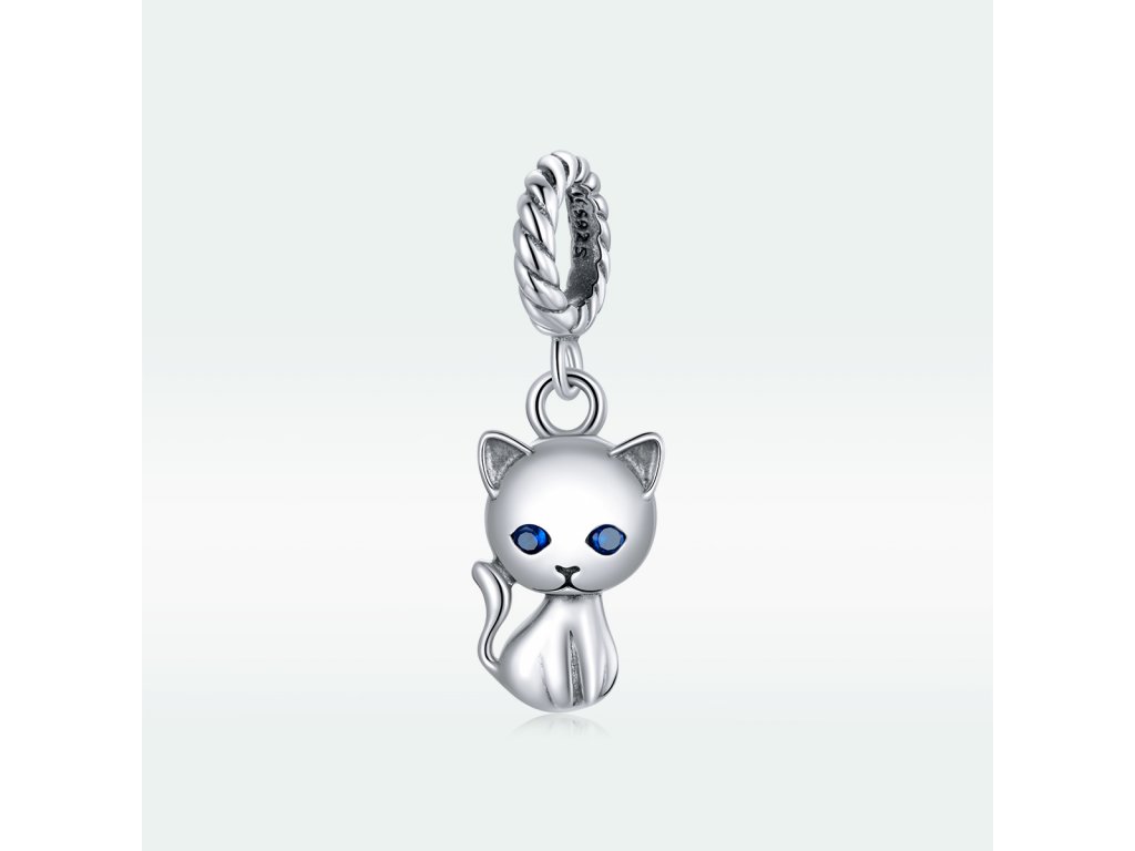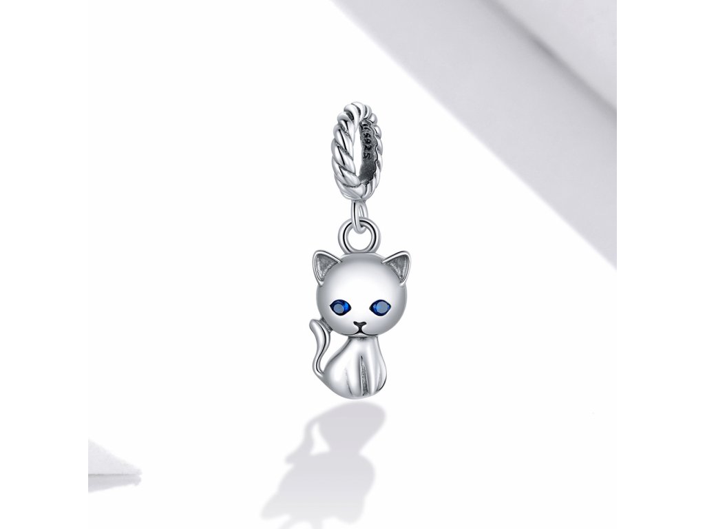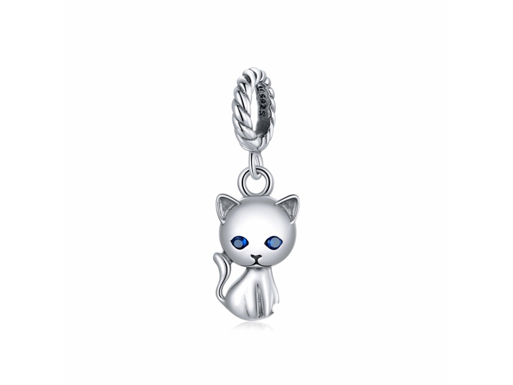 - Strieborný visiaci prívesok v dizajne krásnej mačky zdobené trblietavými kameňmi v podobe tmavomodrých zirkónov. Originálny design prívesku, kvalitné spracovanie a materiál, ručne dohotovené.