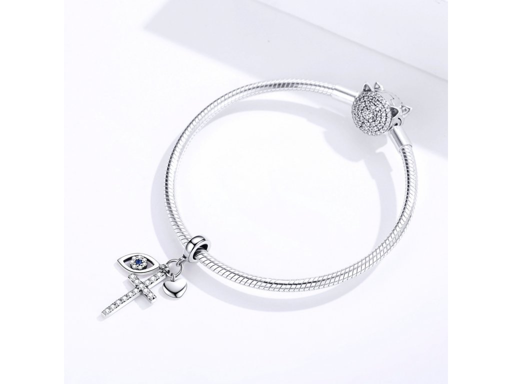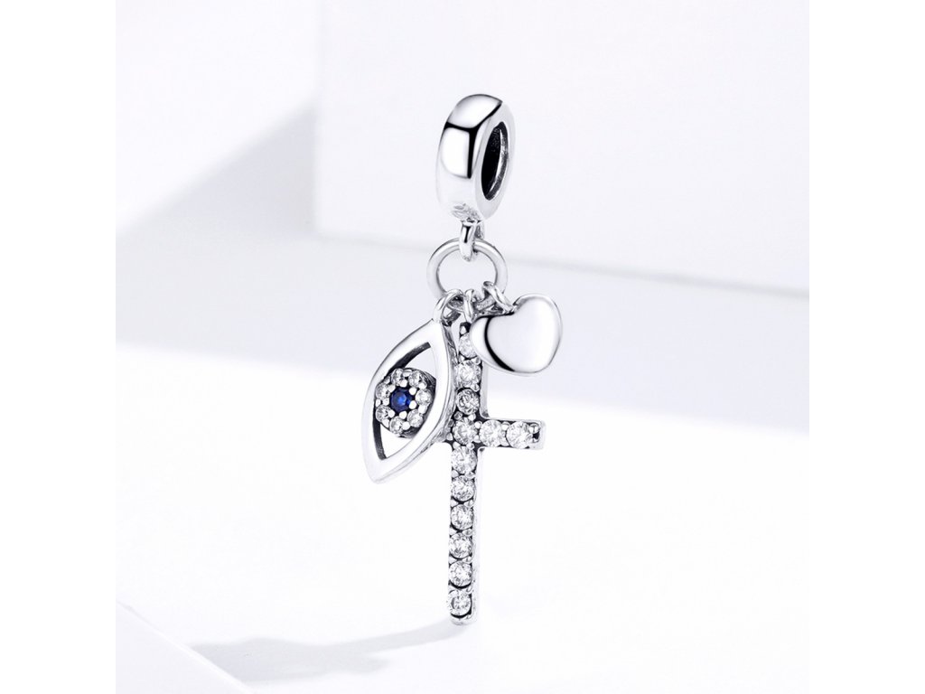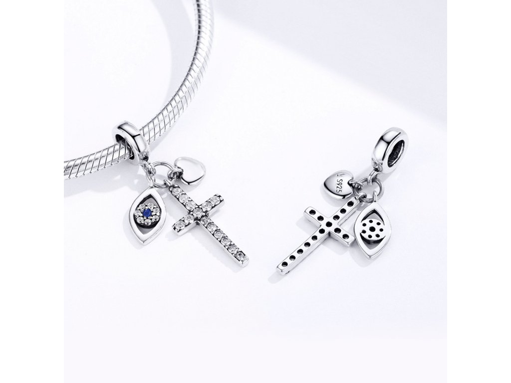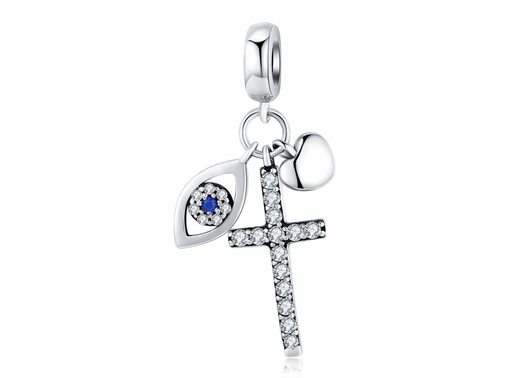 - Strieborný visiaci prívesok v dizajne Kríž symbol ochrany zdobený čírymi trblietavými zirkónmi.