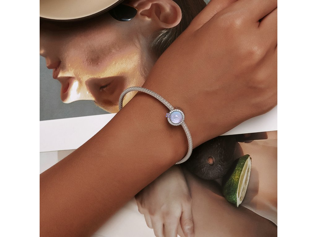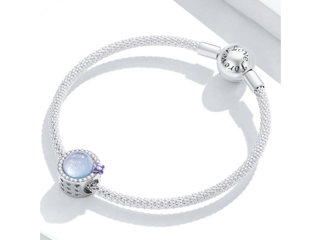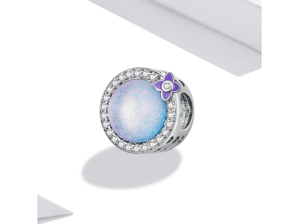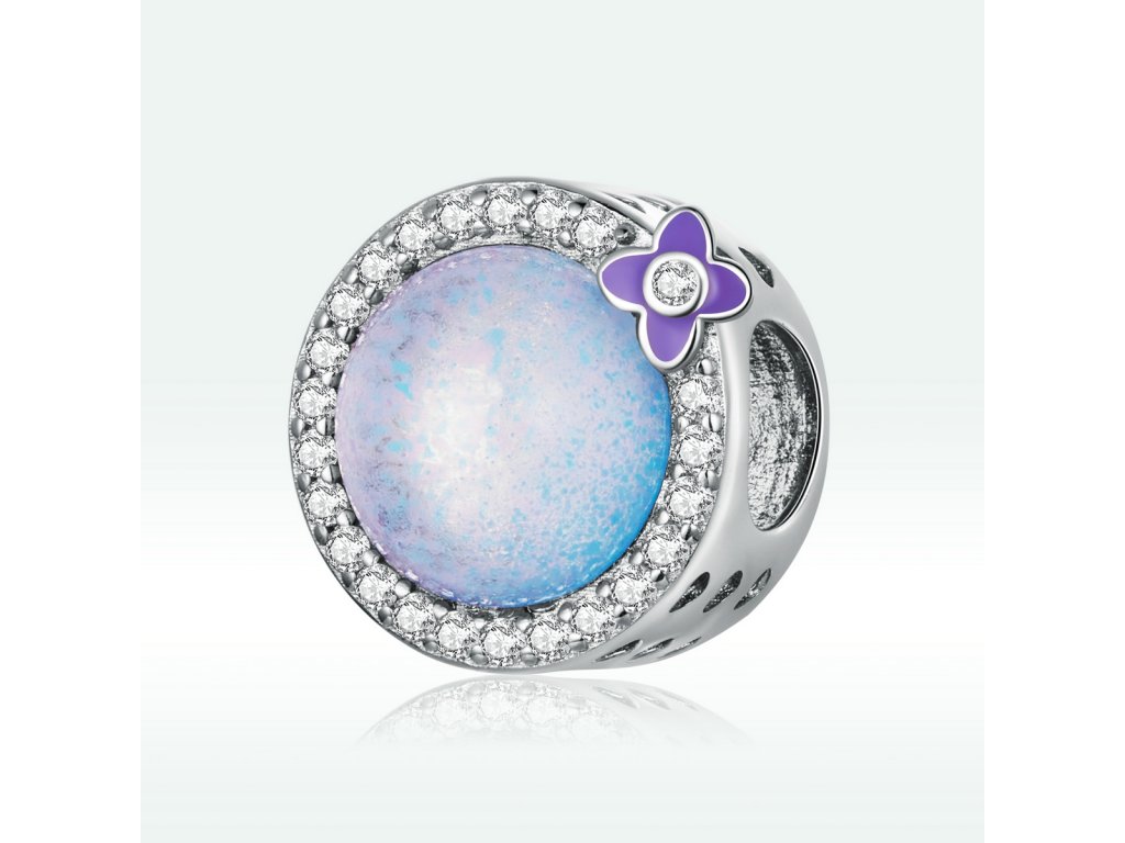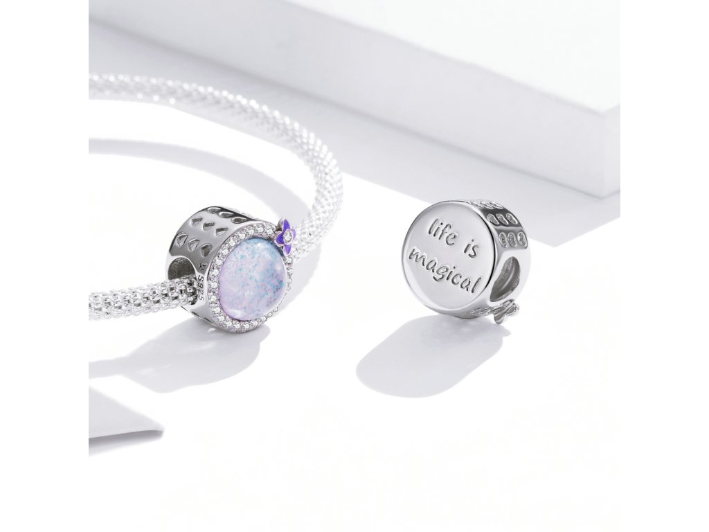 - Strieborný prívesok v dizajne Kúzelnej záhrady snov zdobený kvetom s ručne nanášanou fialovou glazúrou, čírymi trblietavými zirkónmi po celom svojom obvode a ručne vyrezávanými srdiečkami po stranách. Hlavný atribút prívesku je kúzelný fialovo-ružový stred tvorený zo živice, ktorá na slniečku hádže krásne odlesky. Druhú stranu prívesku tvorí anglický nápis "Life is magical" v preklade "Život je kúzelný". Originálny design prívesku, kvalitné spracovanie a materiál, ručne dohotovené.