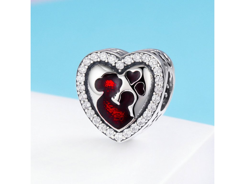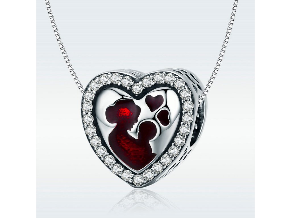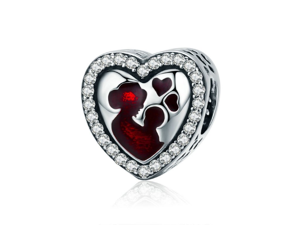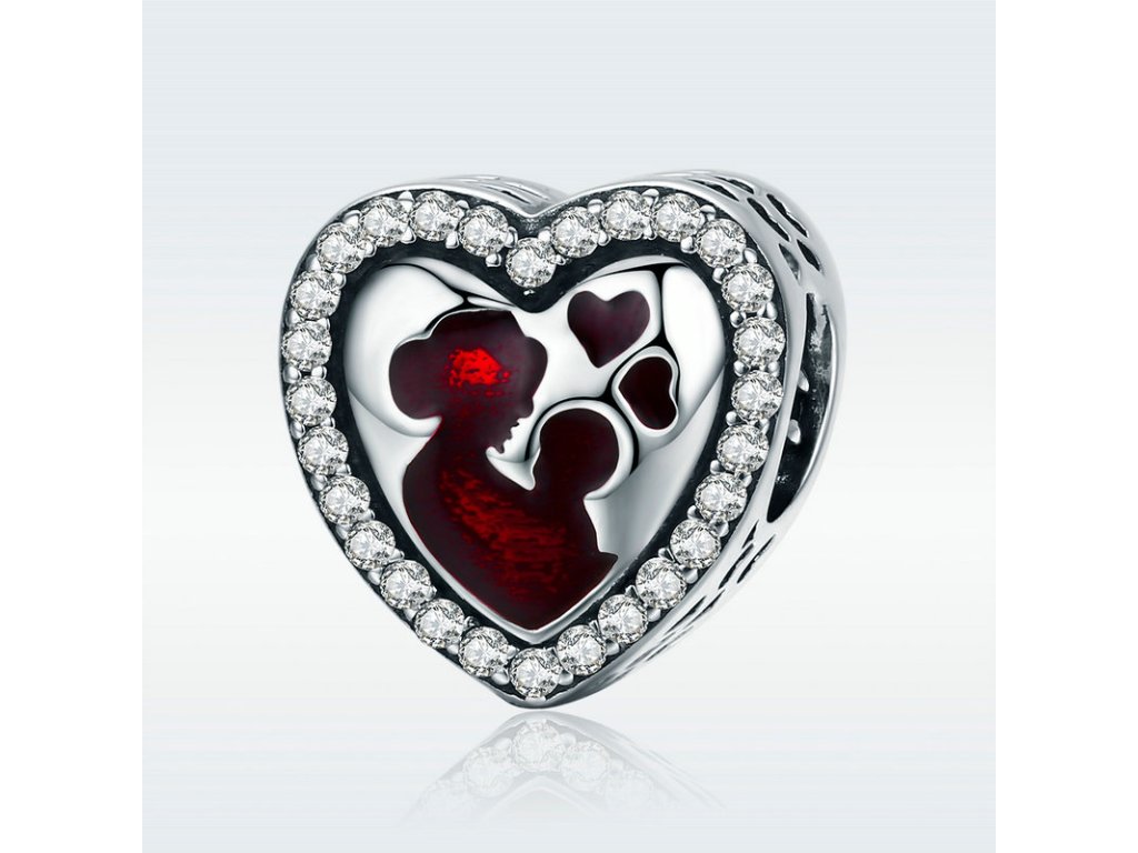 - Nežný korálik vyjadrujúce materskú lásku, ktorý nesmie chýbať na náramku / retiazke žiadne mamičke. Srdce je zvýraznené trblietavými zirkónmi a siluetou mamičky a dieťaťa.