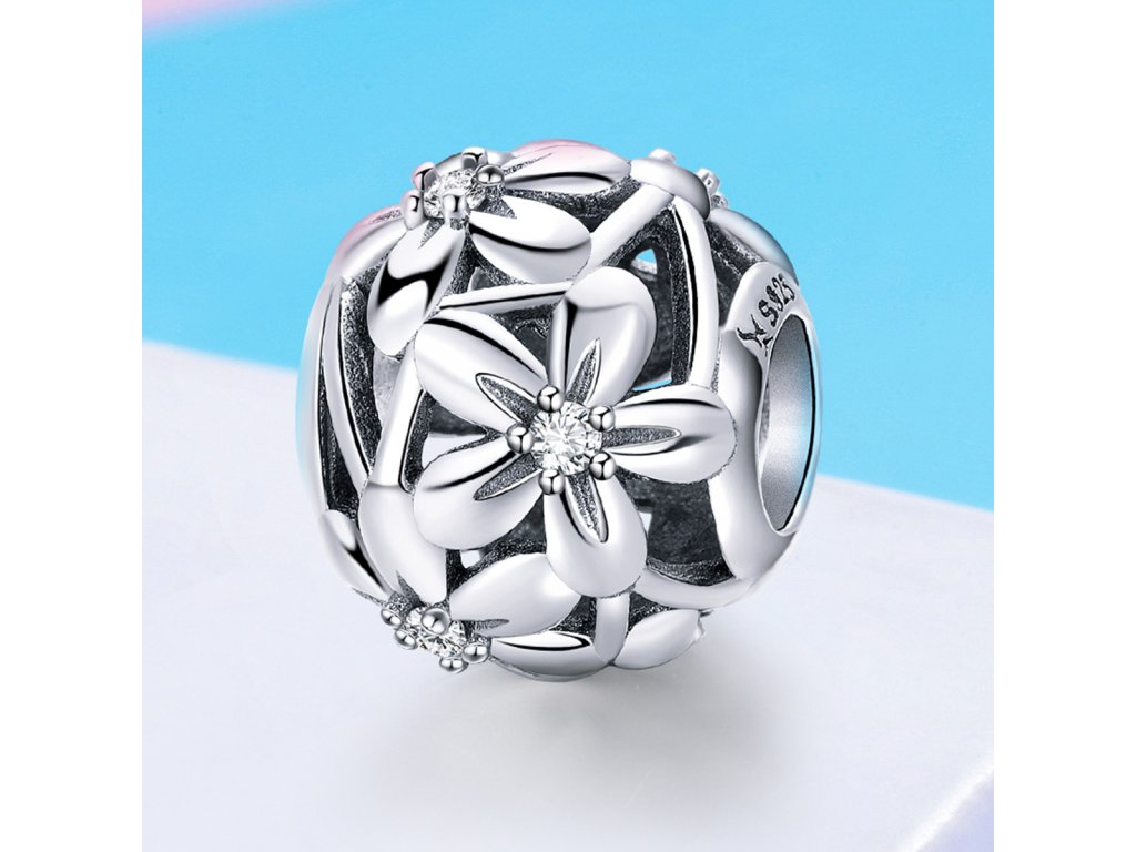 - Prívesok v dizajne lúky kvetín zdobený trblietavé zirkónmi. Nechajte sa okúzliť týmto rozkveltým kúzlom a doprajte Vášmu náramku trochu ženskosti.