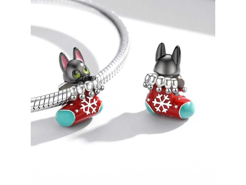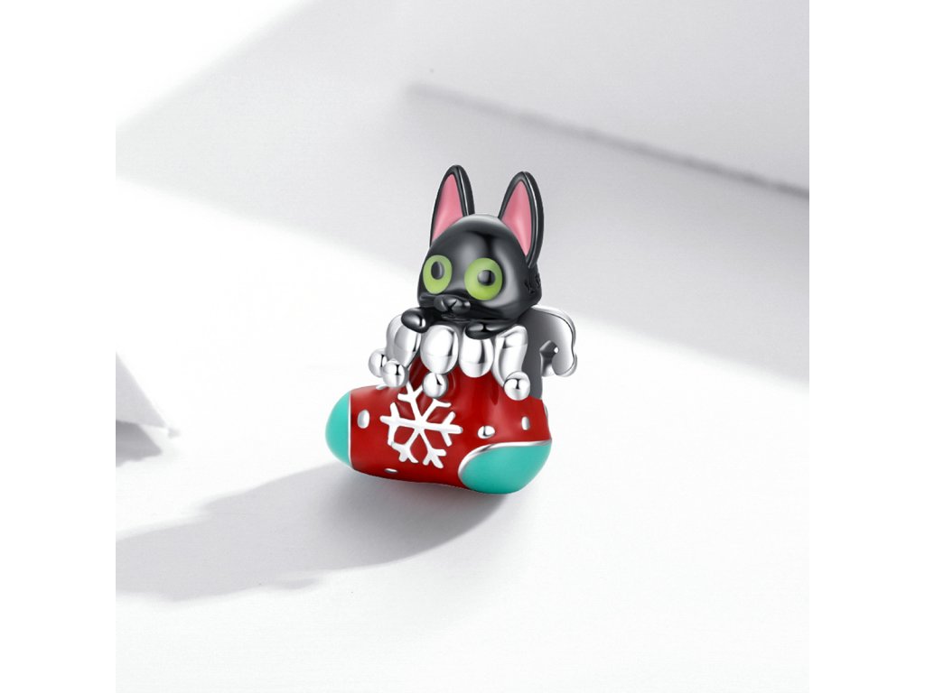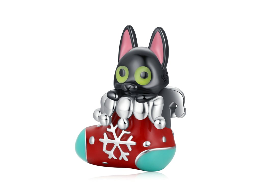 Emporial strieborný prívesok Mačka a vianočné pančucha