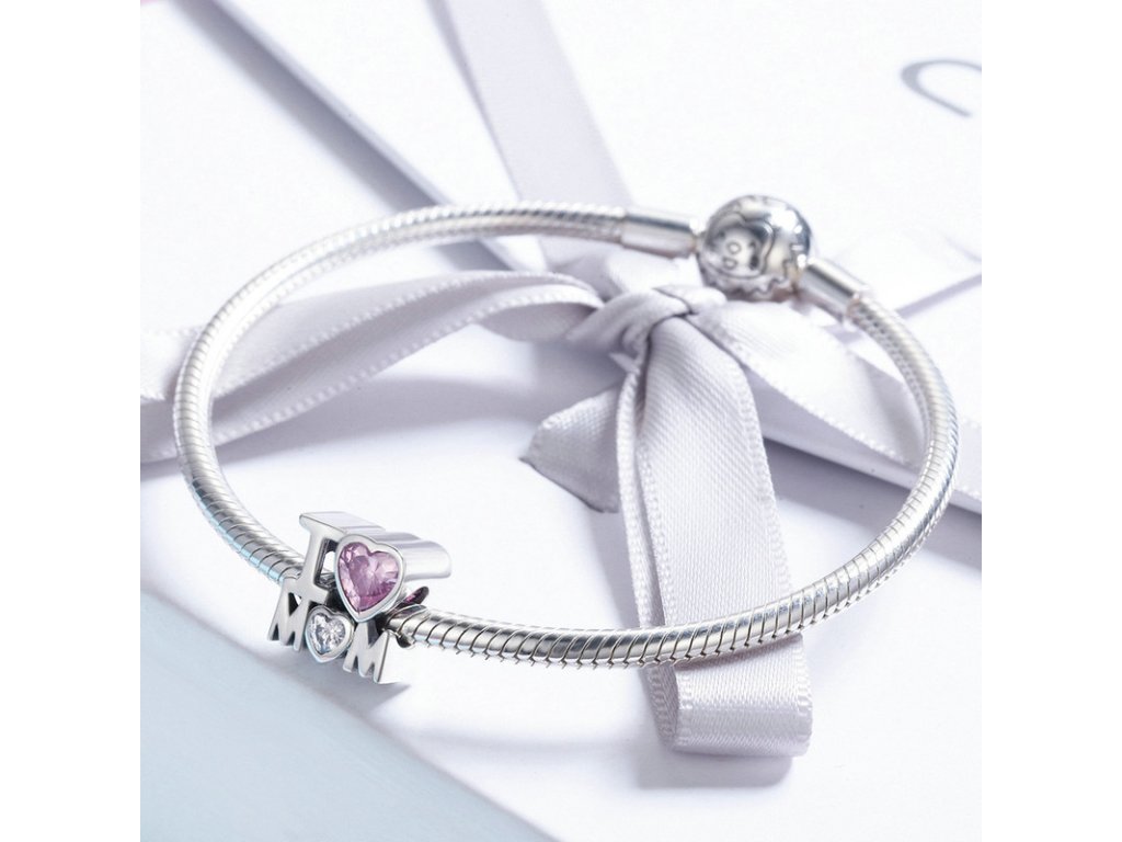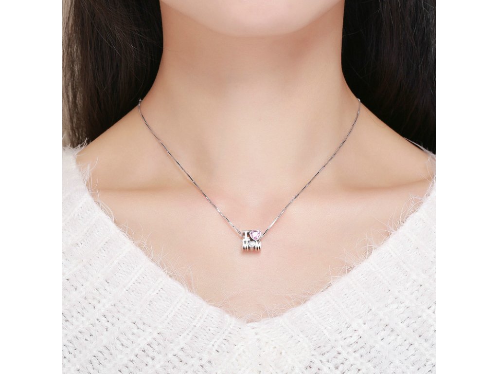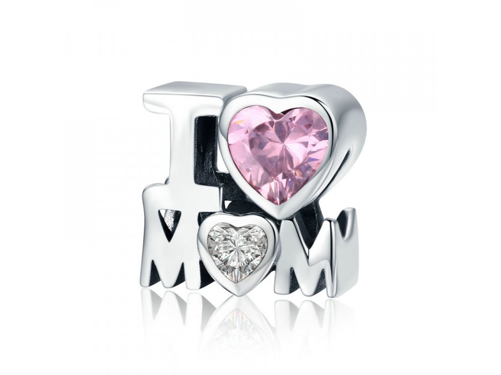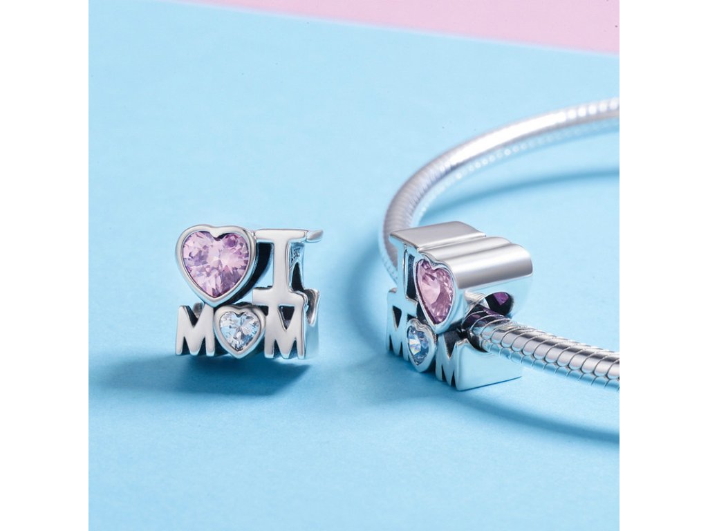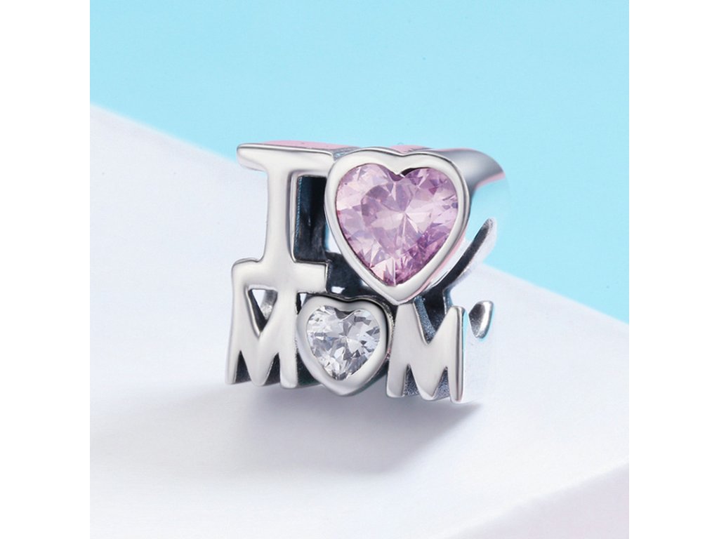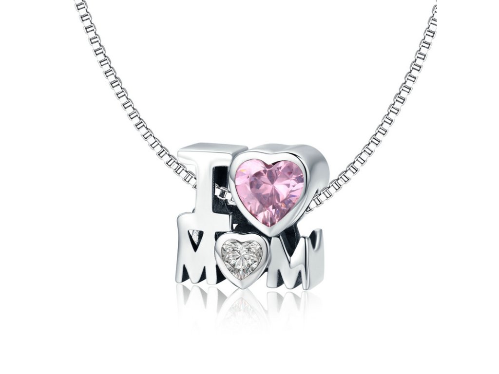 - Luxusný a prepracovaný prívesok v dizajne anglického nápisu "I love mom" zdobeného trblietavými zirkónmi.
