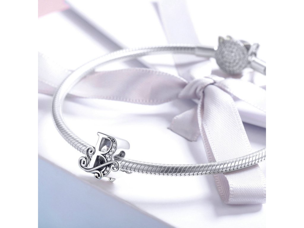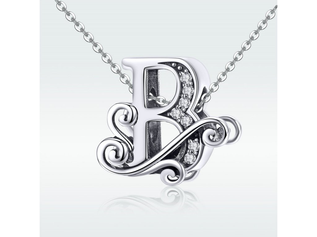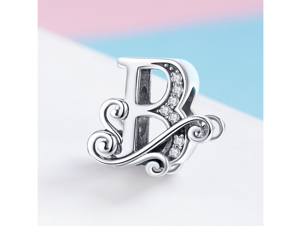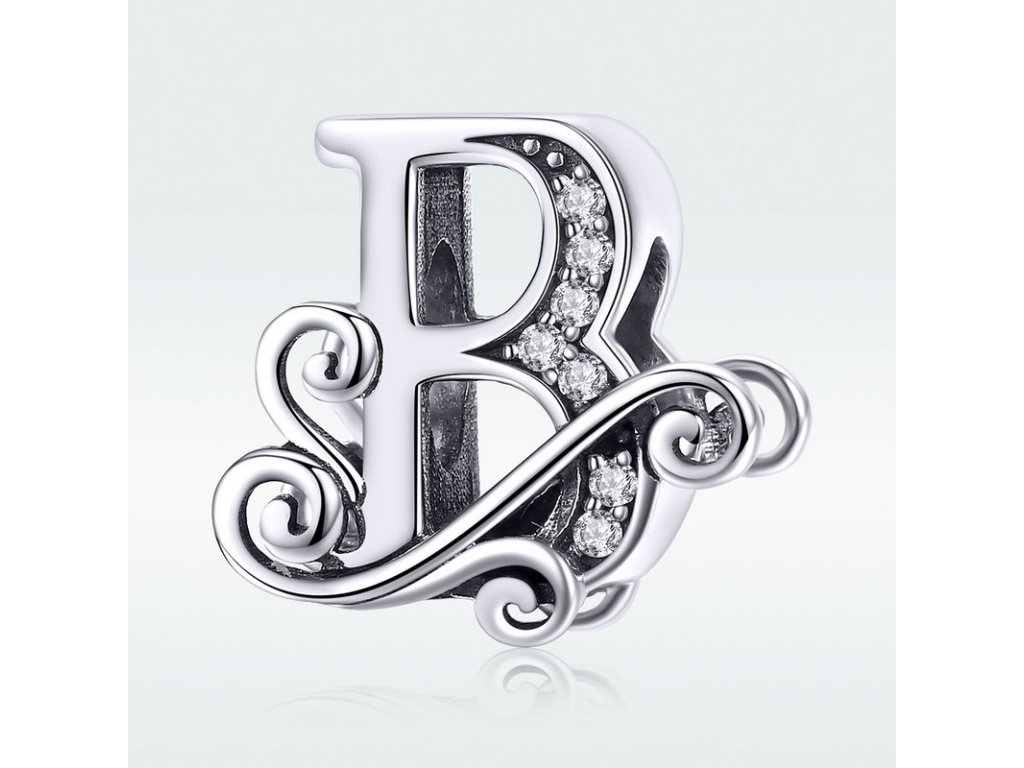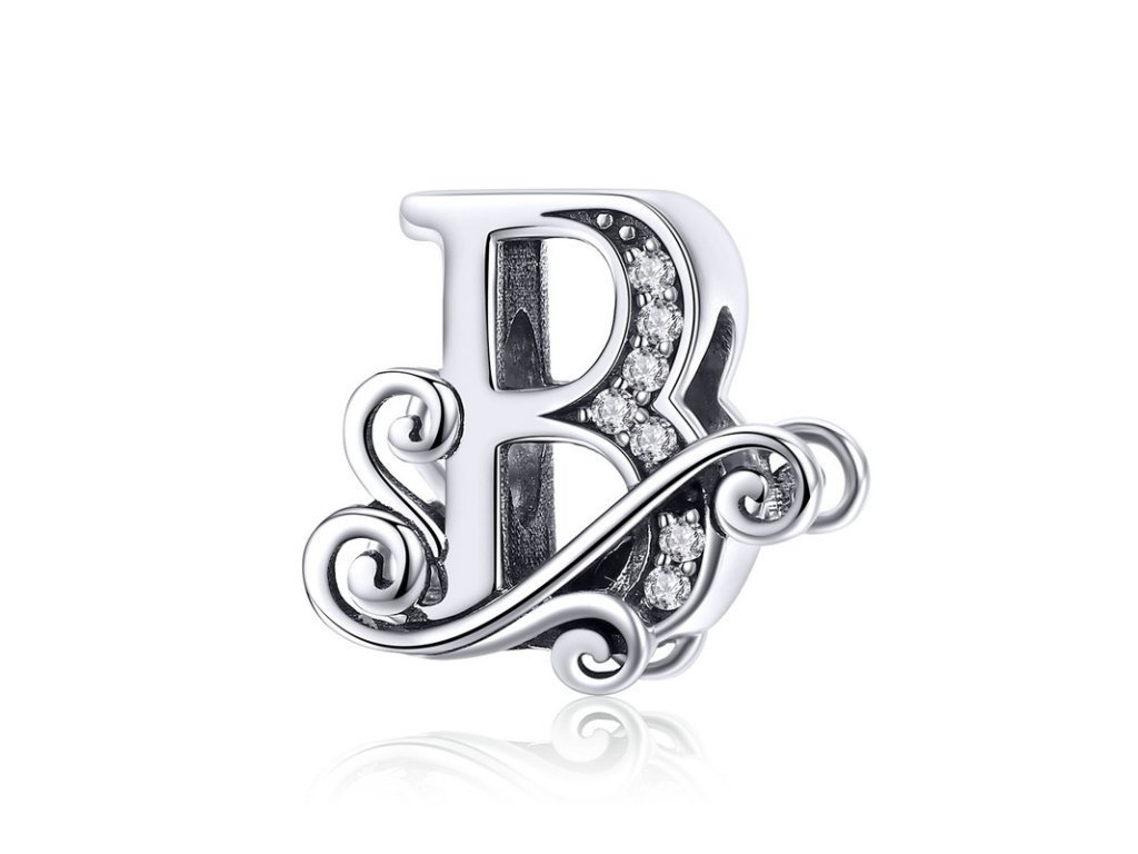 - Luxusný a prepracovaný strieborný prívesok v tvare písmenka "B" zdobený trblietavými zirkónmi.