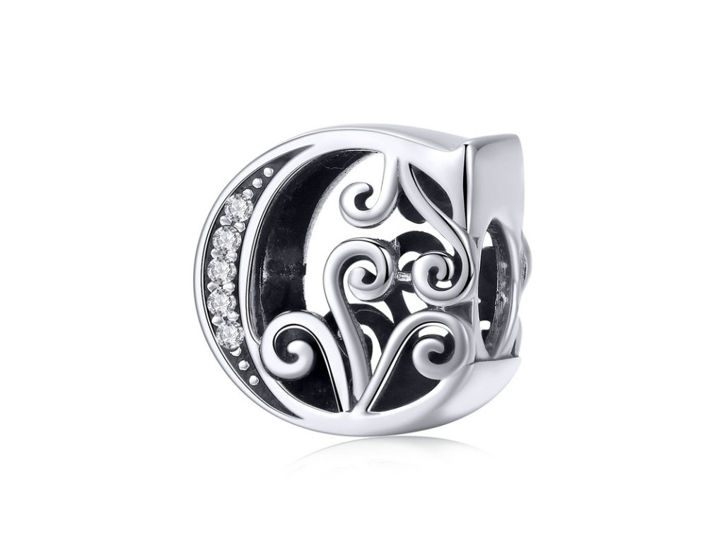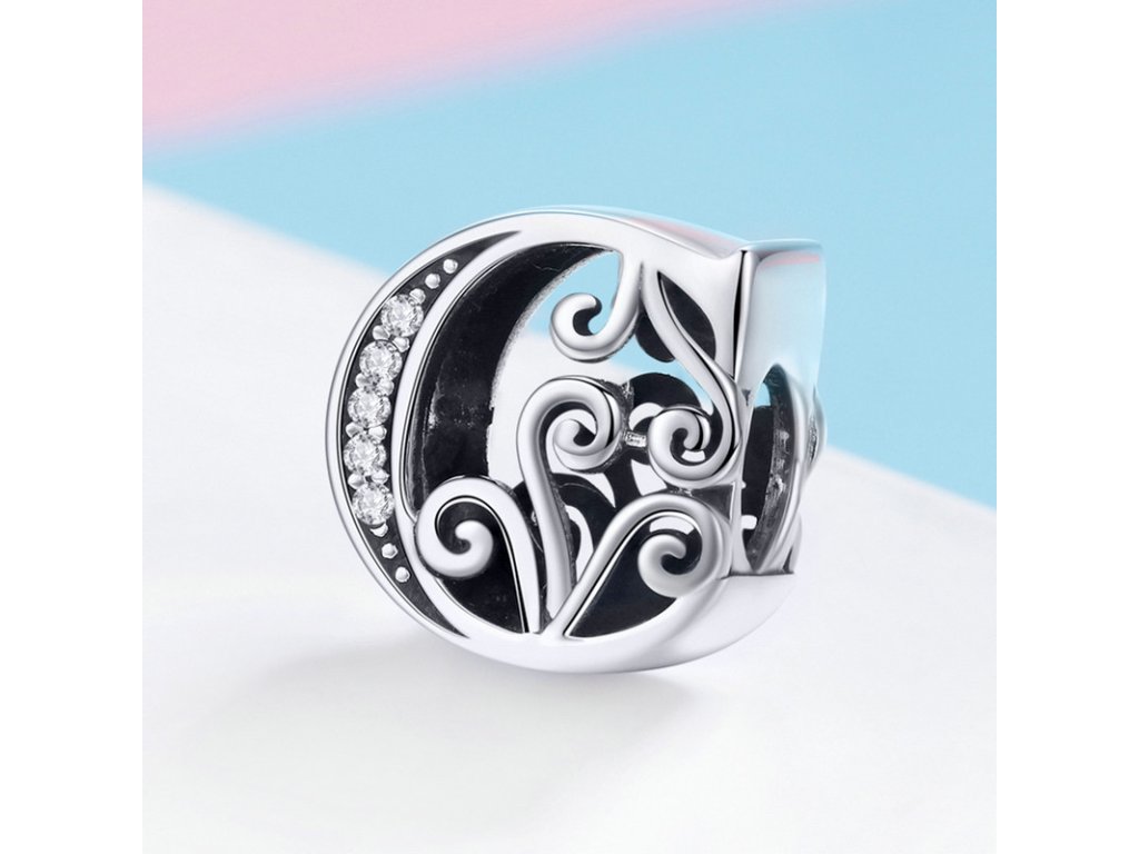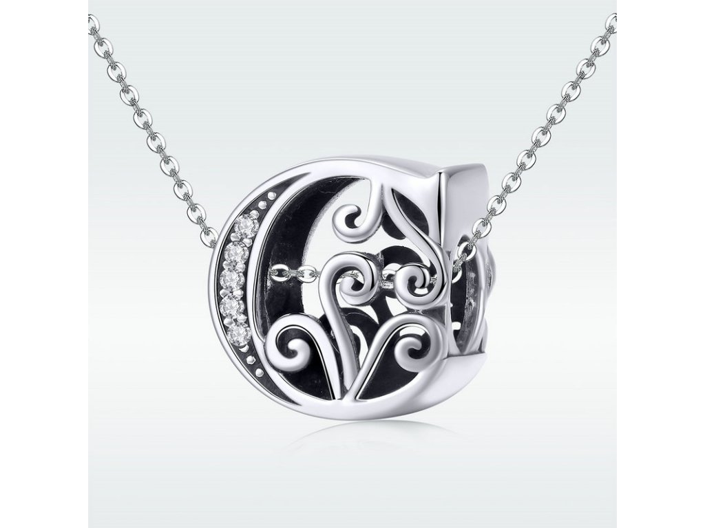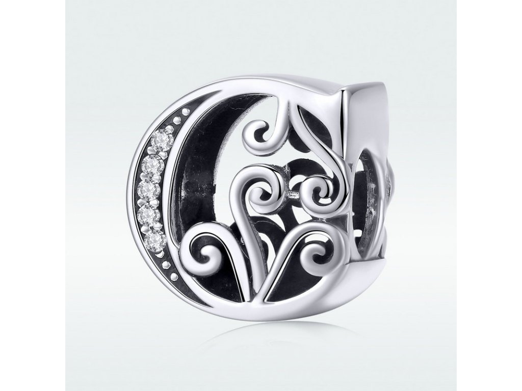 - Luxusný a prepracovaný strieborný prívesok v tvare písmenka "C" zdobený trblietavými zirkónmi.