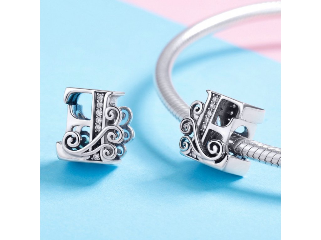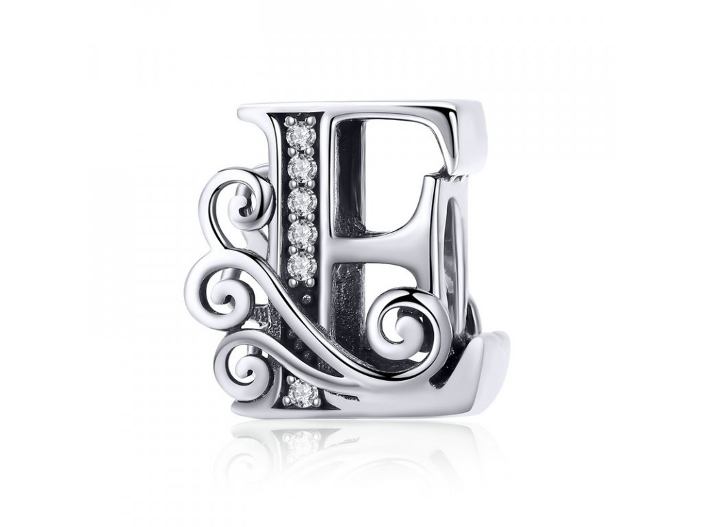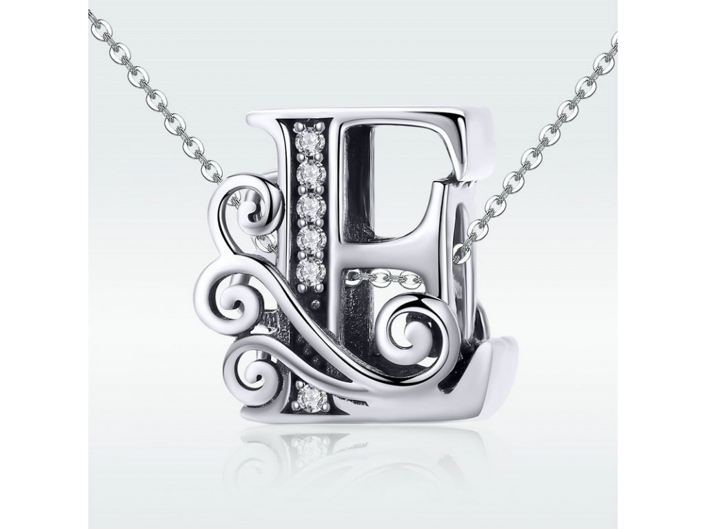 - Luxusný a prepracovaný strieborný prívesok v tvare písmenka "E" zdobený trblietavými zirkónmi.