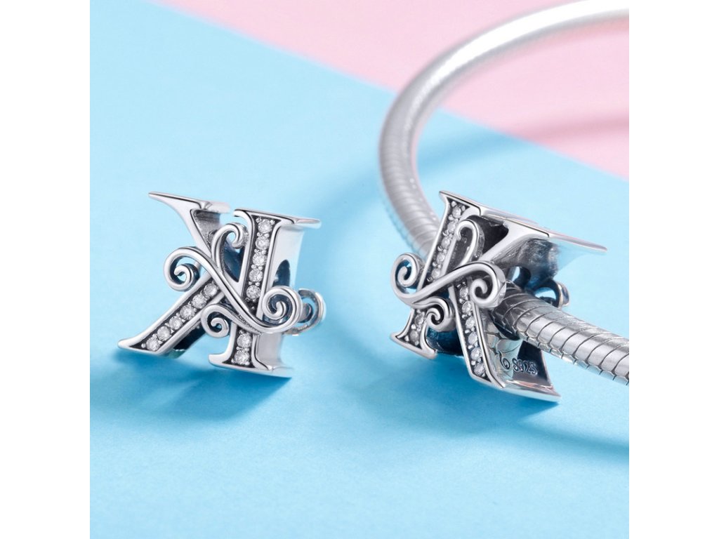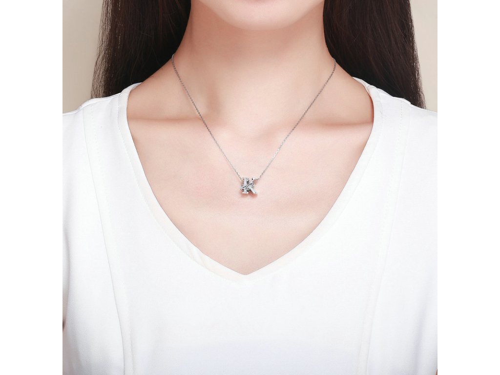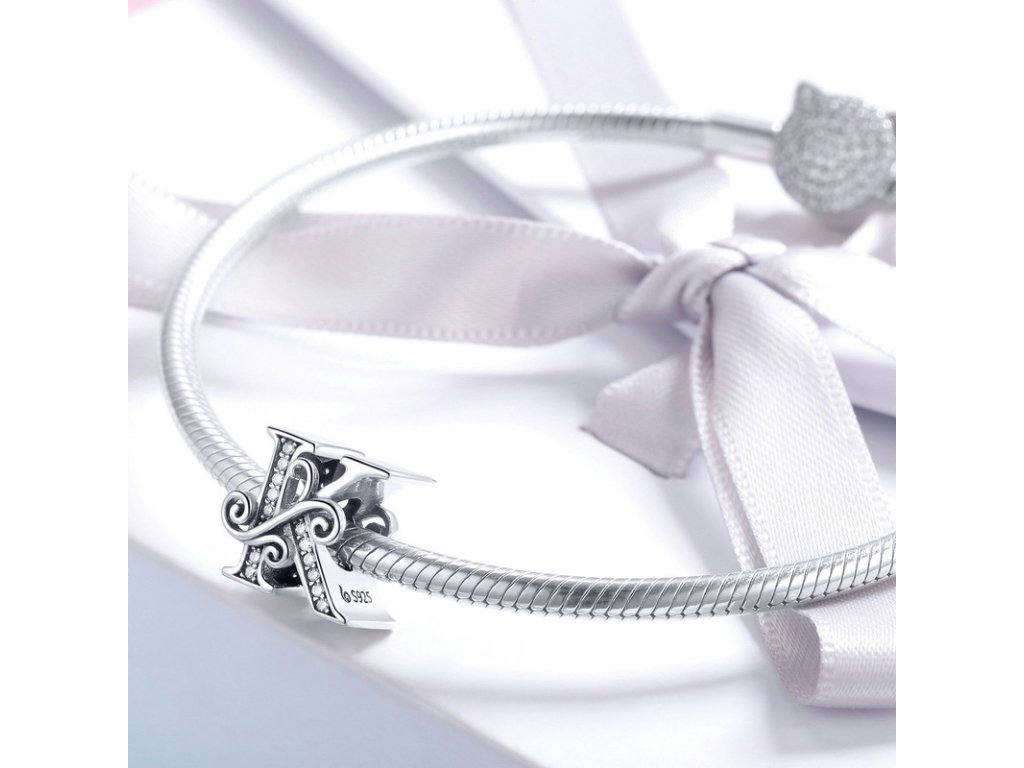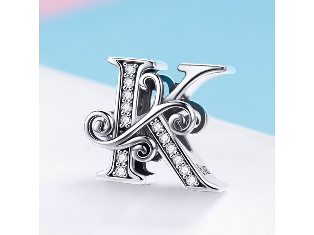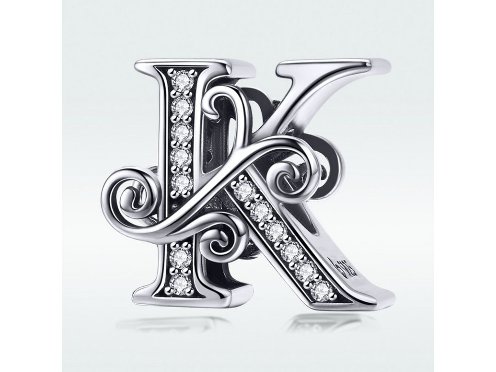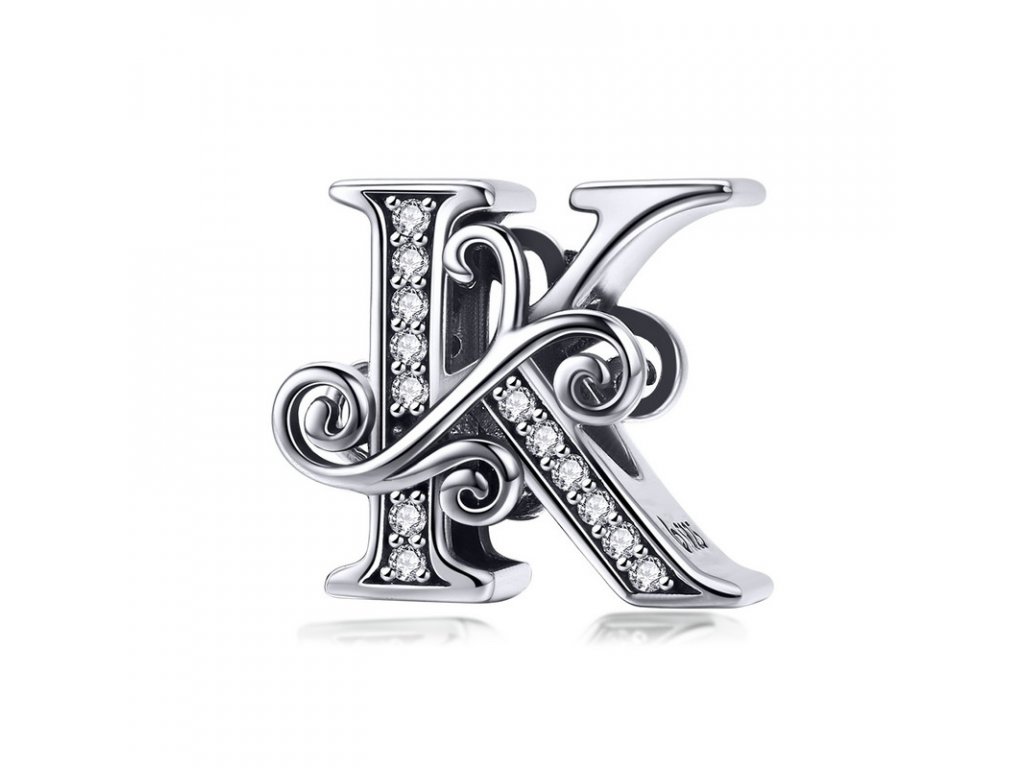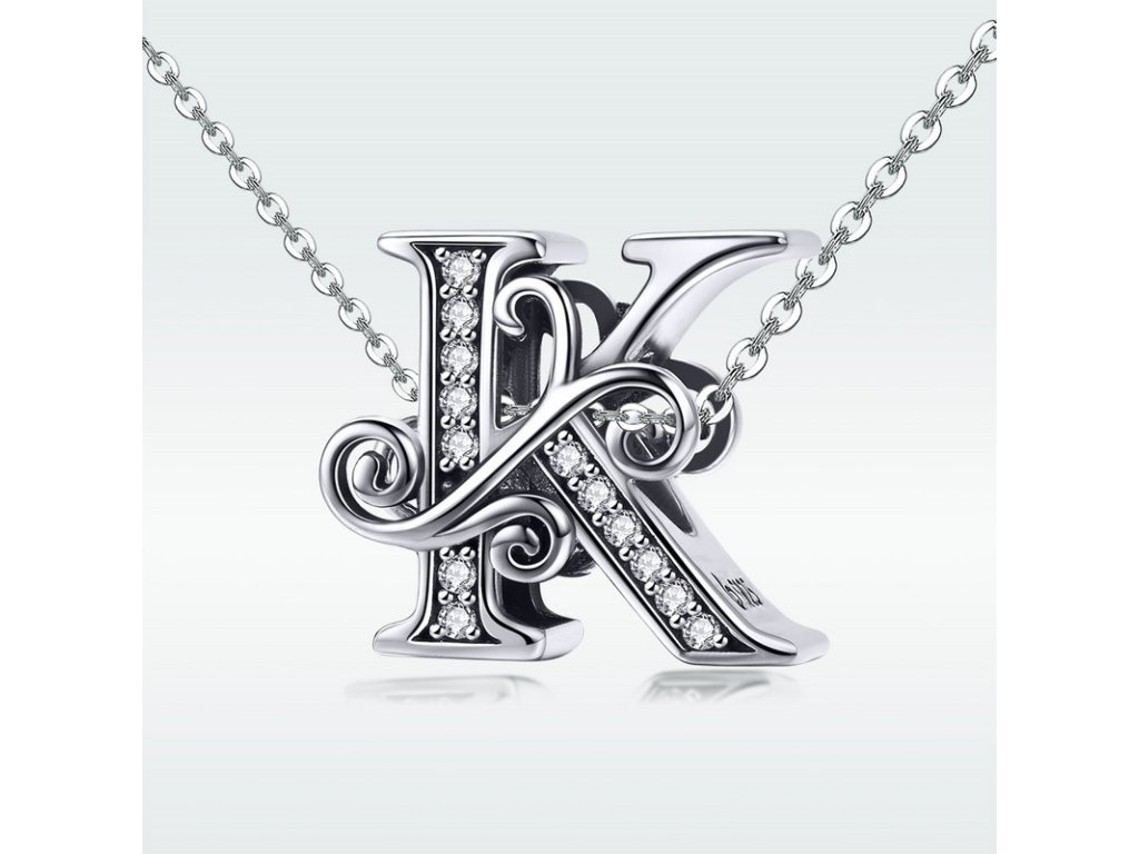 - Luxusný a prepracovaný strieborný prívesok v tvare písmenka "K" zdobený trblietavými zirkónmi.