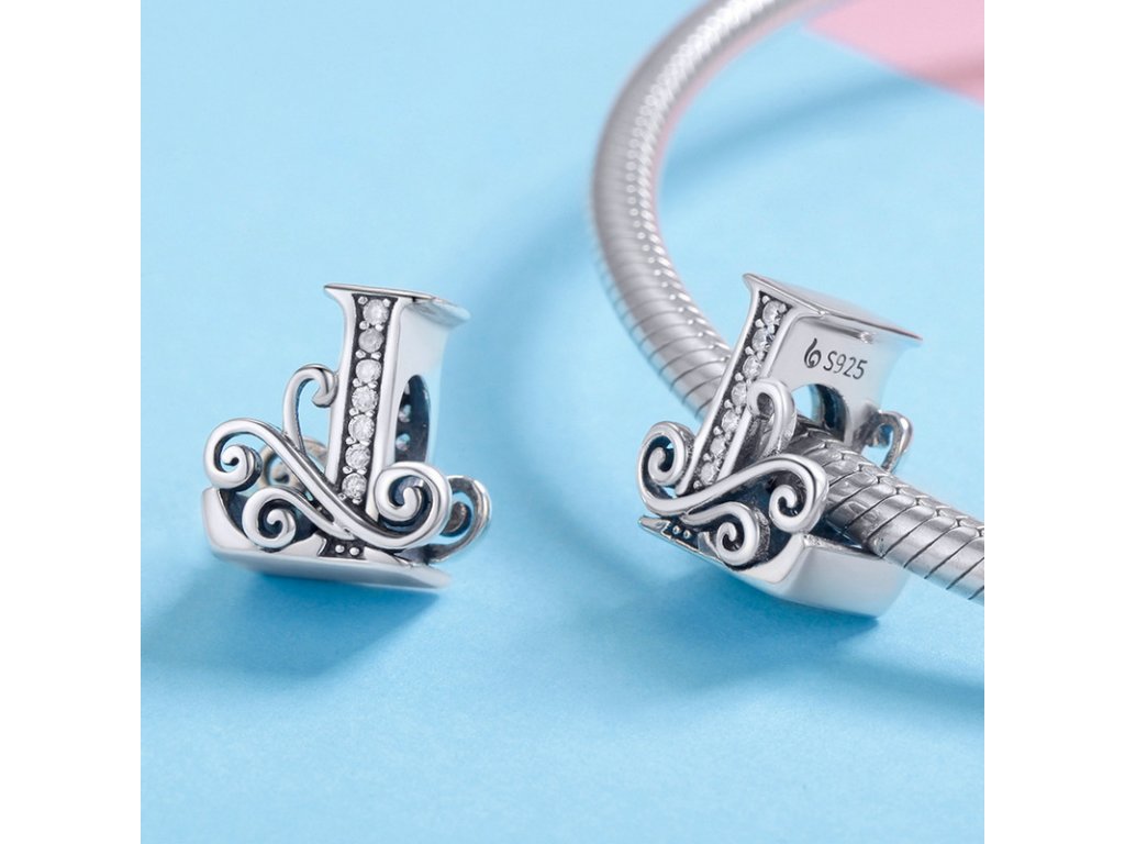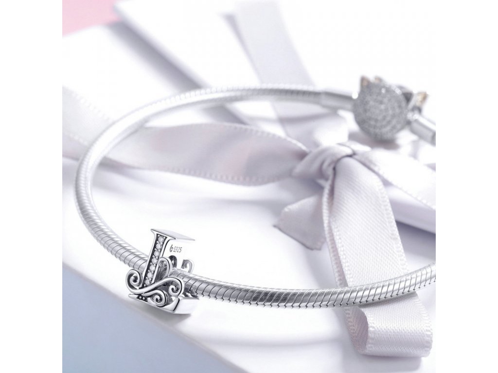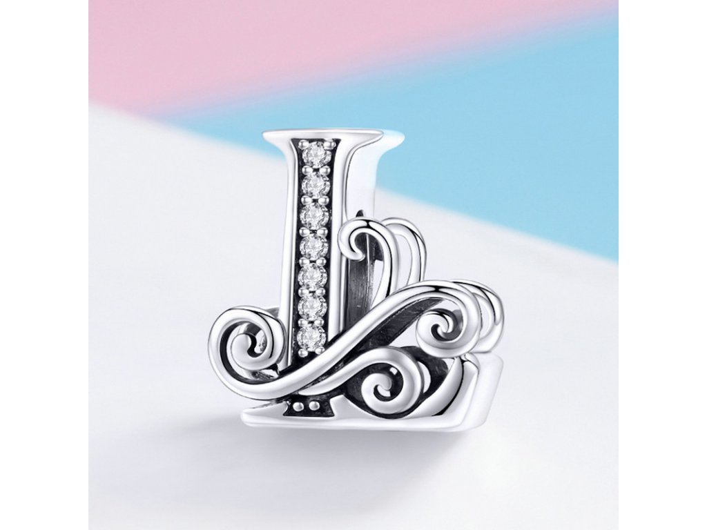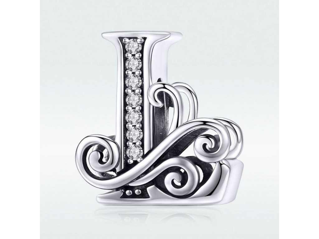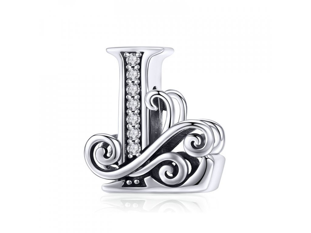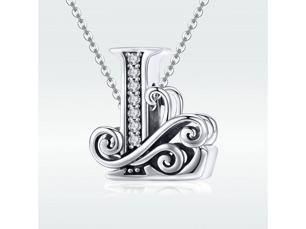 - Luxusný a prepracovaný strieborný prívesok v tvare písmenka "L" zdobený trblietavými zirkónmi.