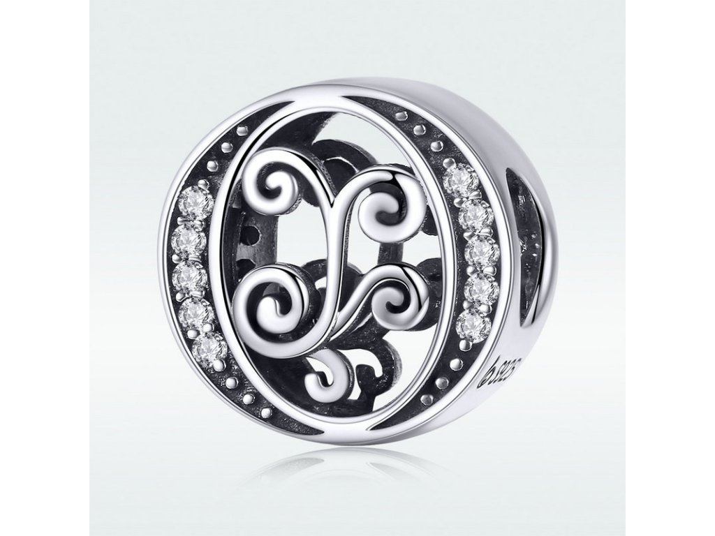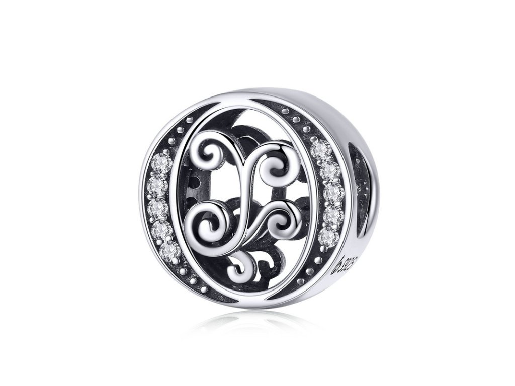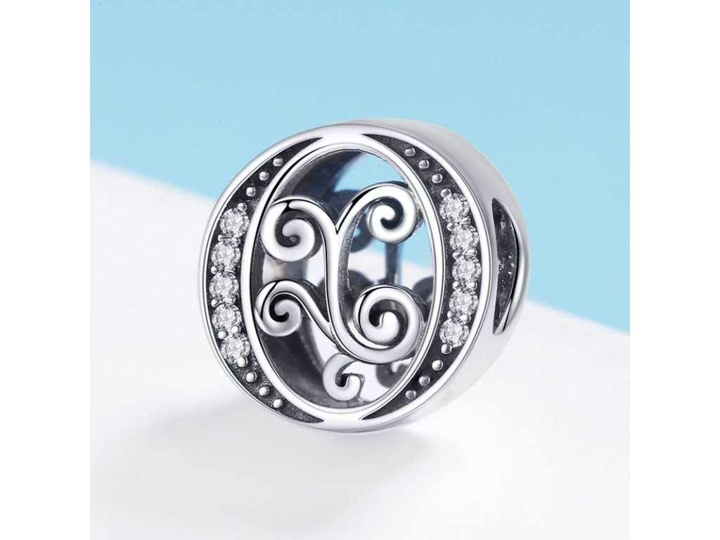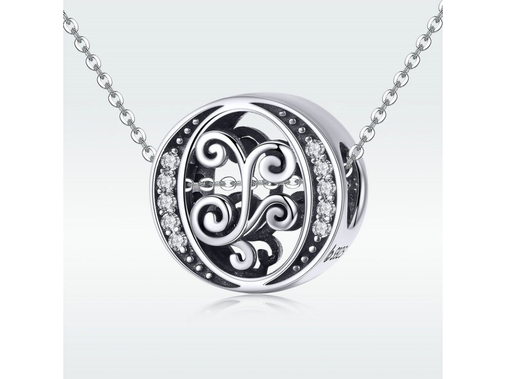 - Luxusný a prepracovaný strieborný prívesok v tvare písmenka "O" zdobený trblietavými zirkónmi.