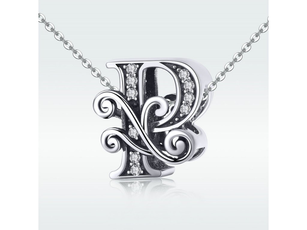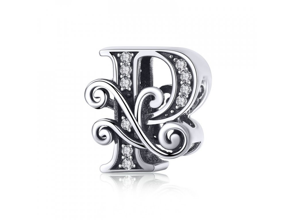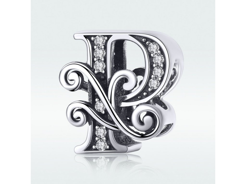 - Luxusný a prepracovaný strieborný prívesok v tvare písmenka "P" zdobený trblietavými zirkónmi.