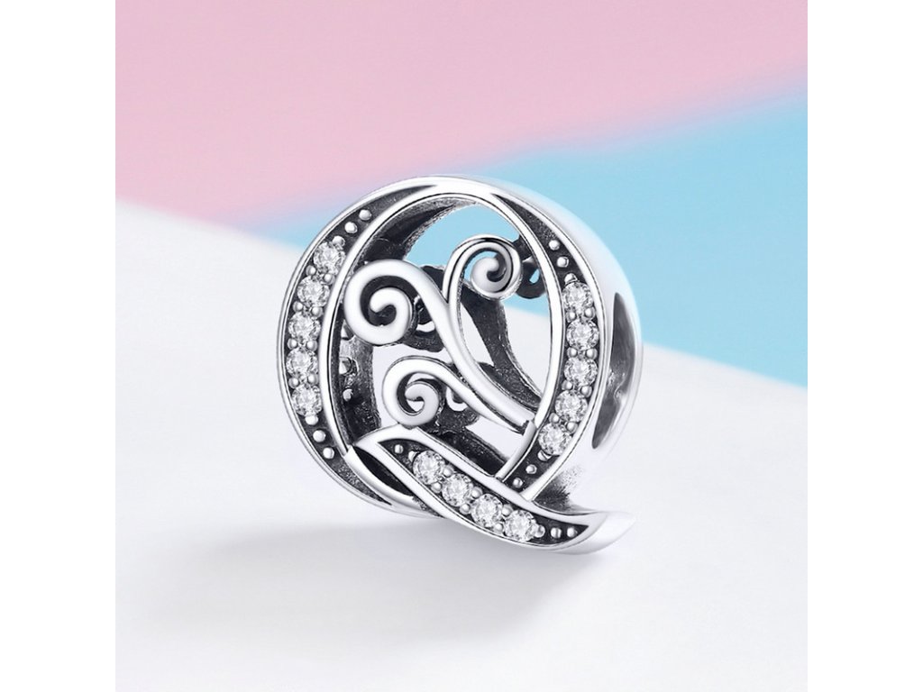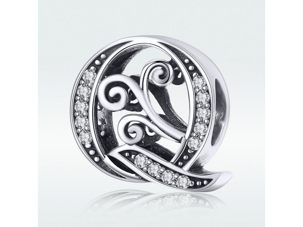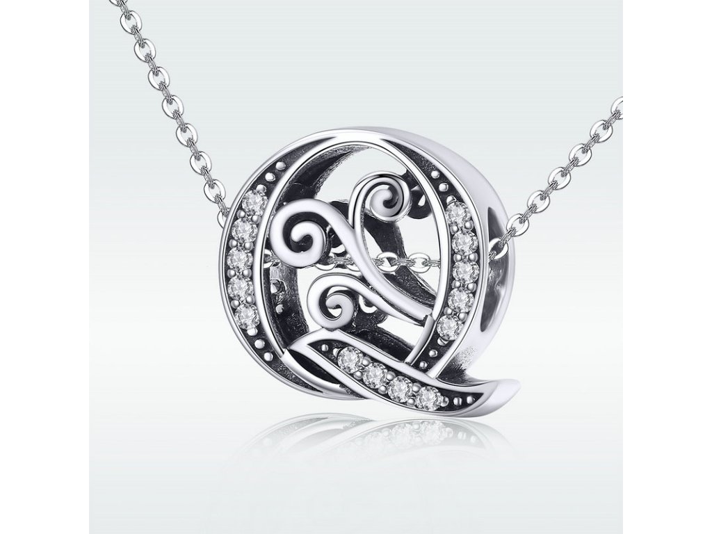 - Luxusný a prepracovaný strieborný prívesok v tvare písmenka "Q" zdobený trblietavými zirkónmi.