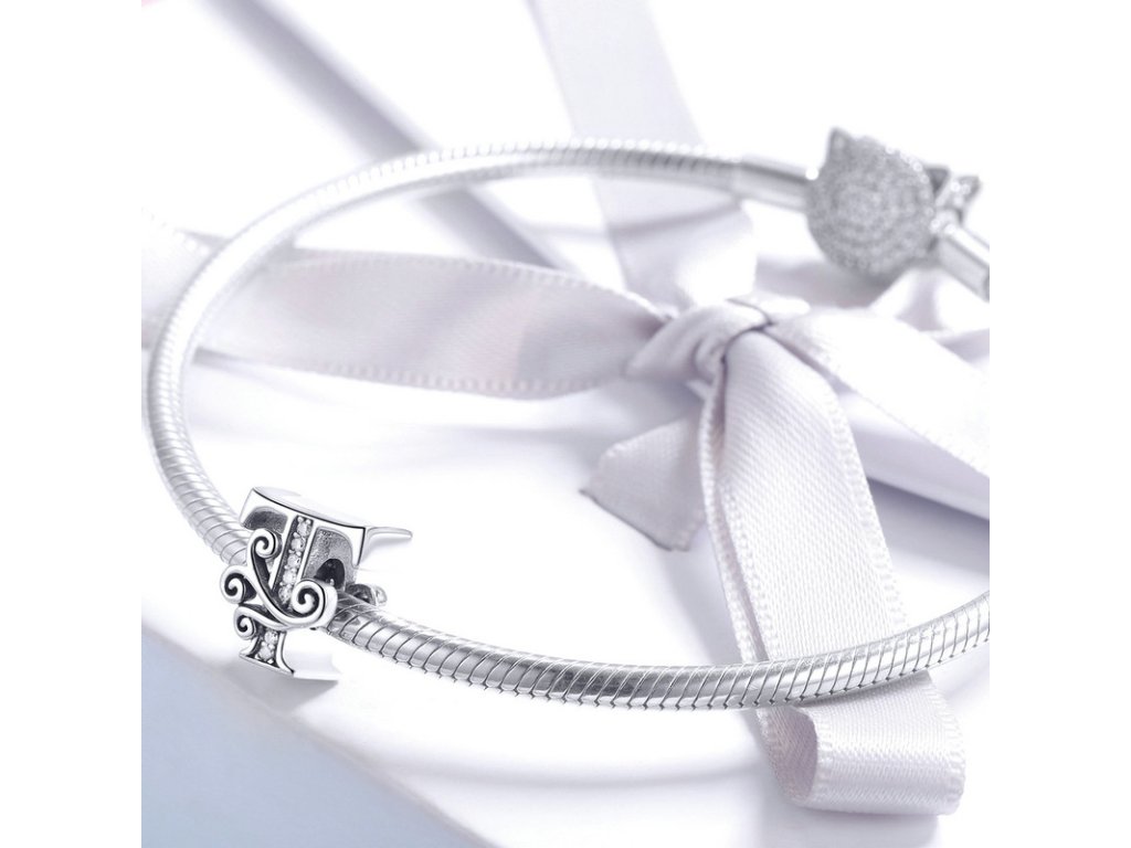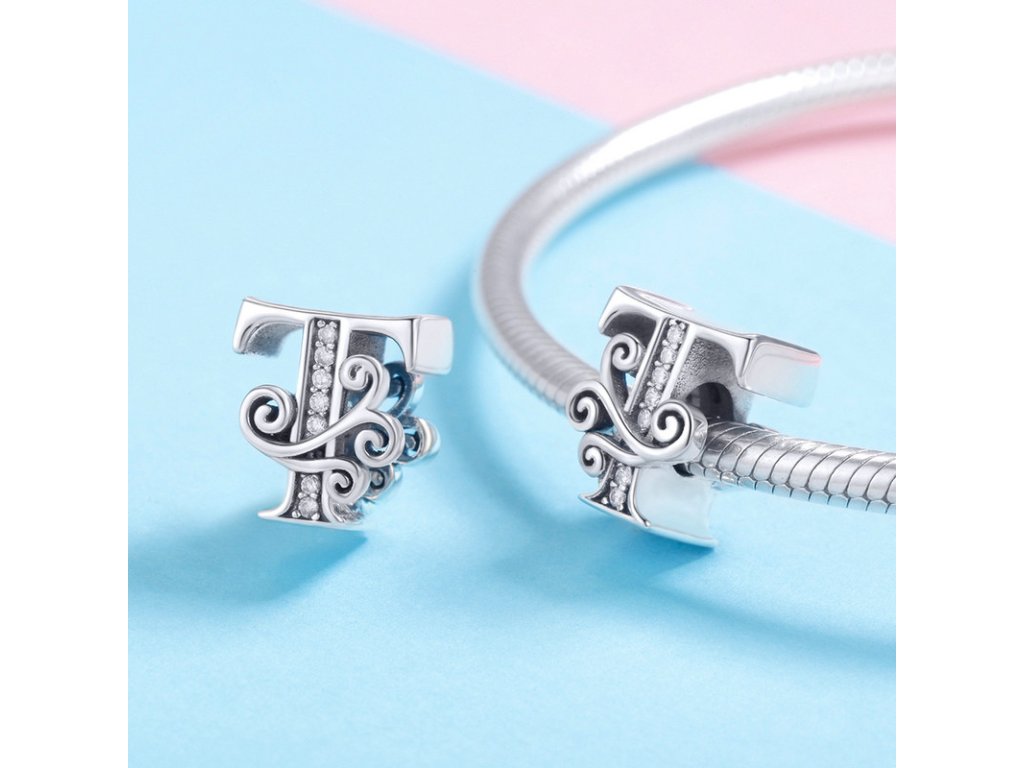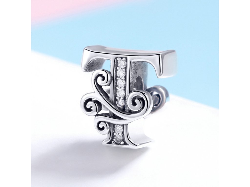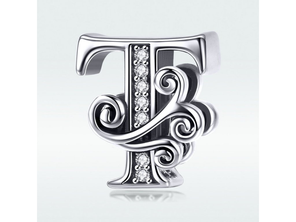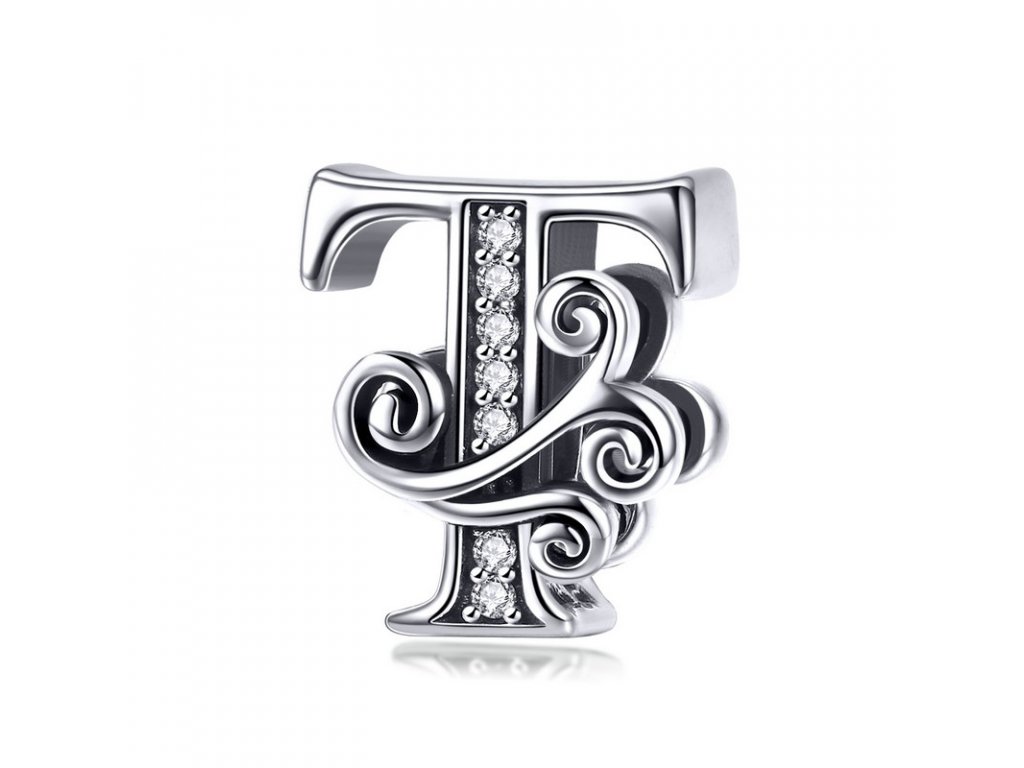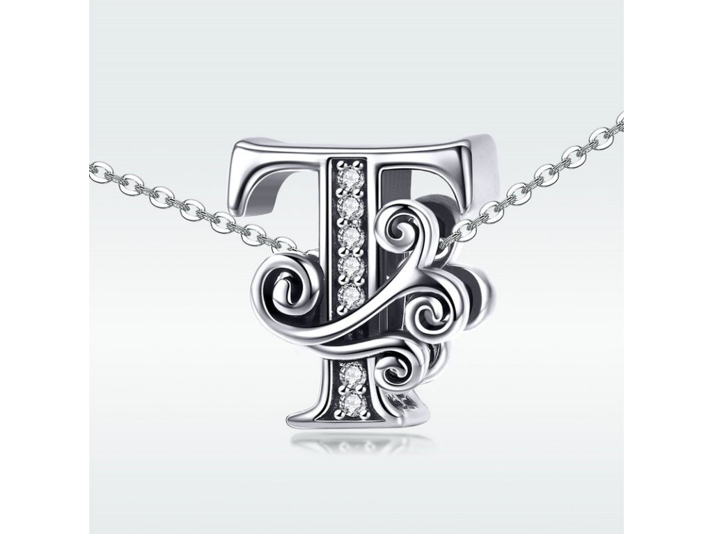 - Luxusný a prepracovaný strieborný prívesok v tvare písmenka "T" zdobený trblietavými zirkónmi.