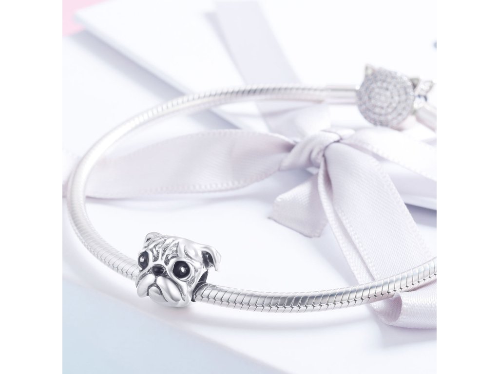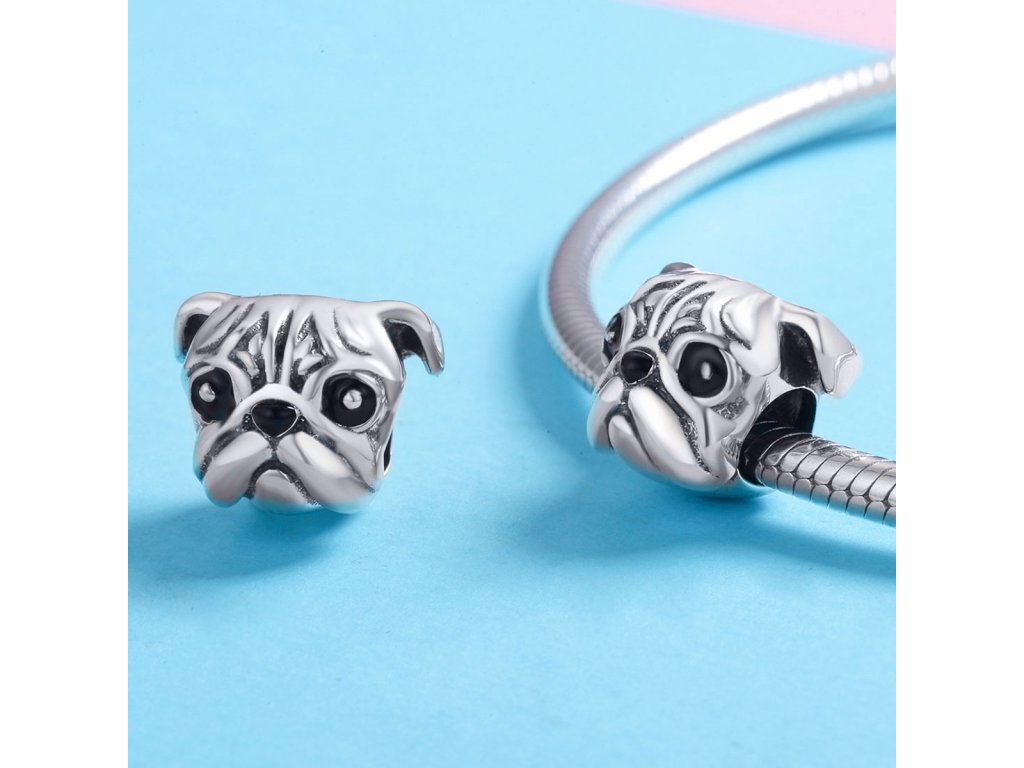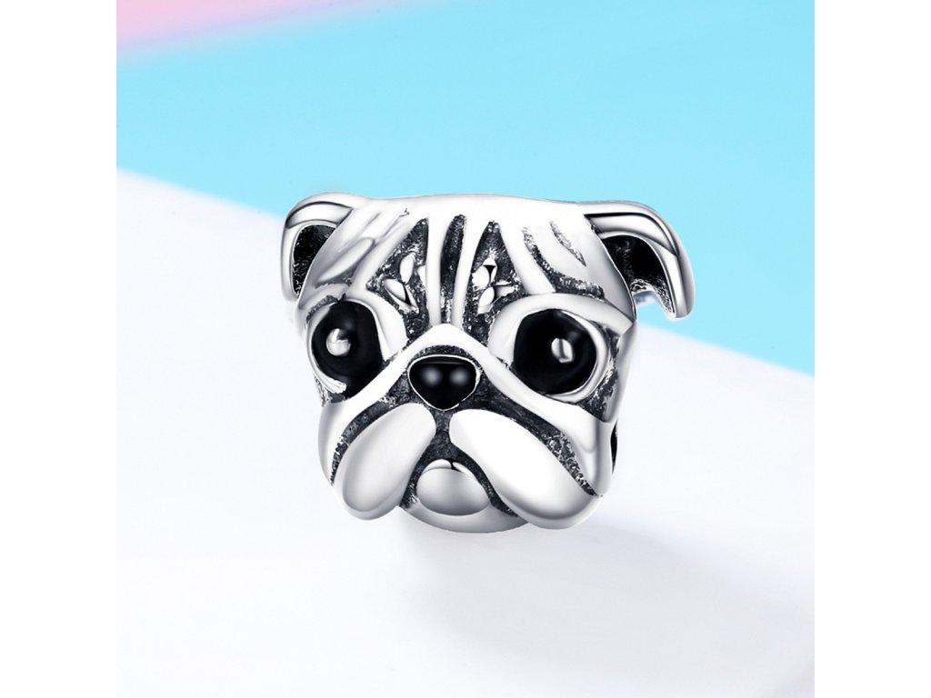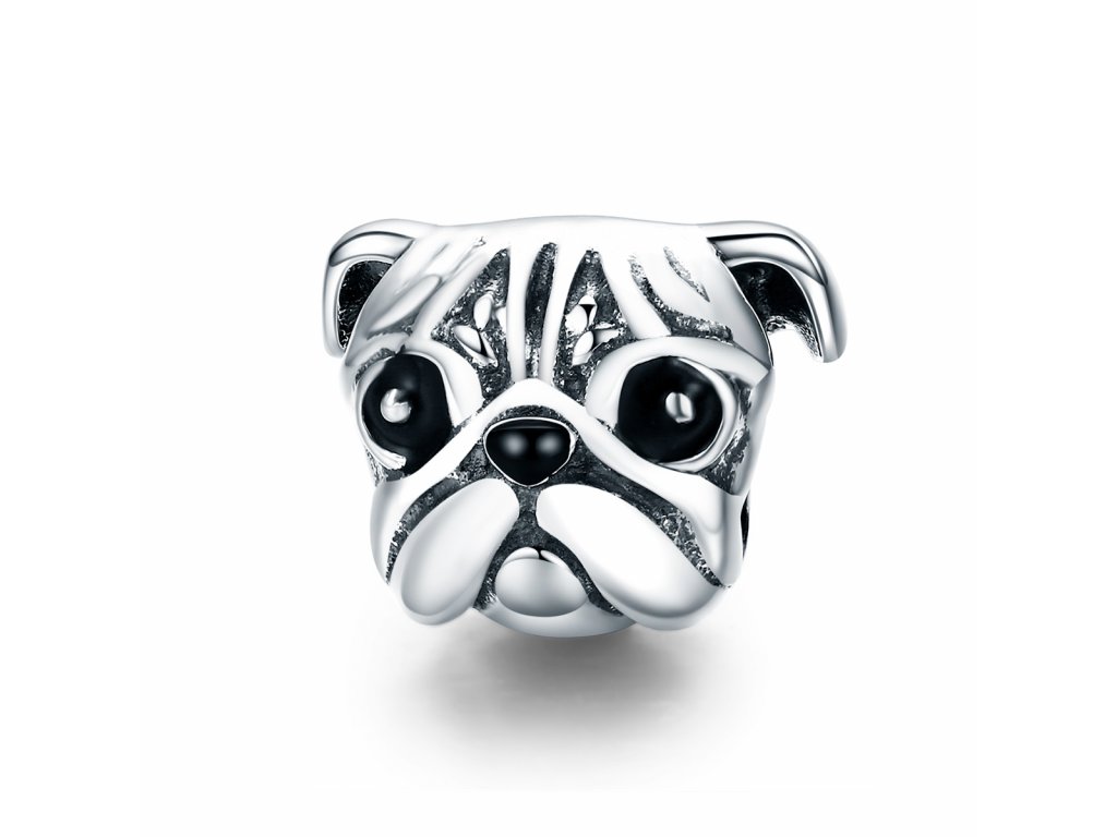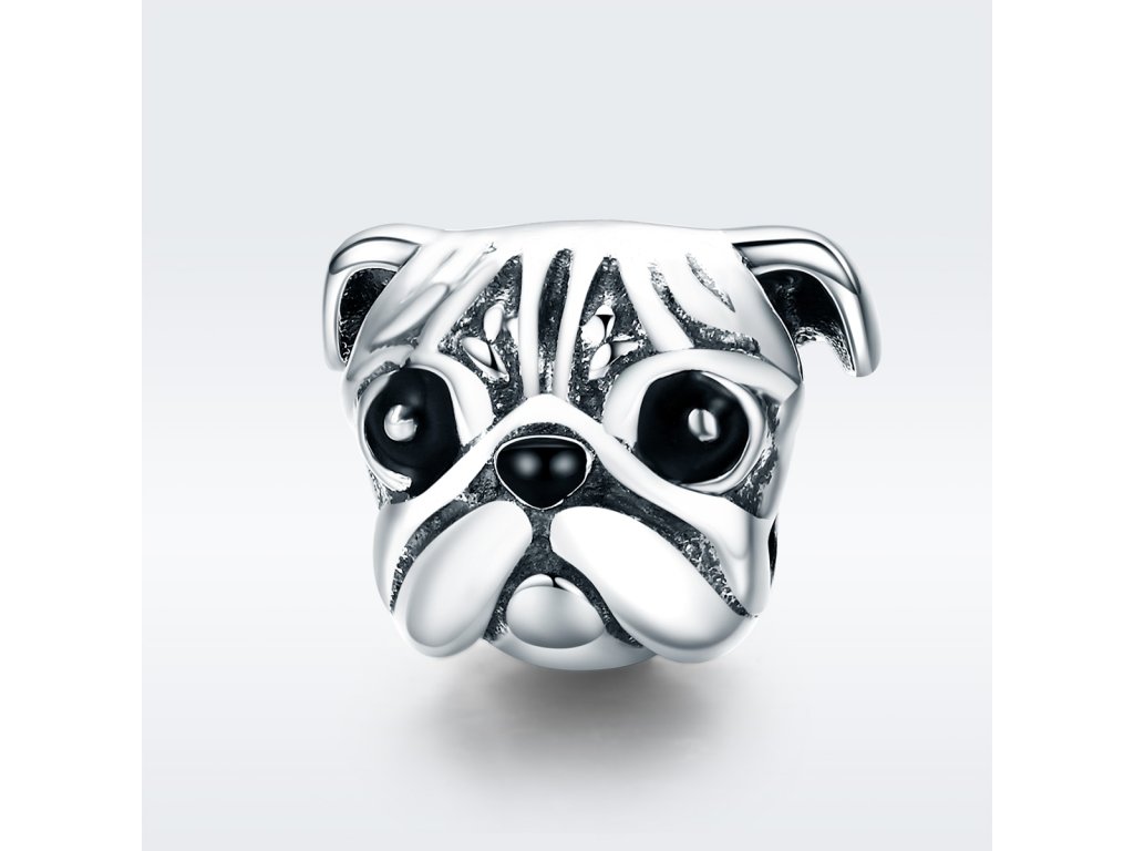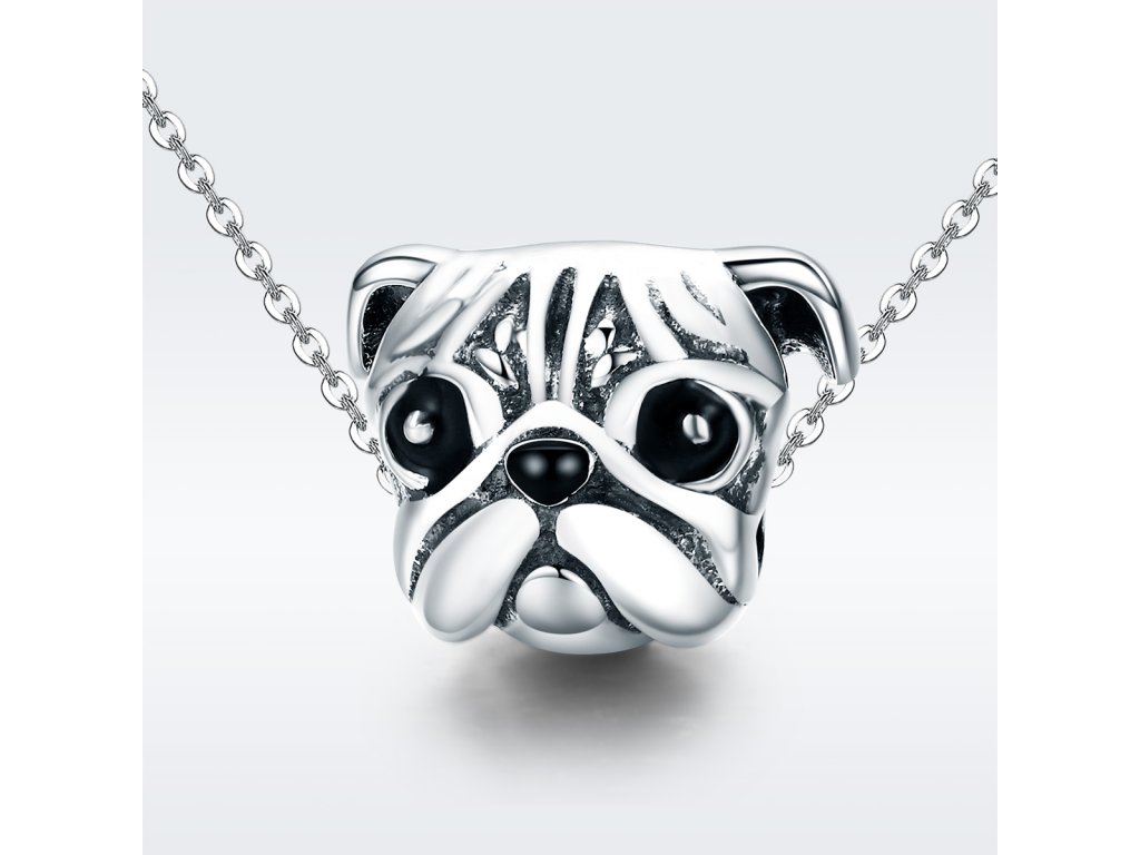 - Luxusný a prepracovaný strieborný prívesok v dizajne psíka Mopsíka zdobený glazúrou.