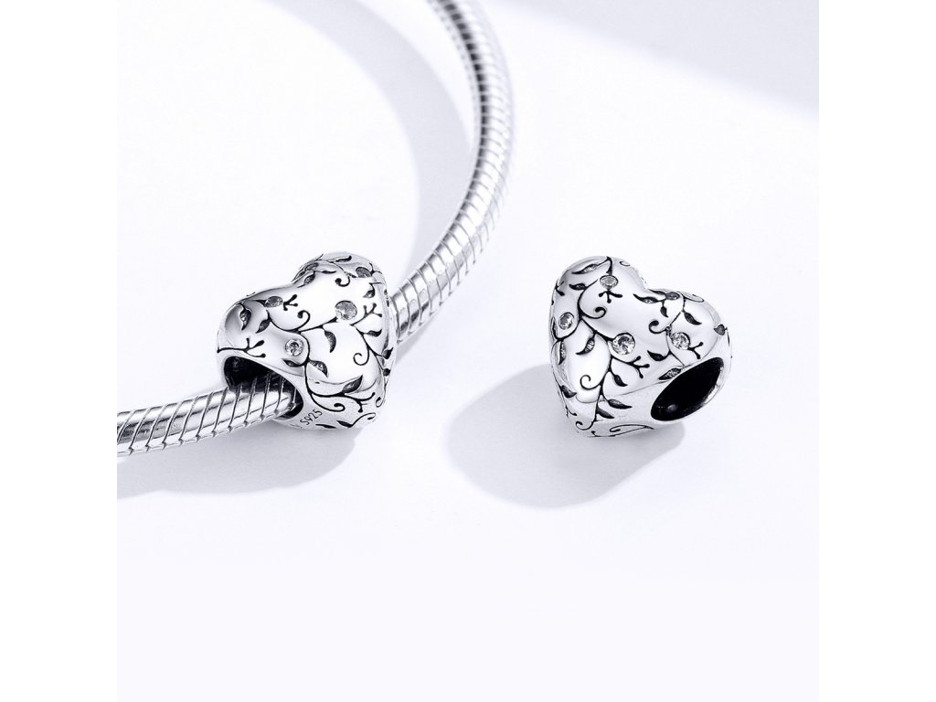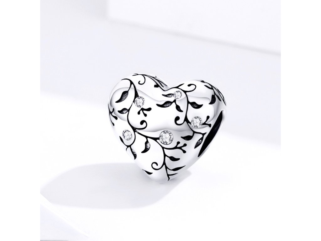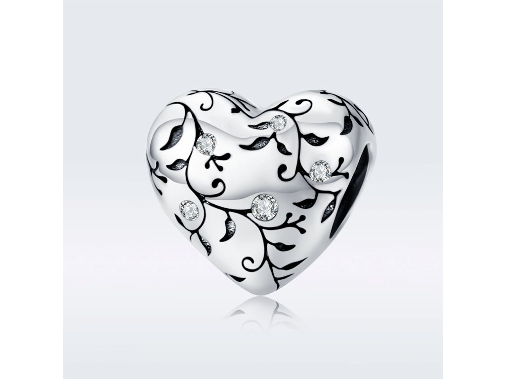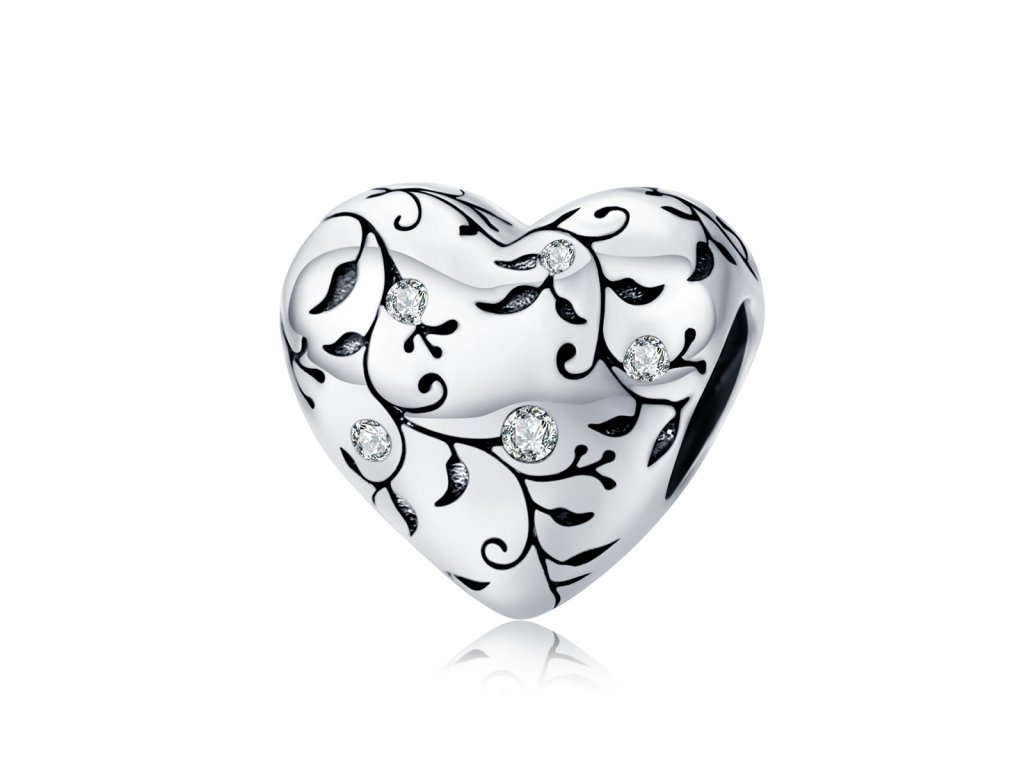 - Strieborný prívesok v dizajne rozkvitnutého srdca zdobeného čírymi zirkónmi.