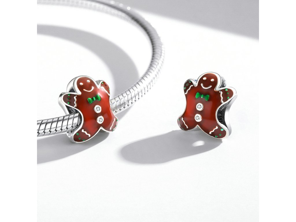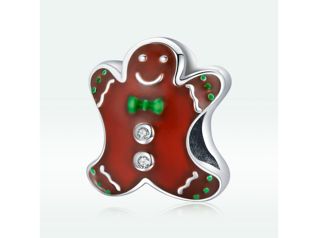 - Strieborný prívesok v dizajne Roztomilého perníčka zdobeného ručne nanášanou hnedou glazúrou. Prívesok je tiež zdobený ručne posádzanými čírymi trblietavými zirkónmi. Originálny design prívesku, kvalitné spracovanie a materiál, ručne dohotovené.