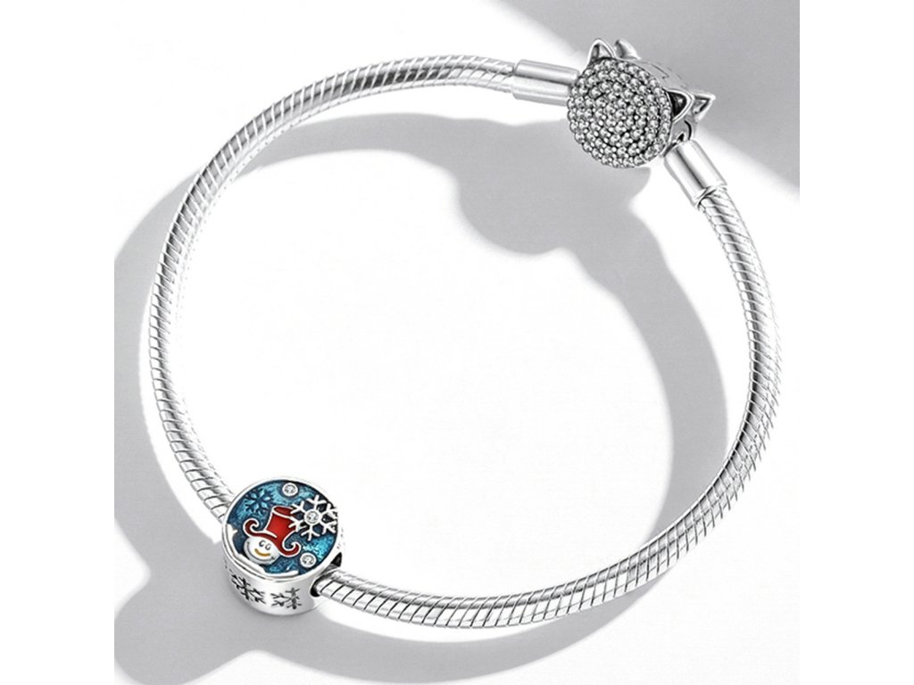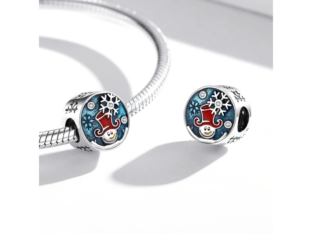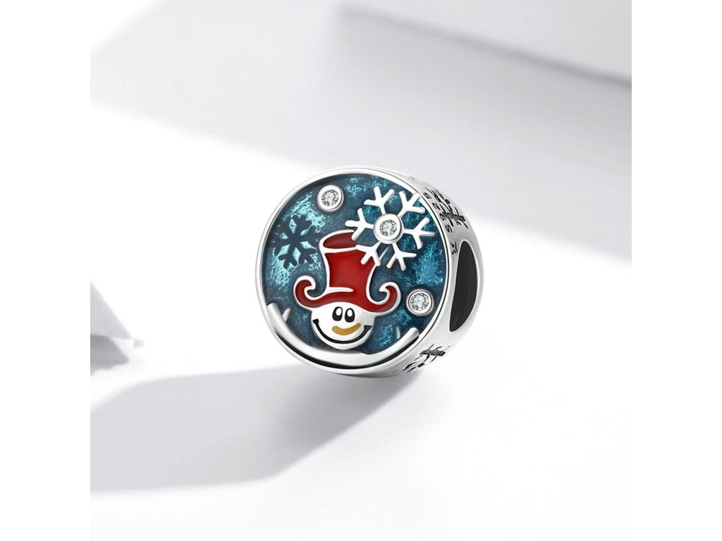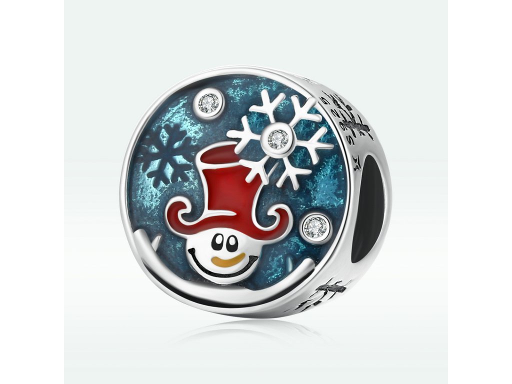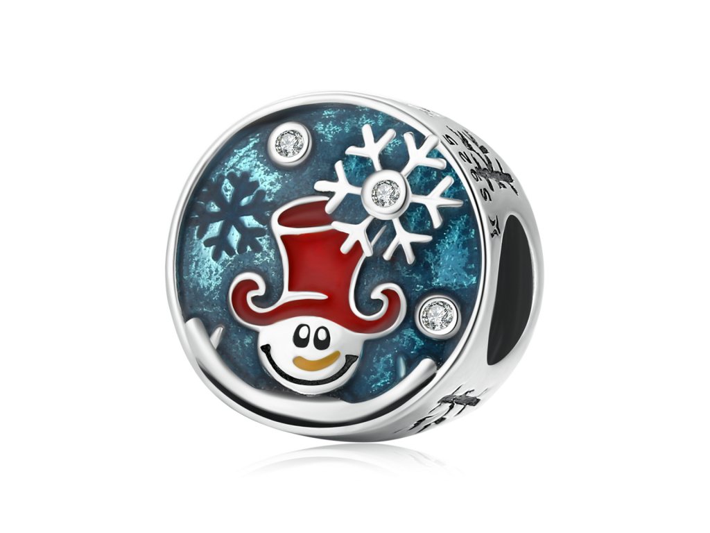 - Strieborný prívesok v dizajne roztomilého snehuliaka s červenou čiapkou. Prívesok je zdobený ručne nanášanou farebnou glazúrou, čírymi trblietavými zirkónmi a smaltovanými vločkami po celom svojom obvode. Originálny design prívesku, kvalitné spracovanie a materiál, ručne dohotovené.