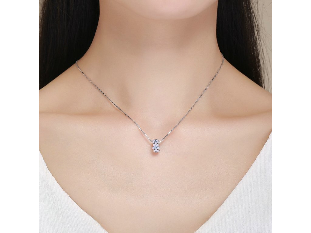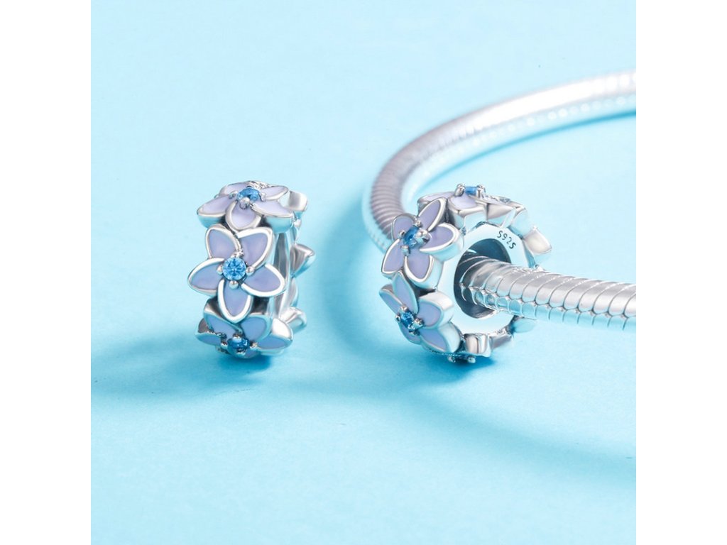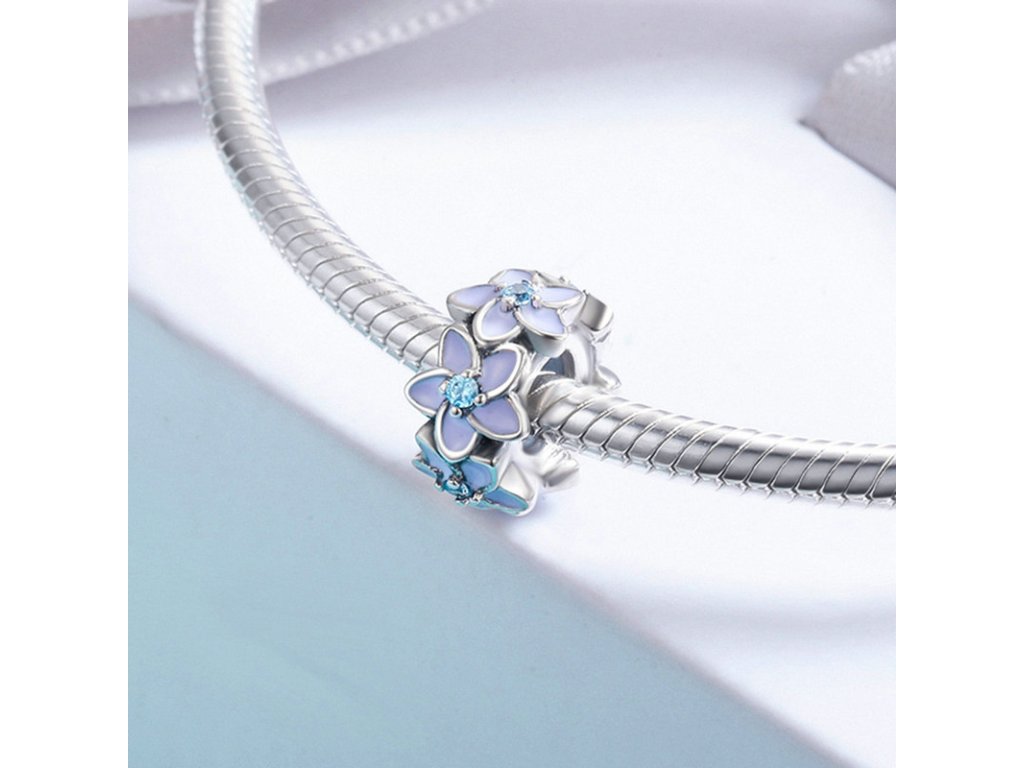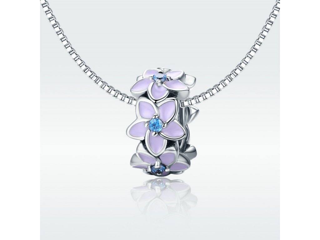 - Prívesok v dizajne poľa nezábudiek zdobený trblietavými zirkónmi a ručne nanášanou glazúrou.
