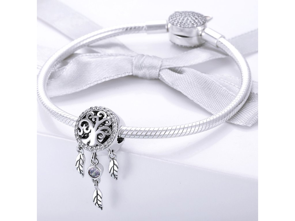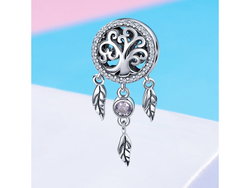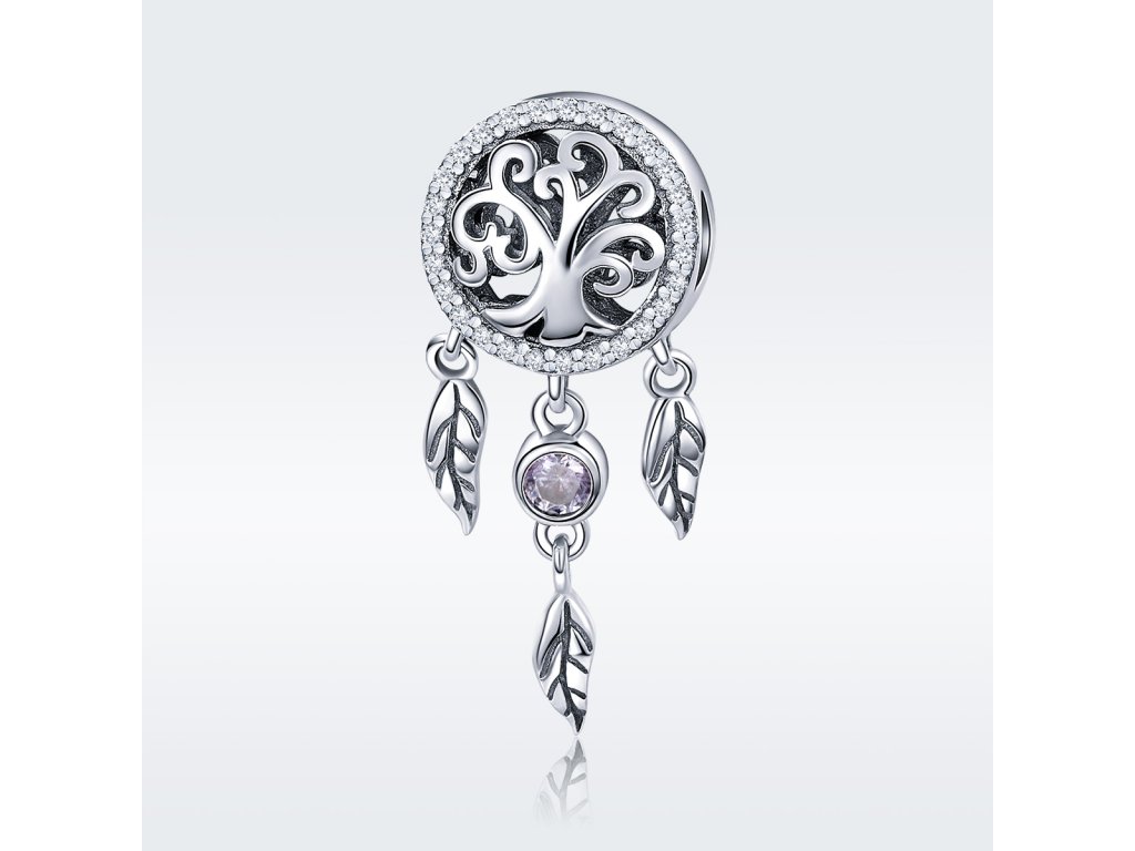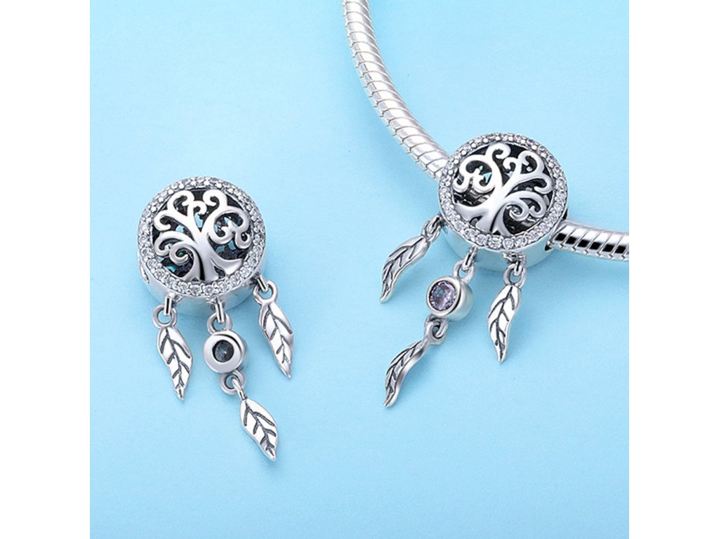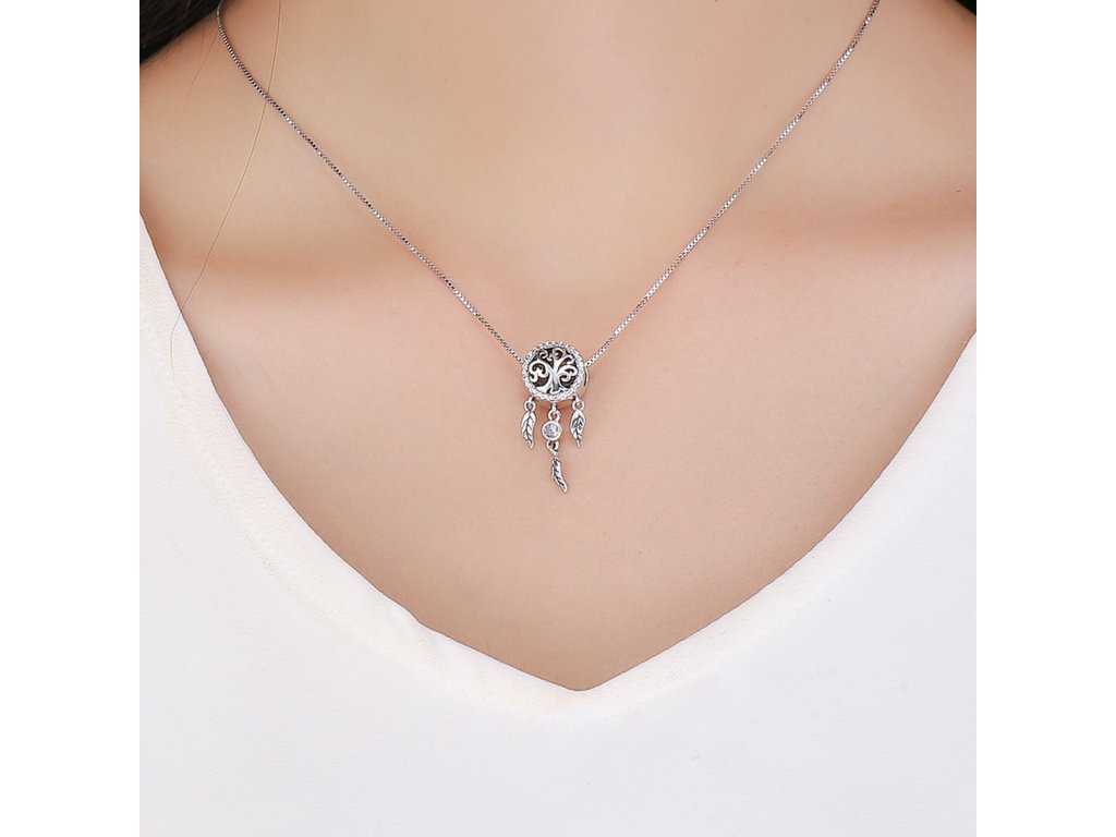 - Luxusný a prepracovaný prívesok v dizajne známeho spirituálneho lapače snov zdobeného trblietavými čírymi kameňmi.