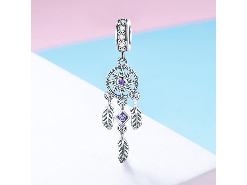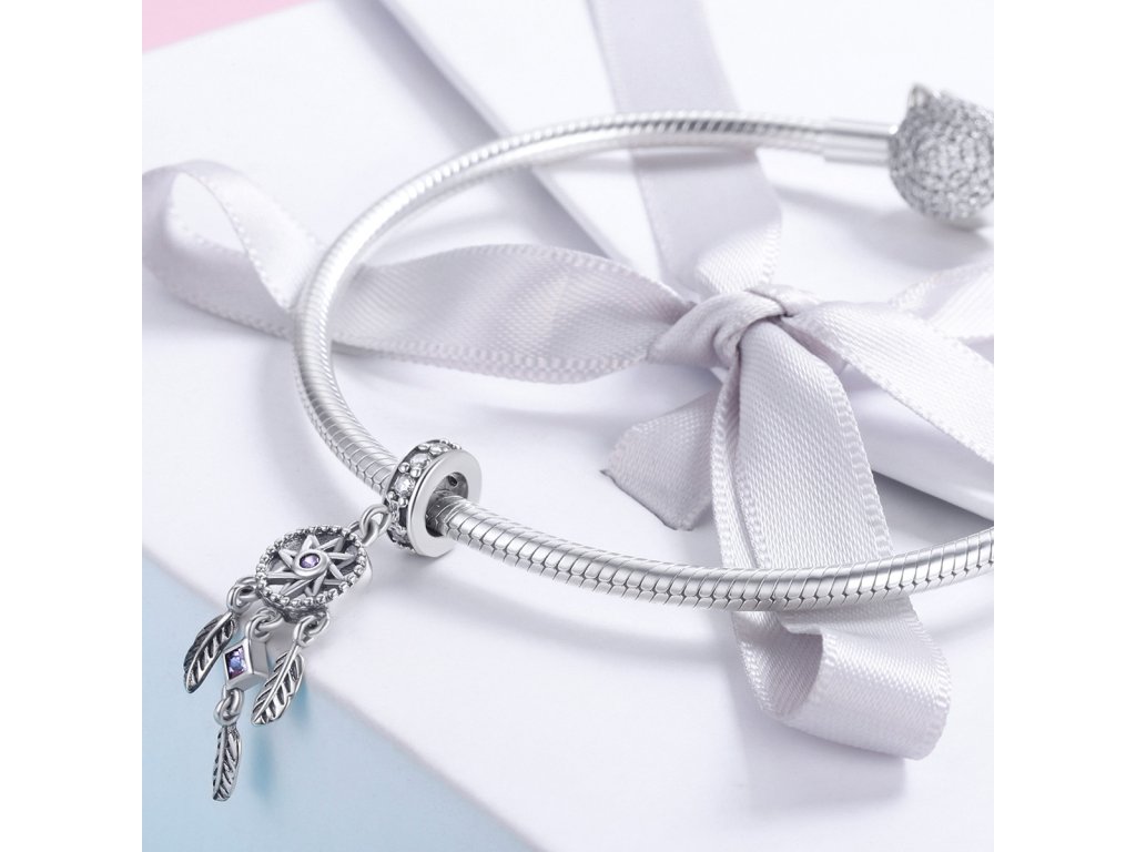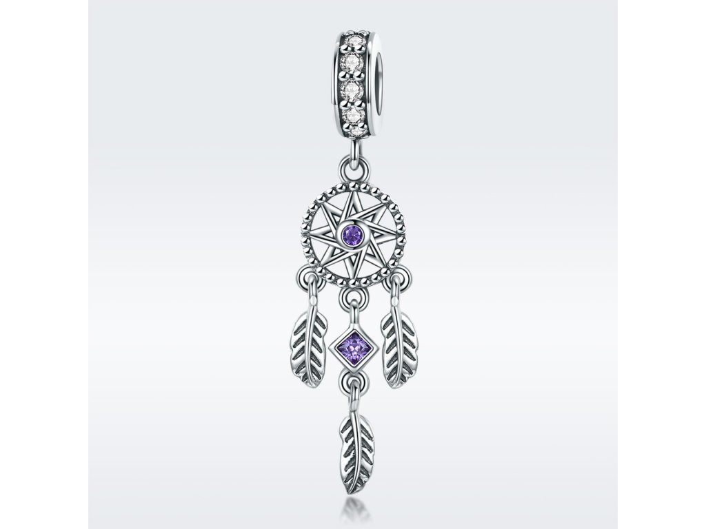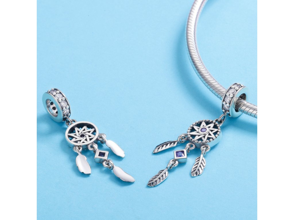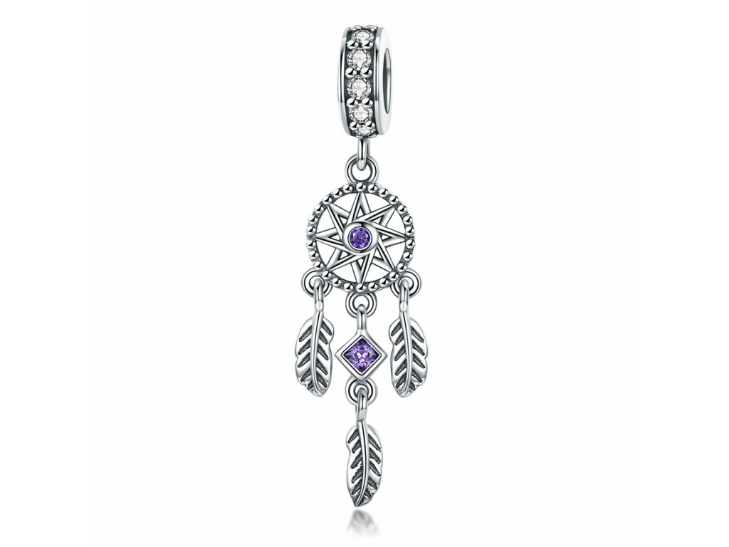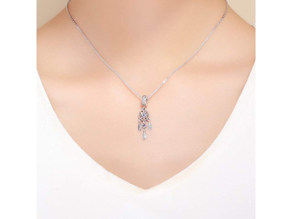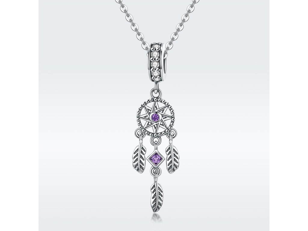 - Luxusný a prepracovaný strieborný visiaci prívesok v dizajne spirituálneho lapače snov zdobený zirkónmi.