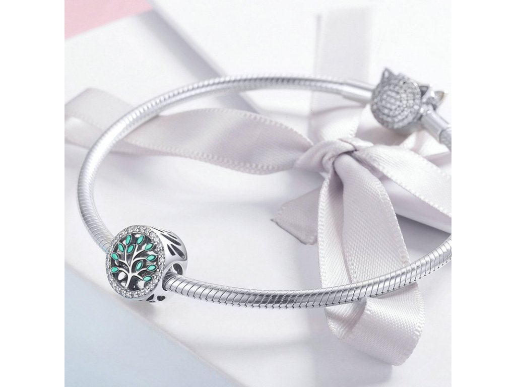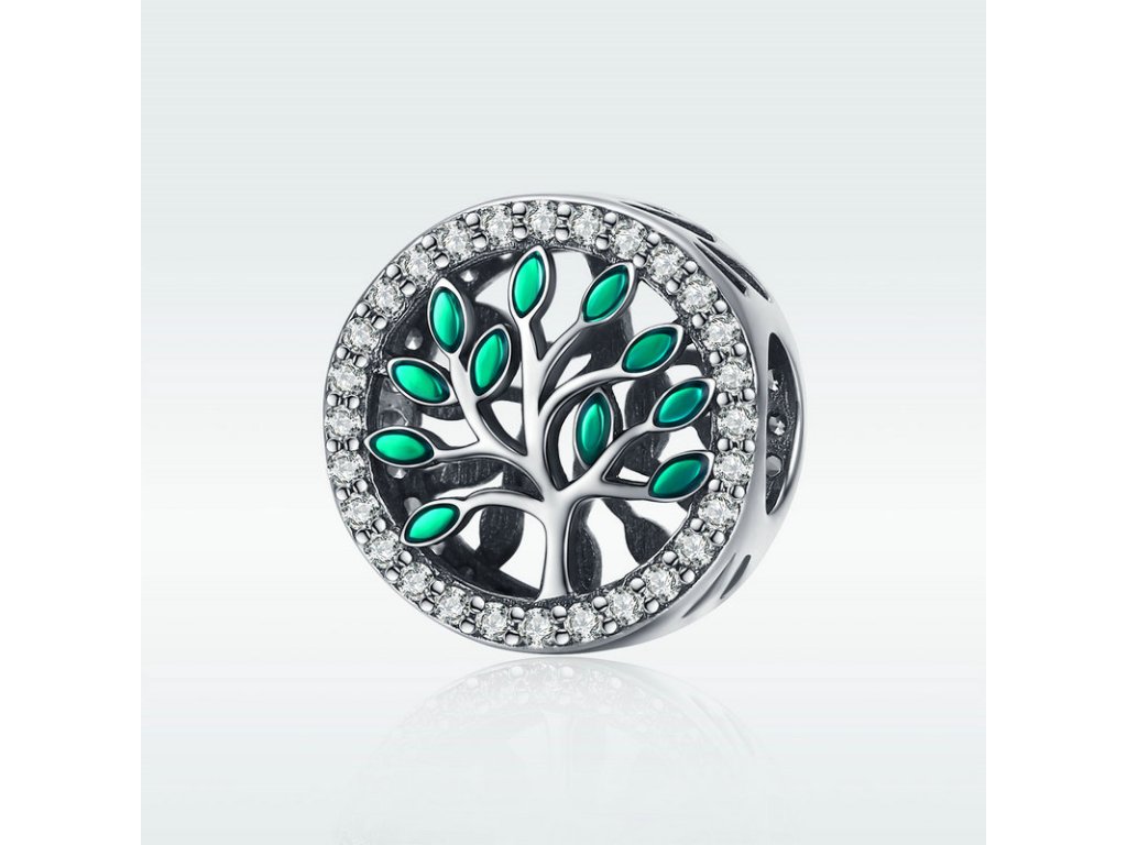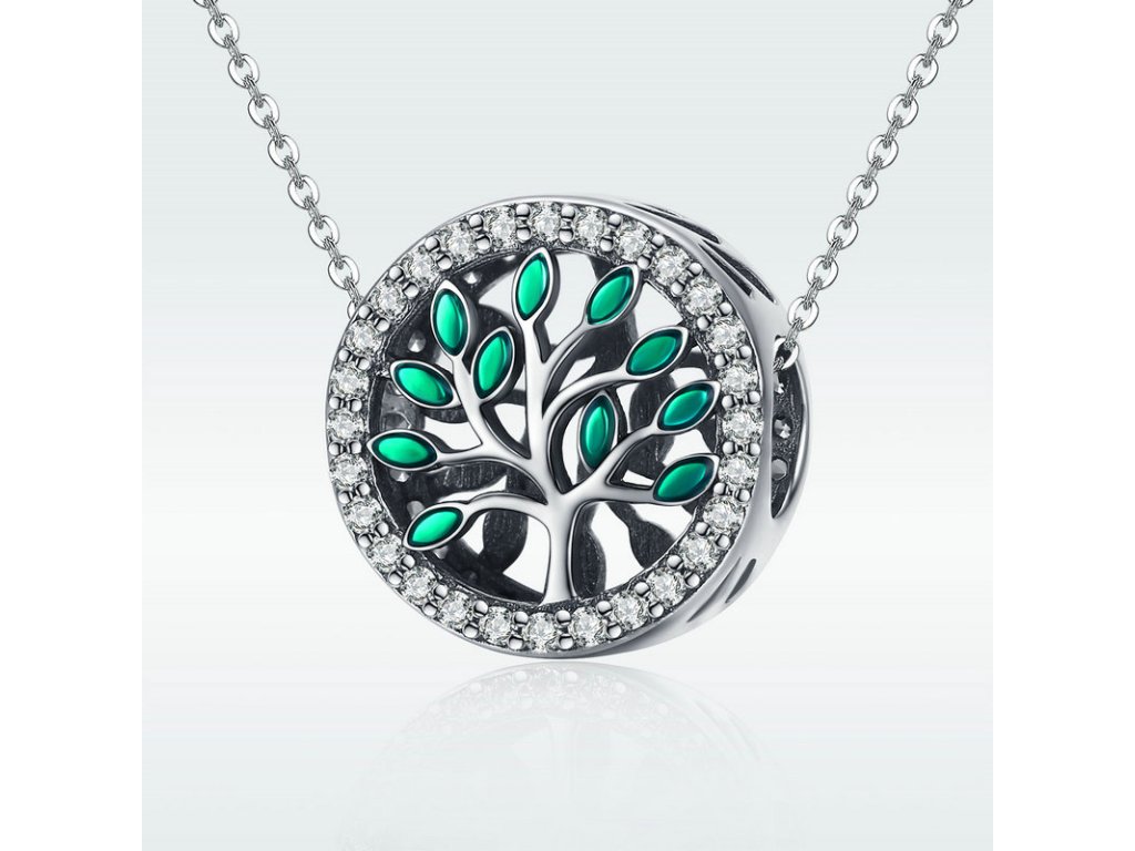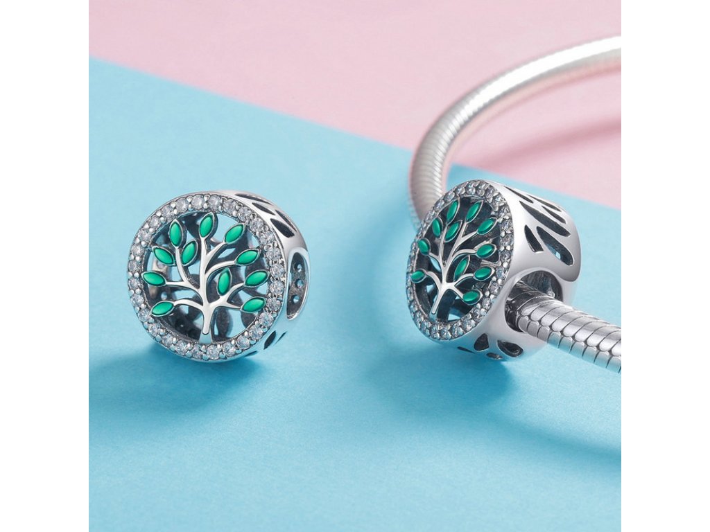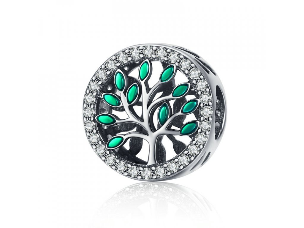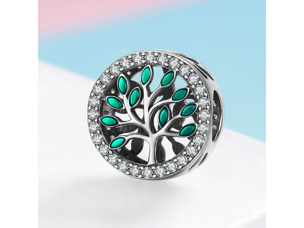 - Luxusný a prepracovaný strieborný prívesok / korálek v dizajne rozrastajúceho sa stromu života zdobený zirkónmi a glazúrou zelenej farby.