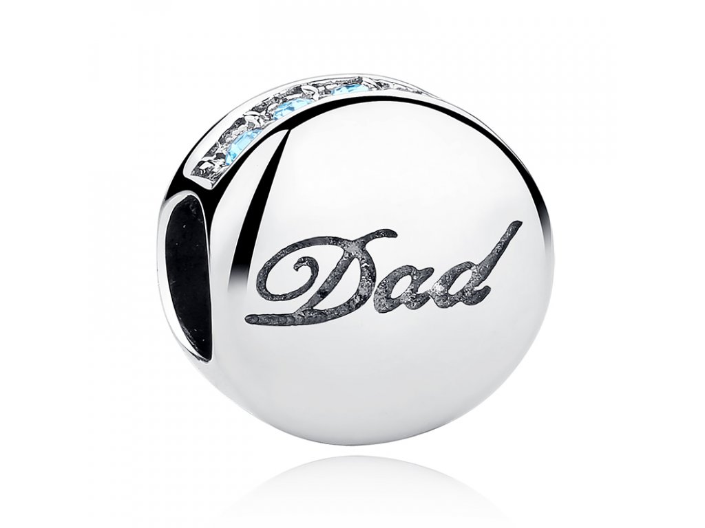 - Luxusný a prepracovaný prívesok s anglickým nápisom Dad (tzn. Táta). Prívesok doplnený trblietavými modrými kameňmi po stranách