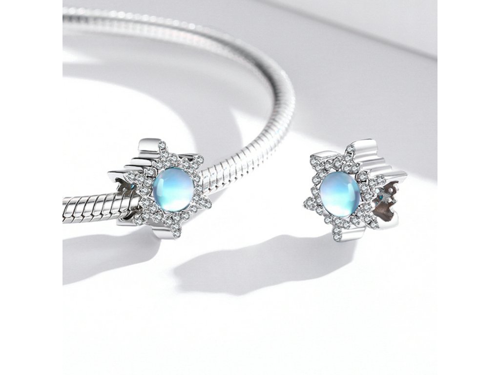 - Strieborný prívesok v dizajne krásnej zimnej snehovej vločky zdobenej dúhovým mesačným kameňom Moonstone a čírymi trblietavými zirkónmi. Originálny design prívesku, kvalitné spracovanie a materiál, ručne dohotovené.