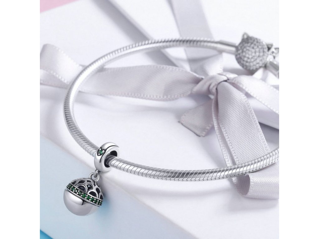 - Prívesok v dizajne zeleného prekvapenie zdobený trblietavými zirkónmi.