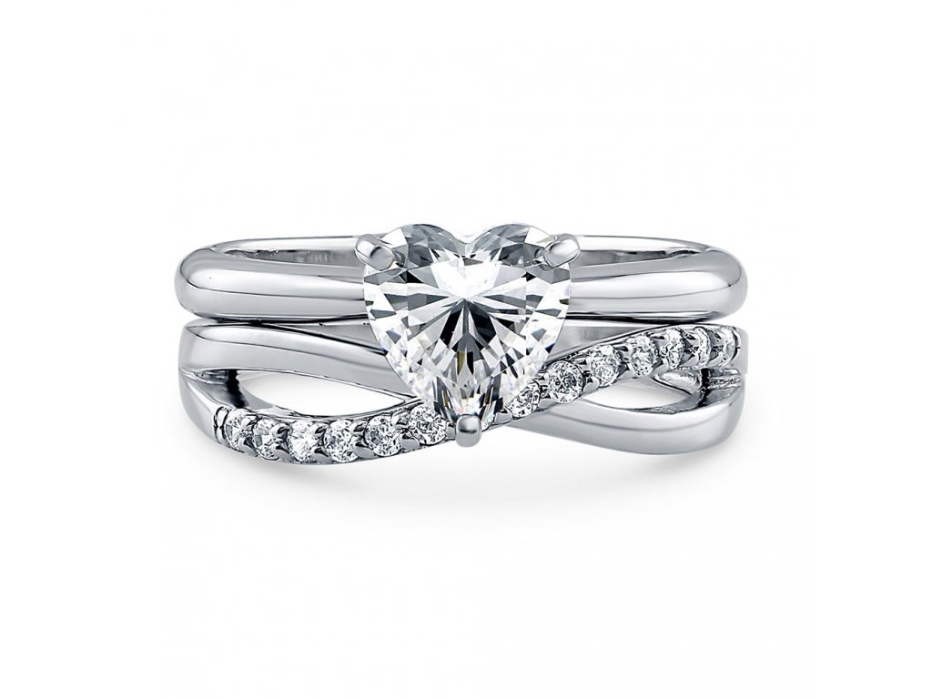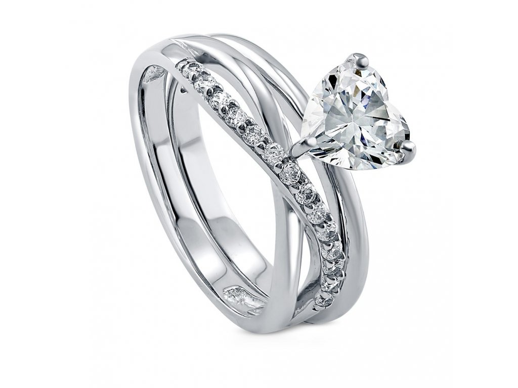 ♥ Strieborný rhodiovaný prsteň 2v1 Nekonečná láska zdobený veľkým krištáľovým srdcom a čírymi kameňmi v podobe trblietavých zirkónov. ♥