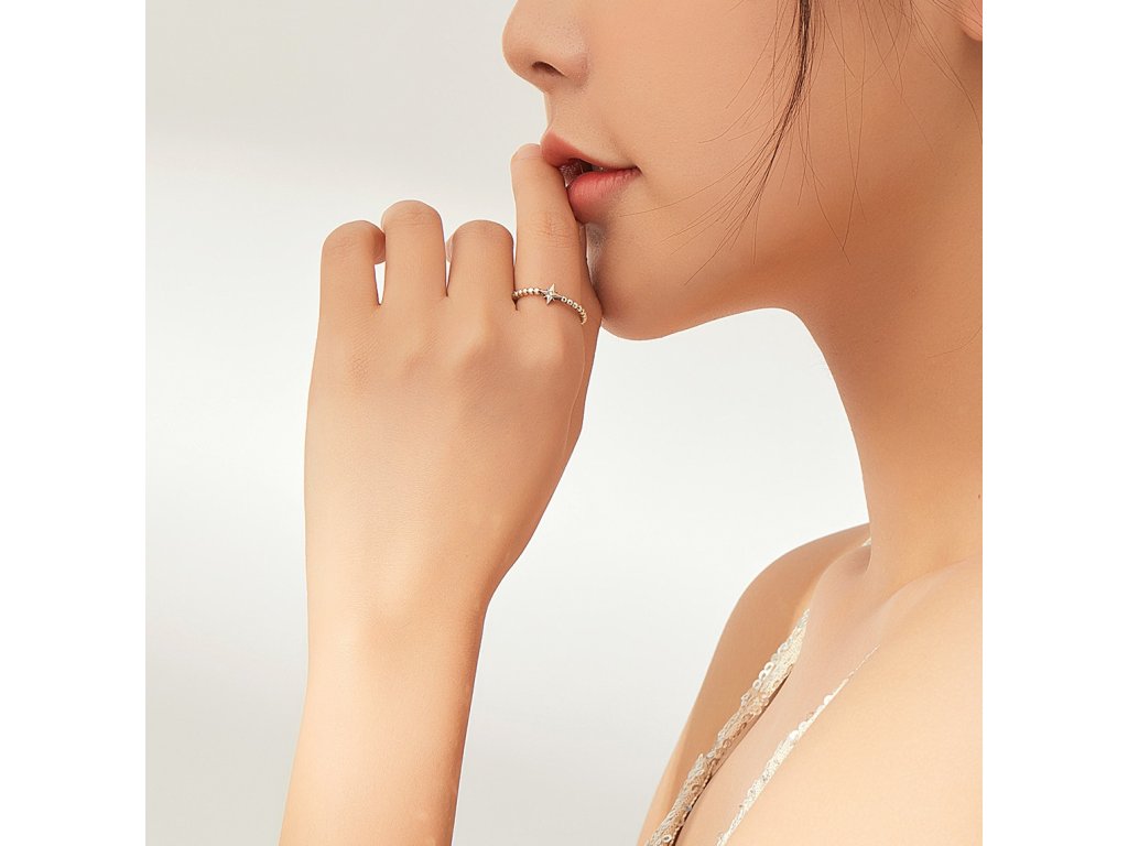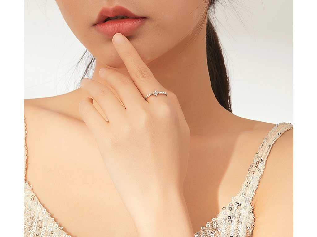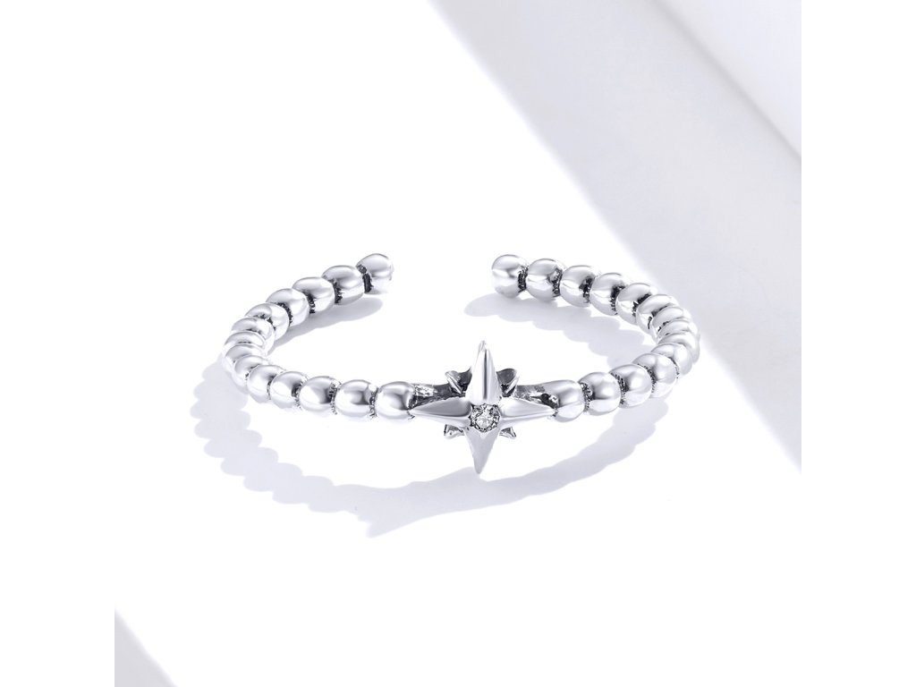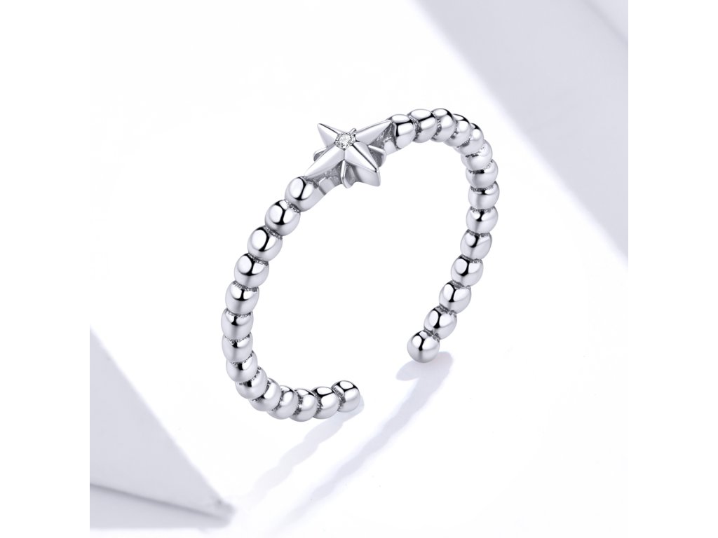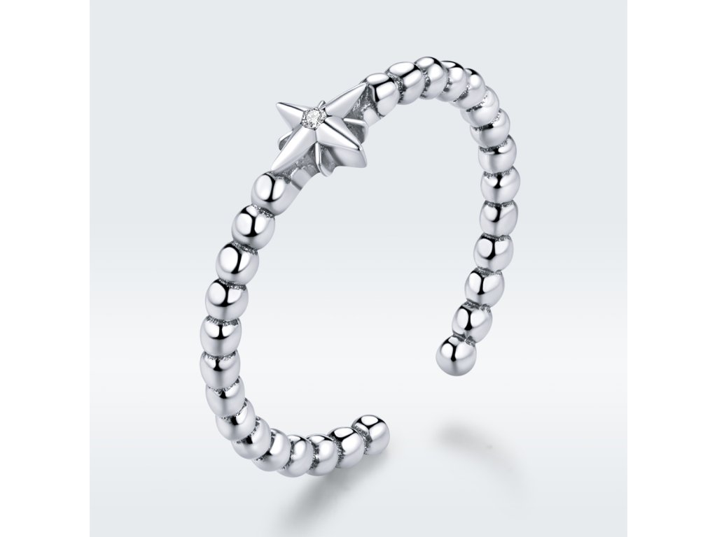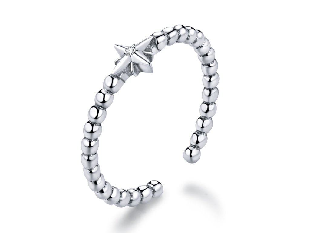 - Strieborný nastaviteľný prsteň Hviezdny výbuch obohatený čírym kameňom v podobe zirkónu.