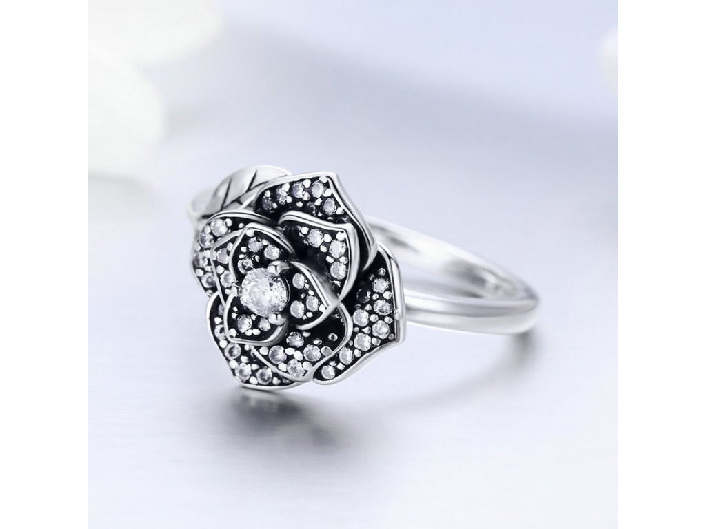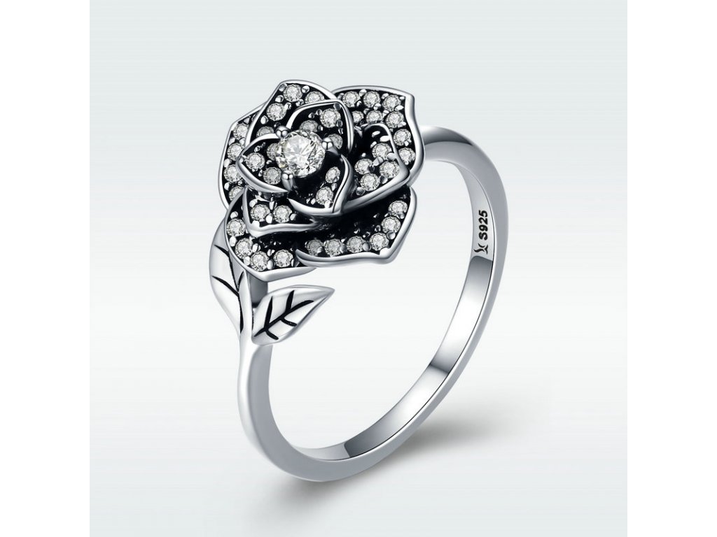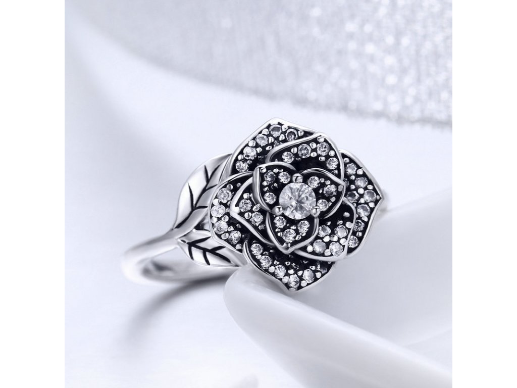 - Luxusný a prepracovaný strieborný prsteň v dizajne krásnej ruže ozdobený trblietavými zirkónmi. Originálny dizajn prsteňa, kvalitné spracovanie a materiál, ručne dohotovené.