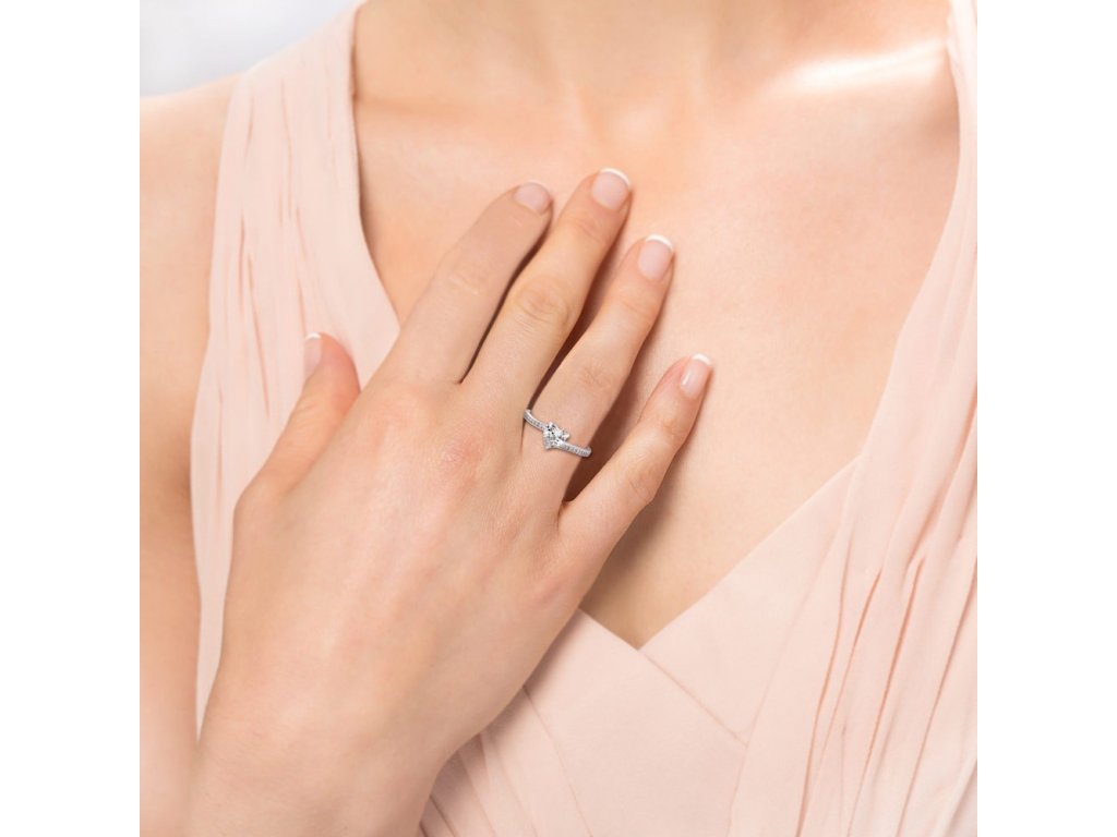 ♥ Strieborný rhodiovaný prsteň v dizajne Čistej lásky zdobený čírymi trblietavými zirkónmi a veľkým brúseným kameňom v tvare srdca. Originálny dizajn prsteňa, kvalitné spracovanie a materiál, ručne dohotovené. ♥
